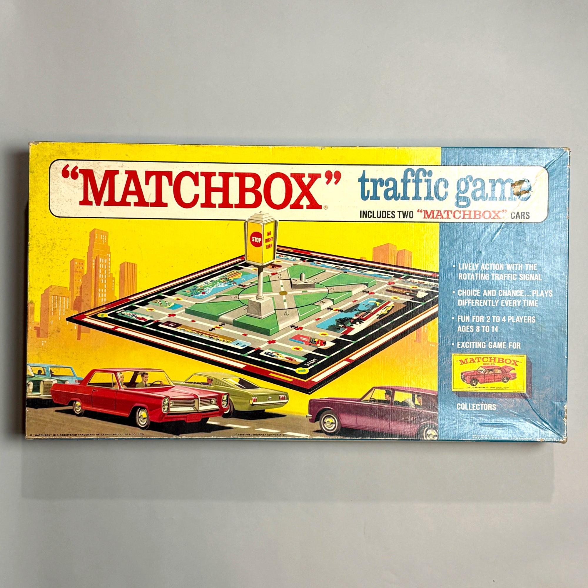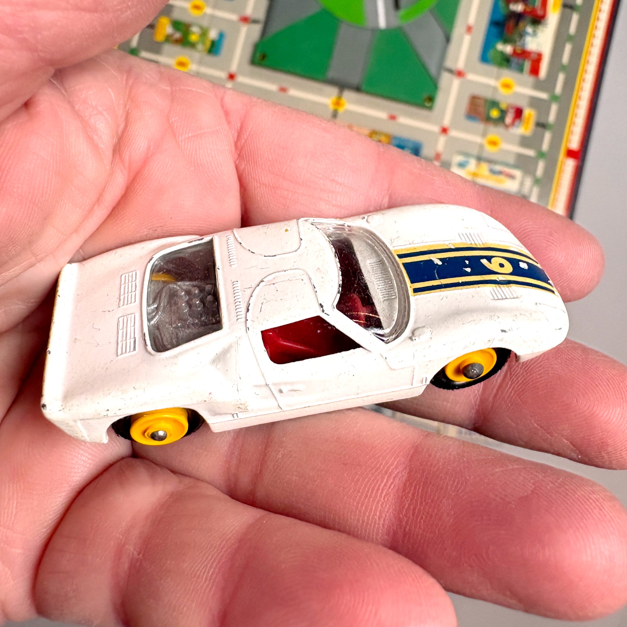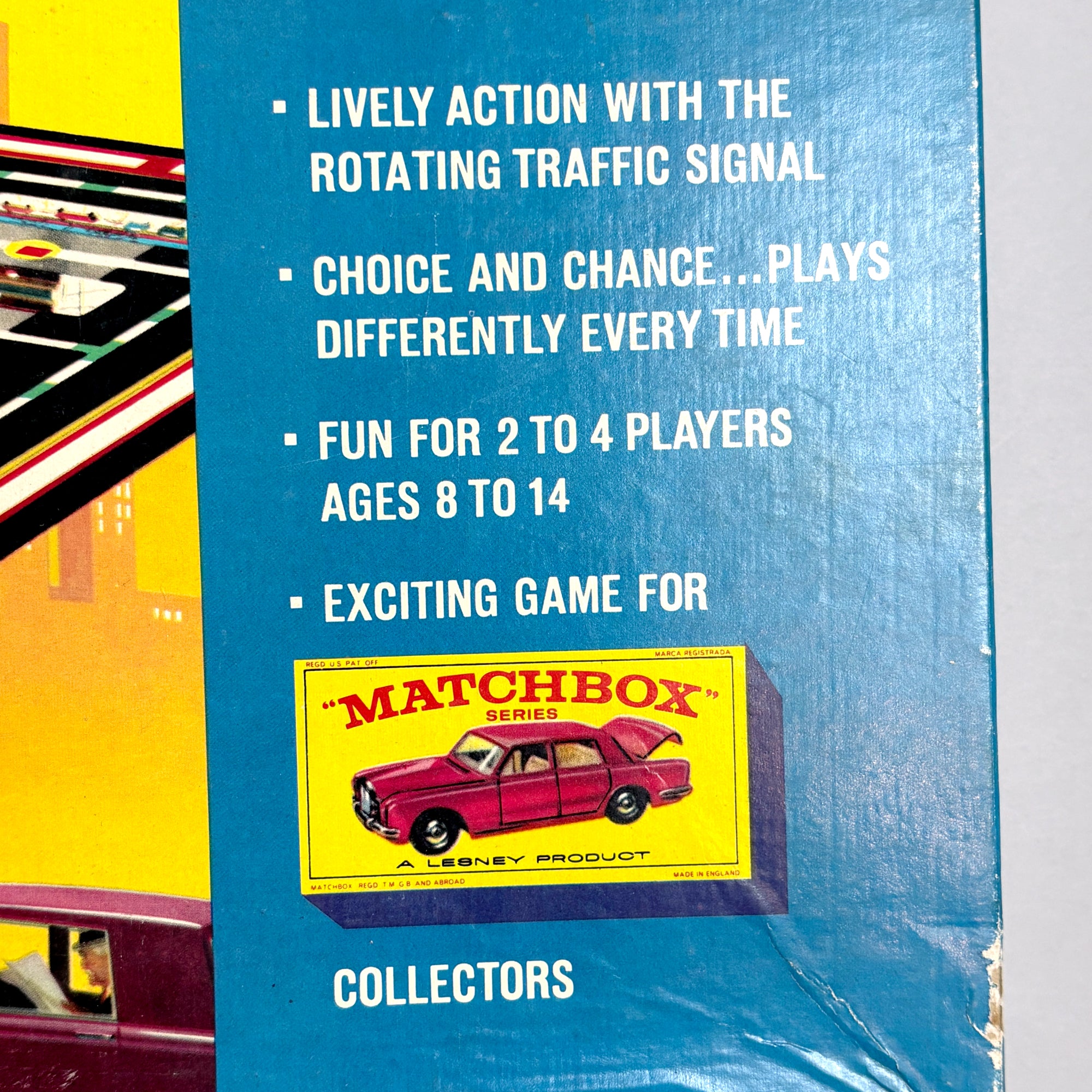 This is not a pristine game for a game collector. It was played with, but well cared for. It's a perfect game to share with a young Matchbox enthusiast or with your drinking buddies.