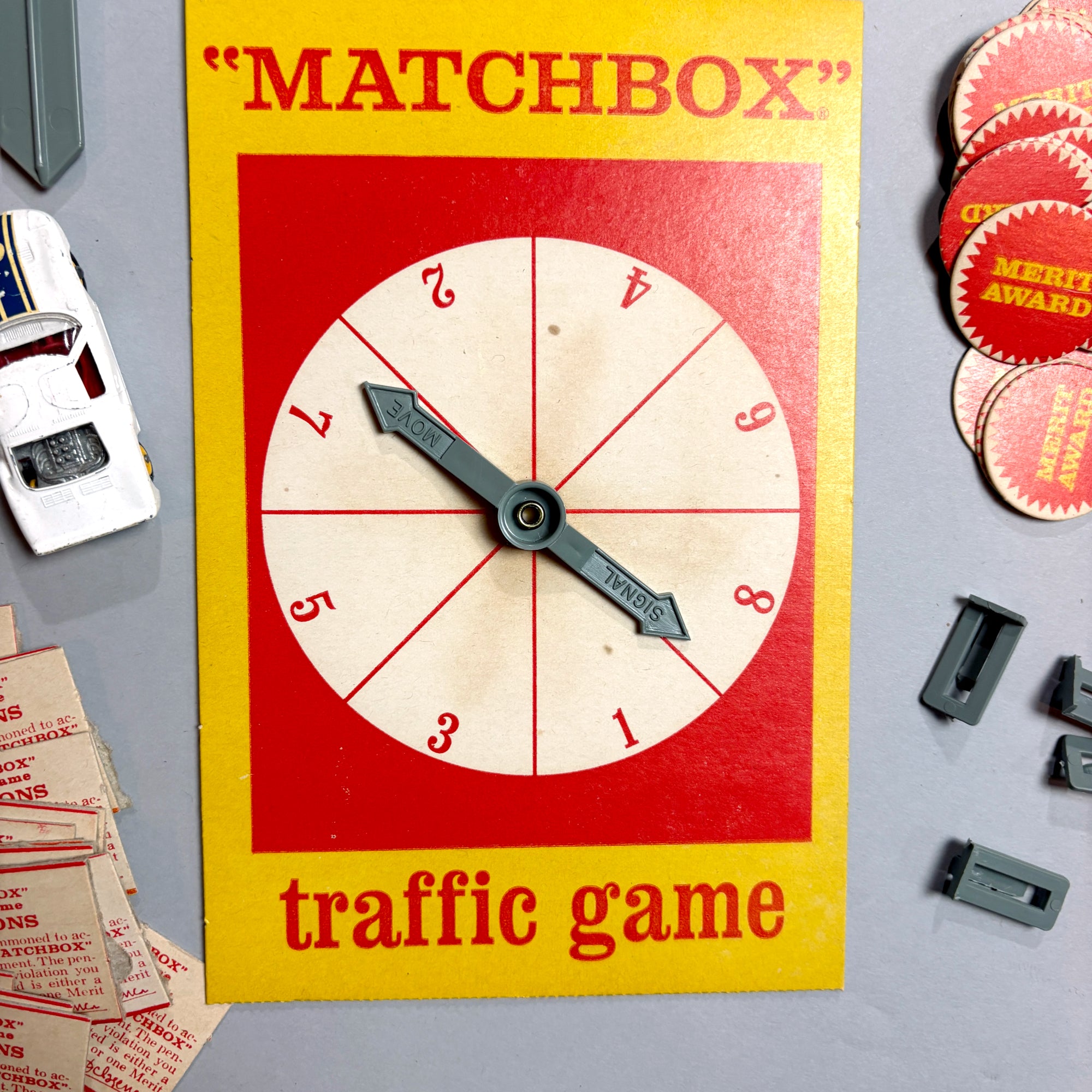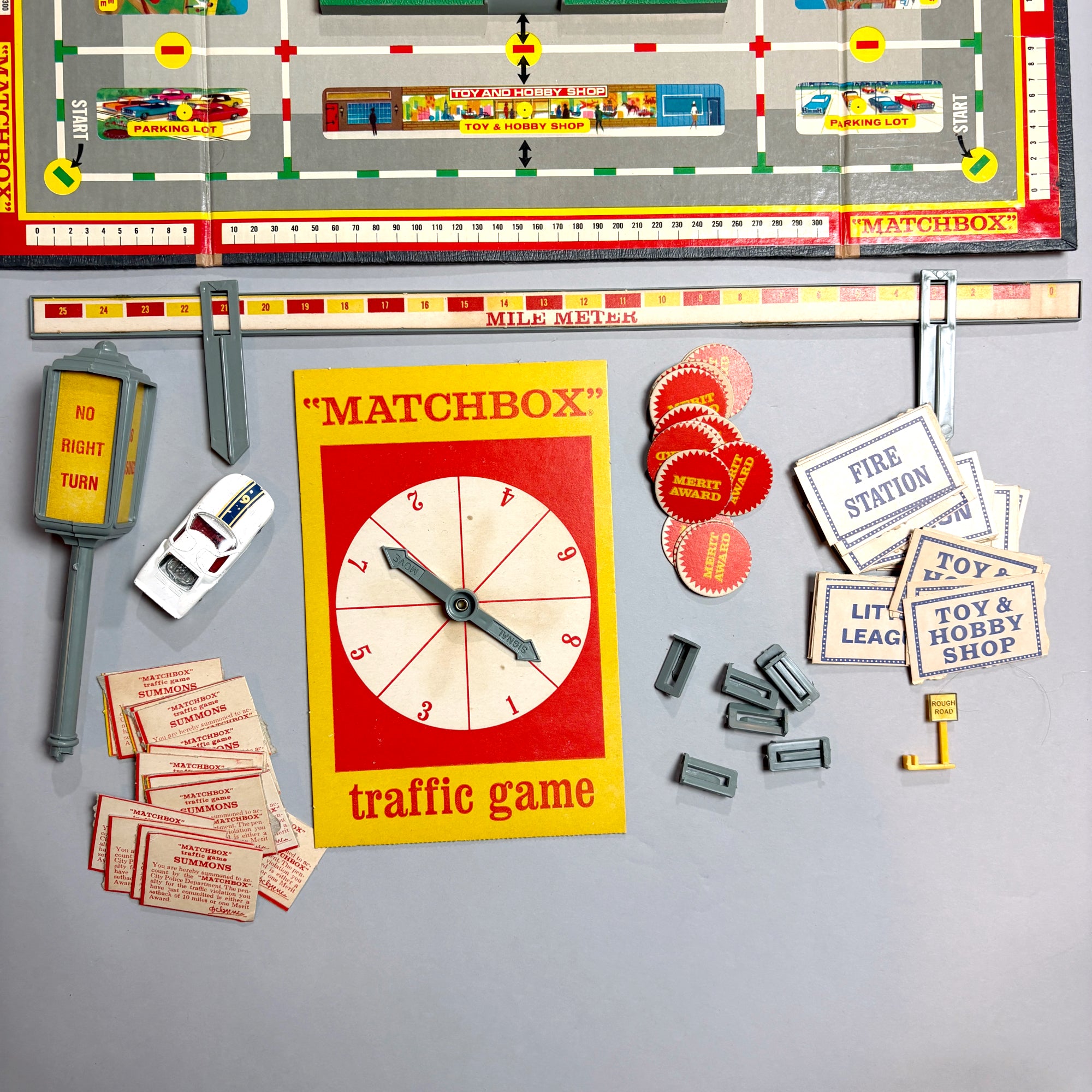 1968 Matchbox Traffic Game - all pieces, instructions, 1 car