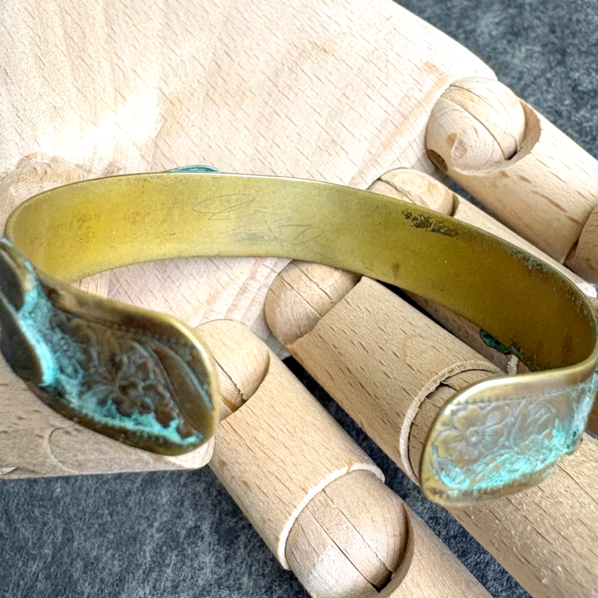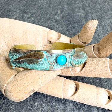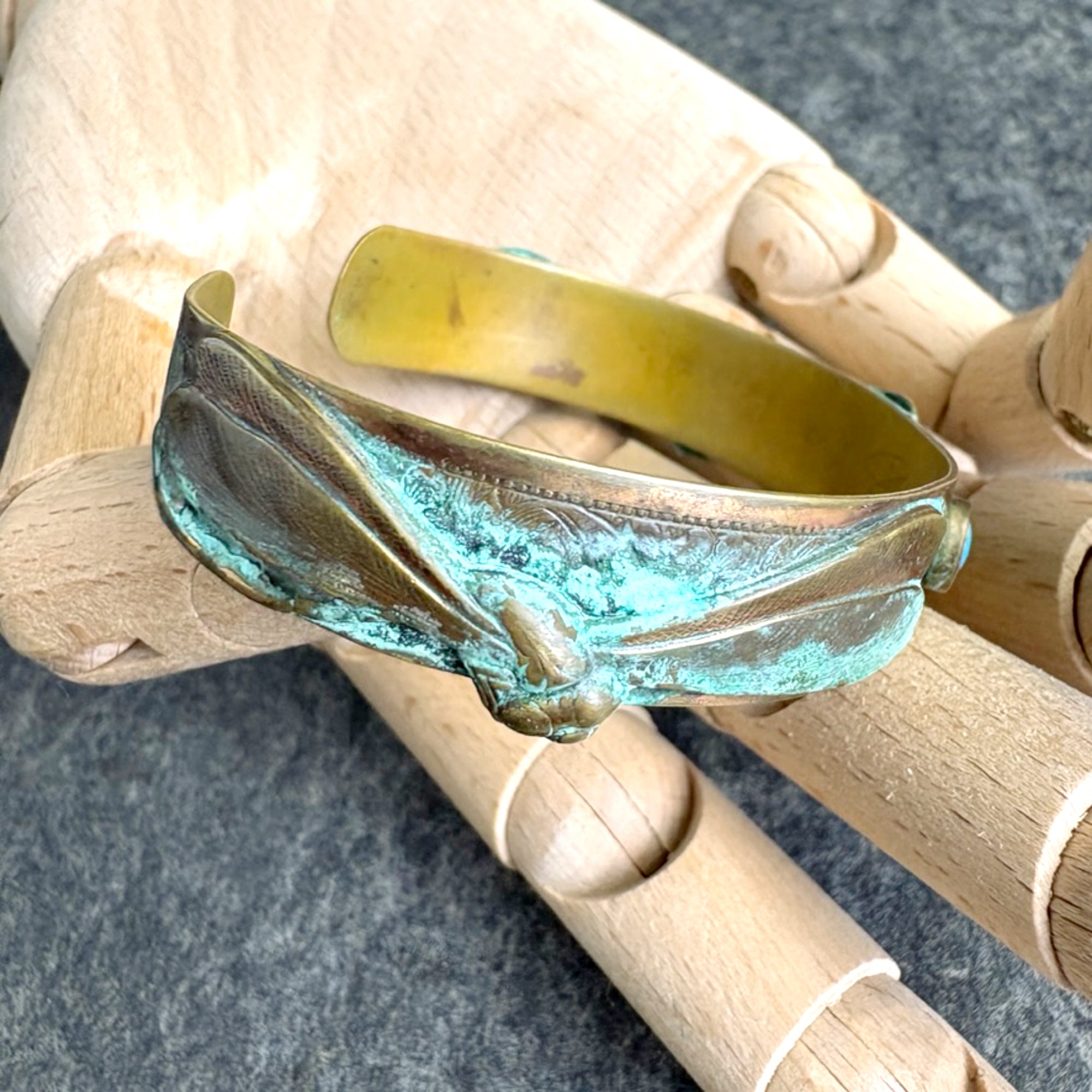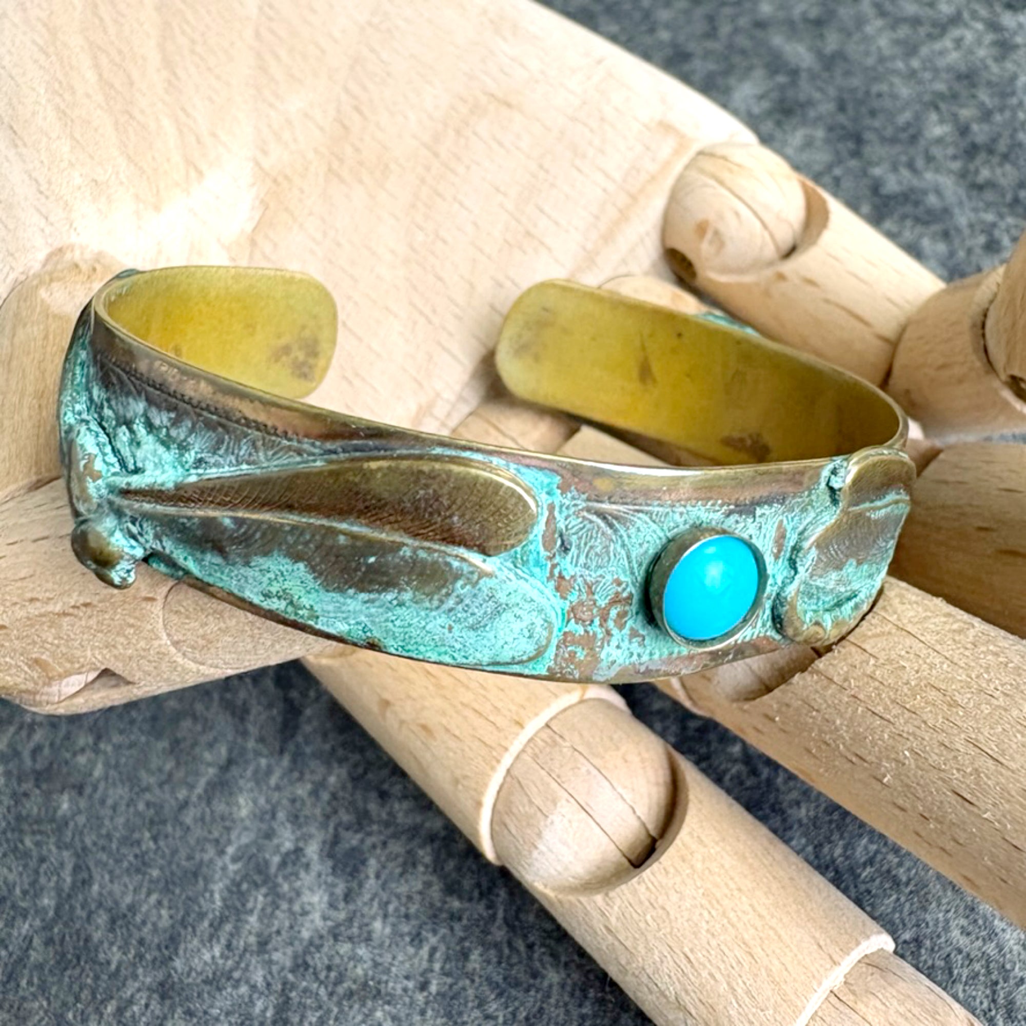 Elaine Coyne verdigris dragonfly and turquoise cuff bracelet