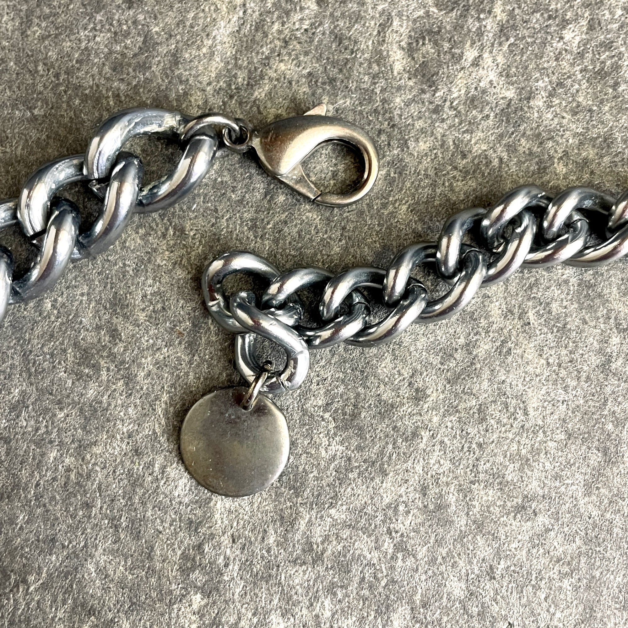PONO blue resin flower necklace with silver chunky adjustable chain - made in Italy