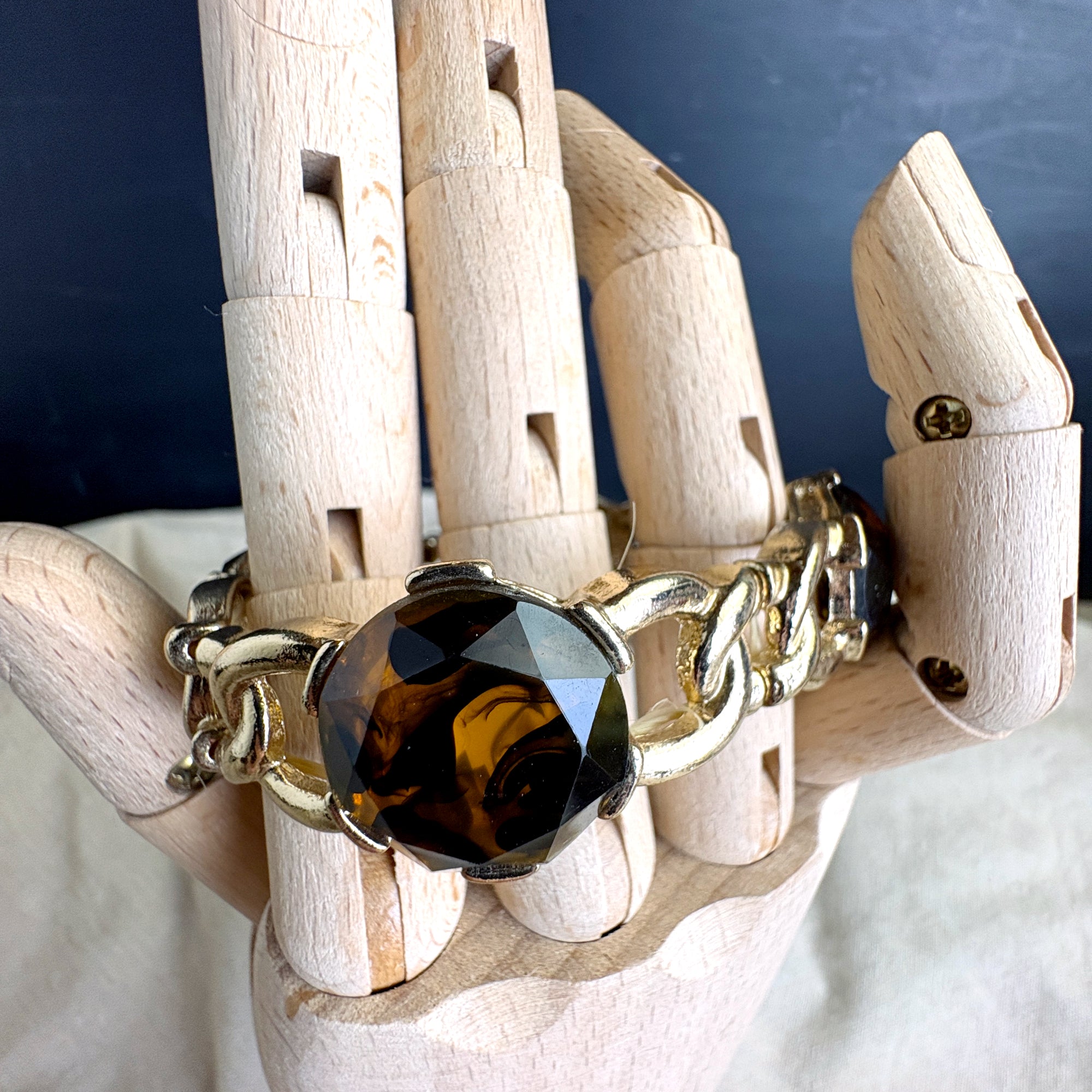 - goldtone chunky links with 4 evenly spaced faceted plastic cat eye gems