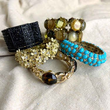 5 chunky stretch bracelets - rhinestones, flowers, filigree