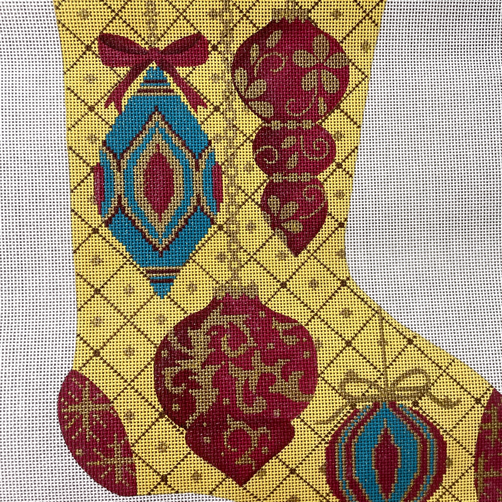Red, Gold and Blue Ornaments Christmas stocking needlepoint canvas