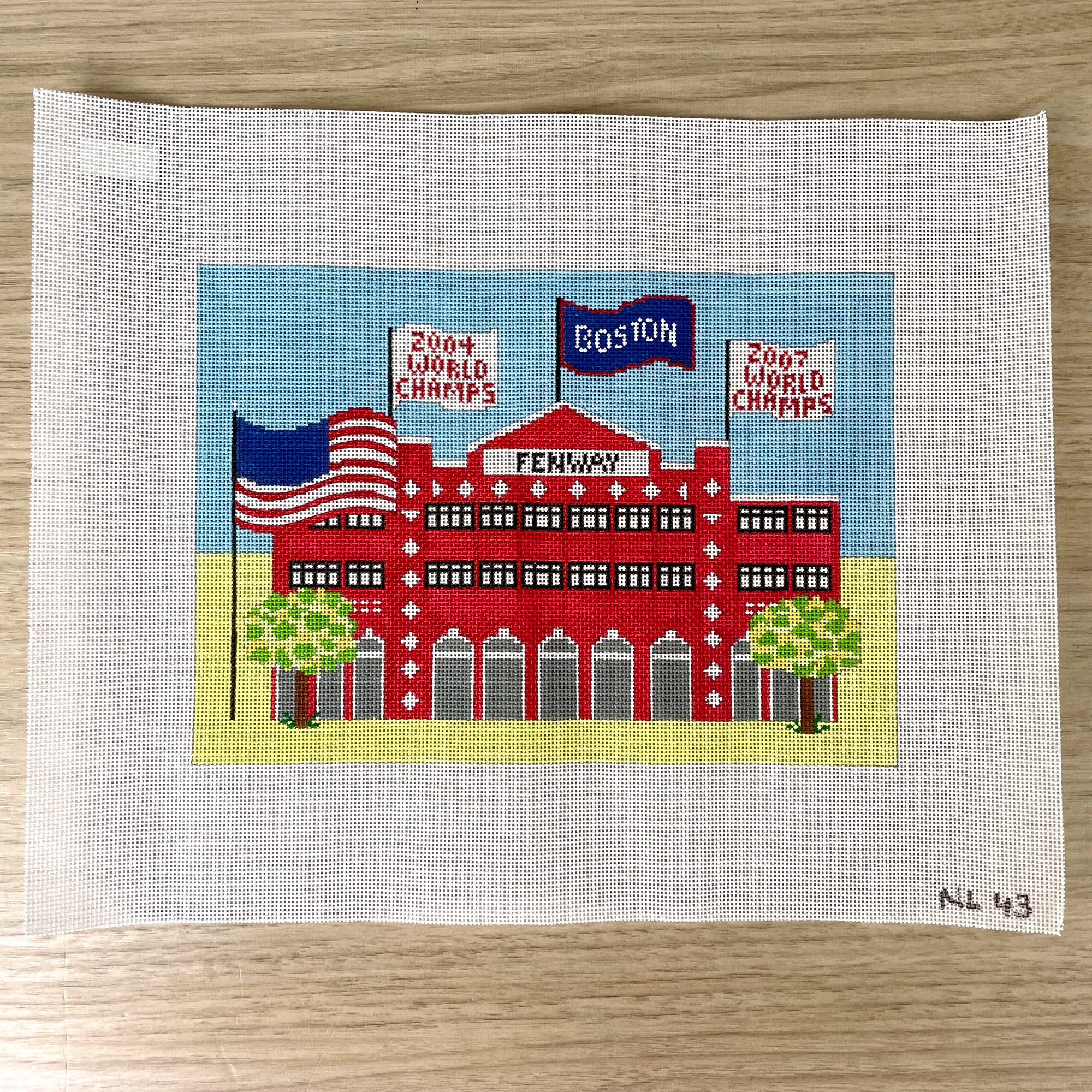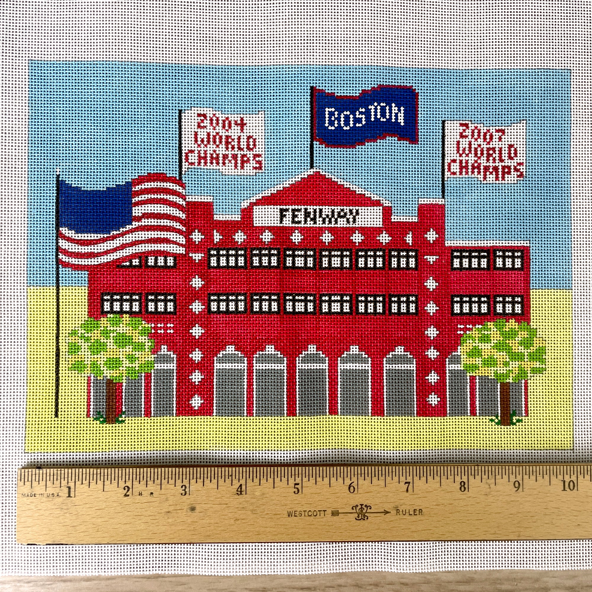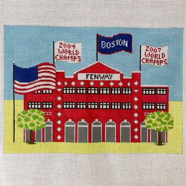 Celebrate the 2004 and 2007 championships of the Red Sox at the most beloved of ballparks, Fenway Park with this commemorative handpainted needlepoint canvas. Retail $160.