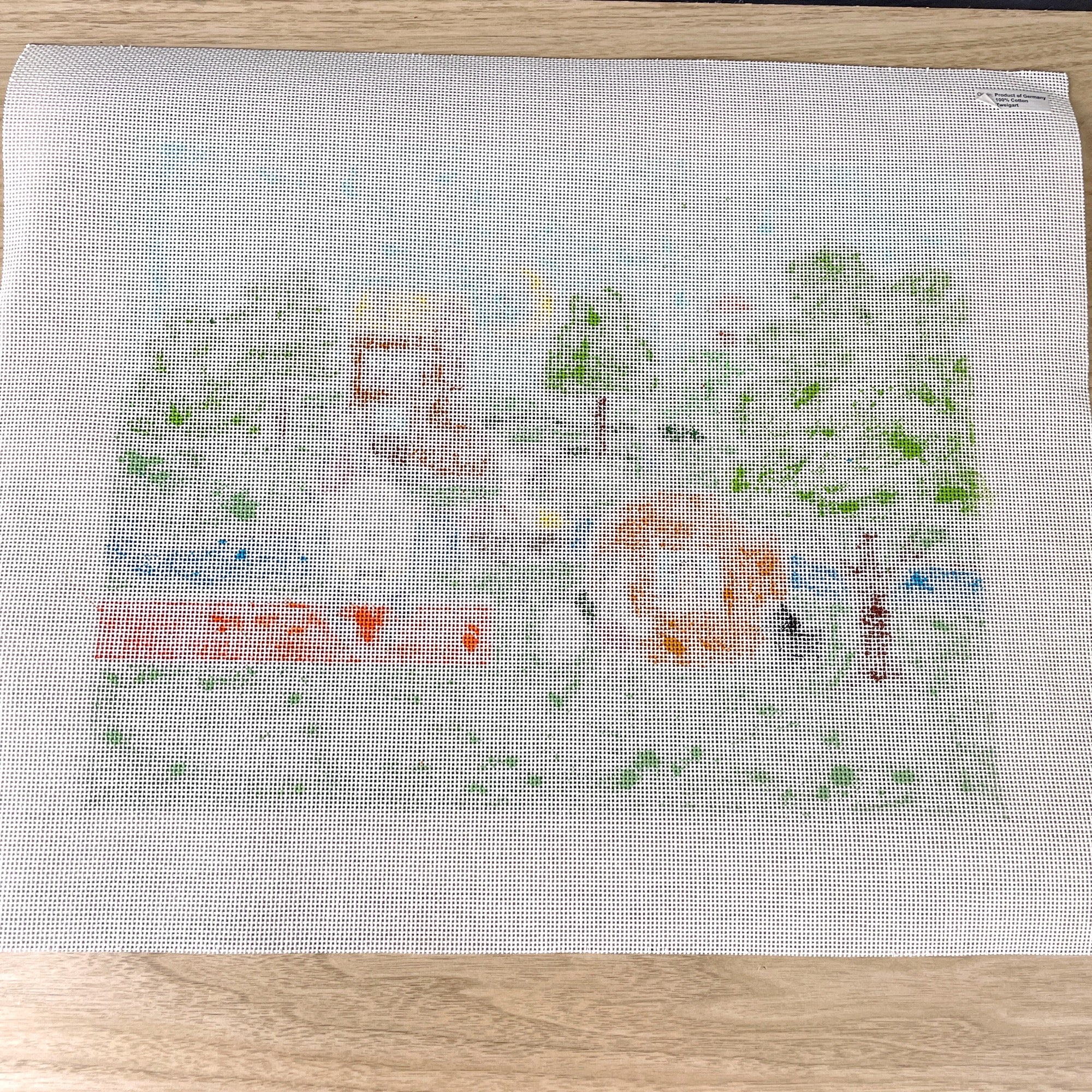 This is a de-stash item from the large collection of an accomplished needleworker. It has been stored in a non-smoking, pet free home. No threads are included, canvas only.
