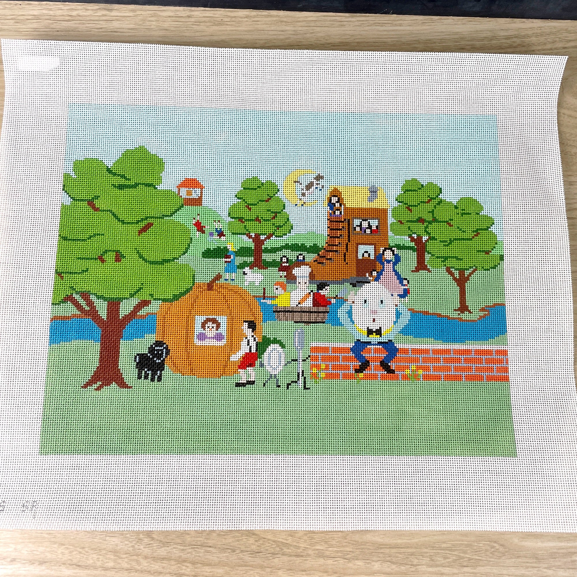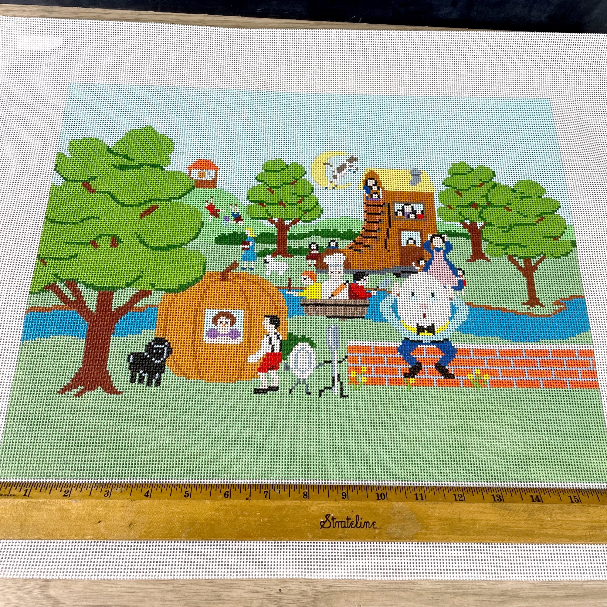 Susan Roberts Nursery Rhymes handpainted needlepoint canvas #2316. Can be used for a child seat or pillow. Retail $225.