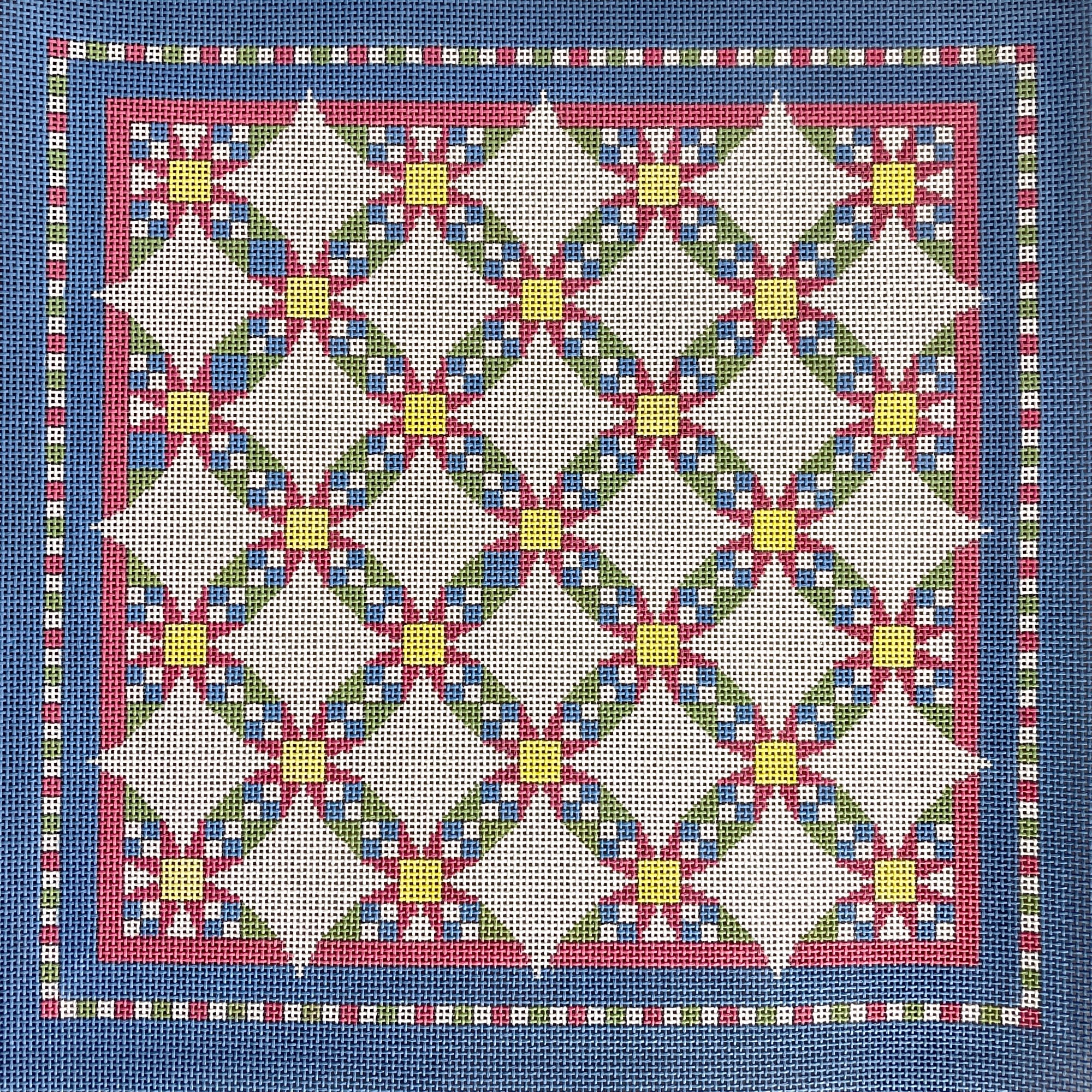 Susan Roberts Wedding Ring Star handpainted needlepoint canvas in pastels, #1621. Retail $220.