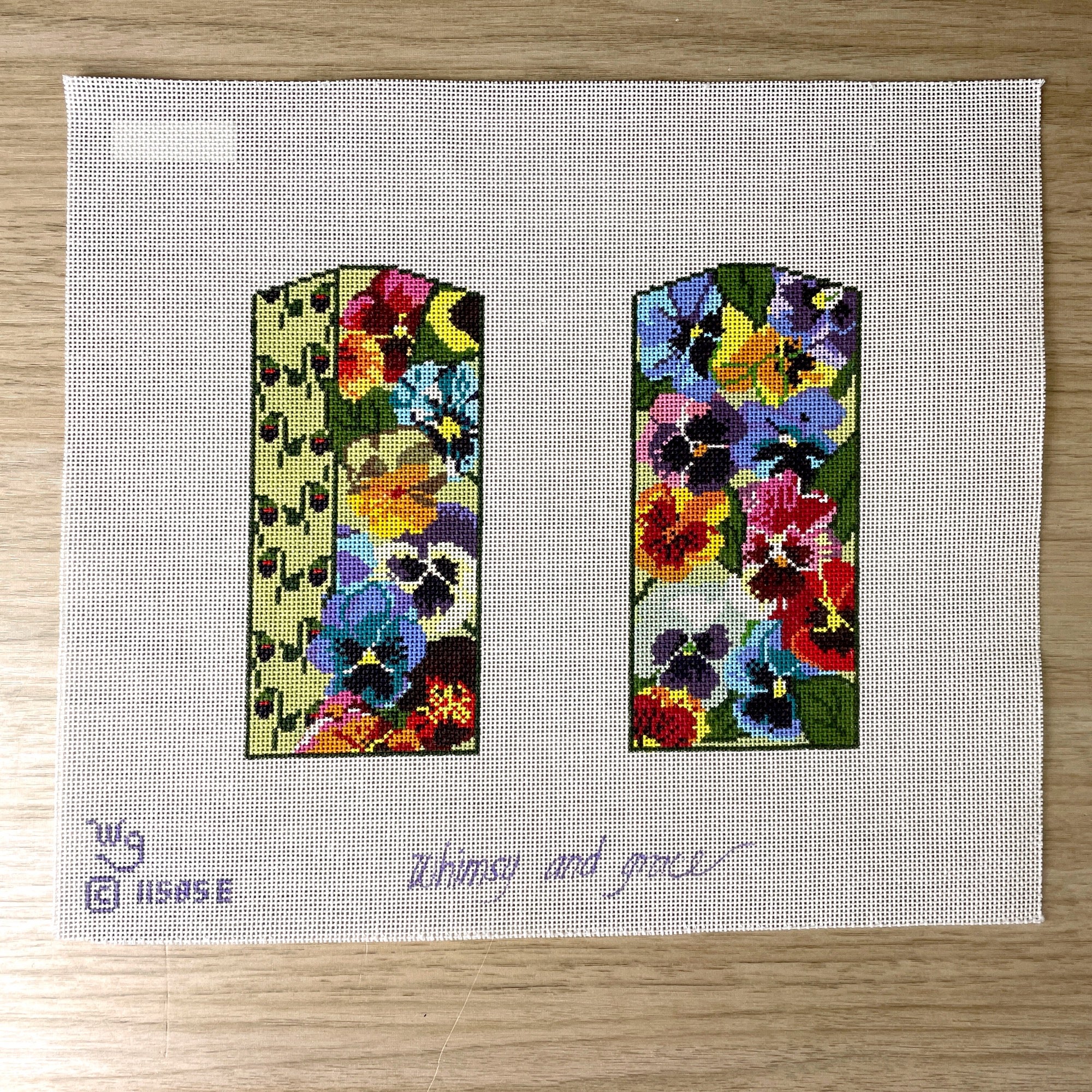 Whimsy and Grace Pansies eyeglass case needlepoint canvas #11585E