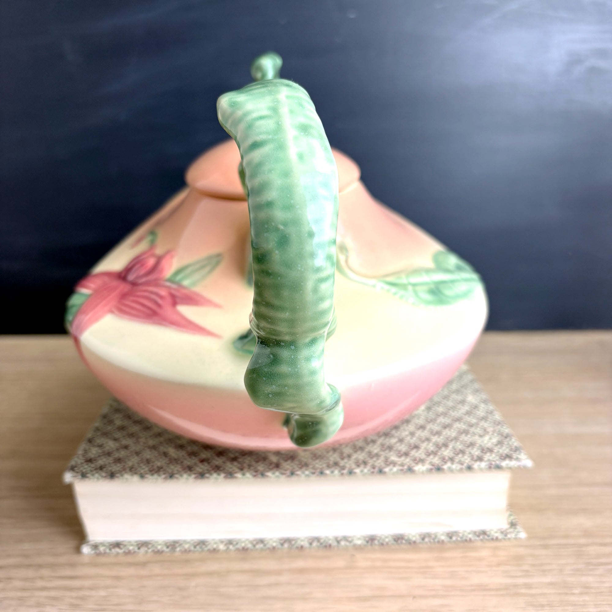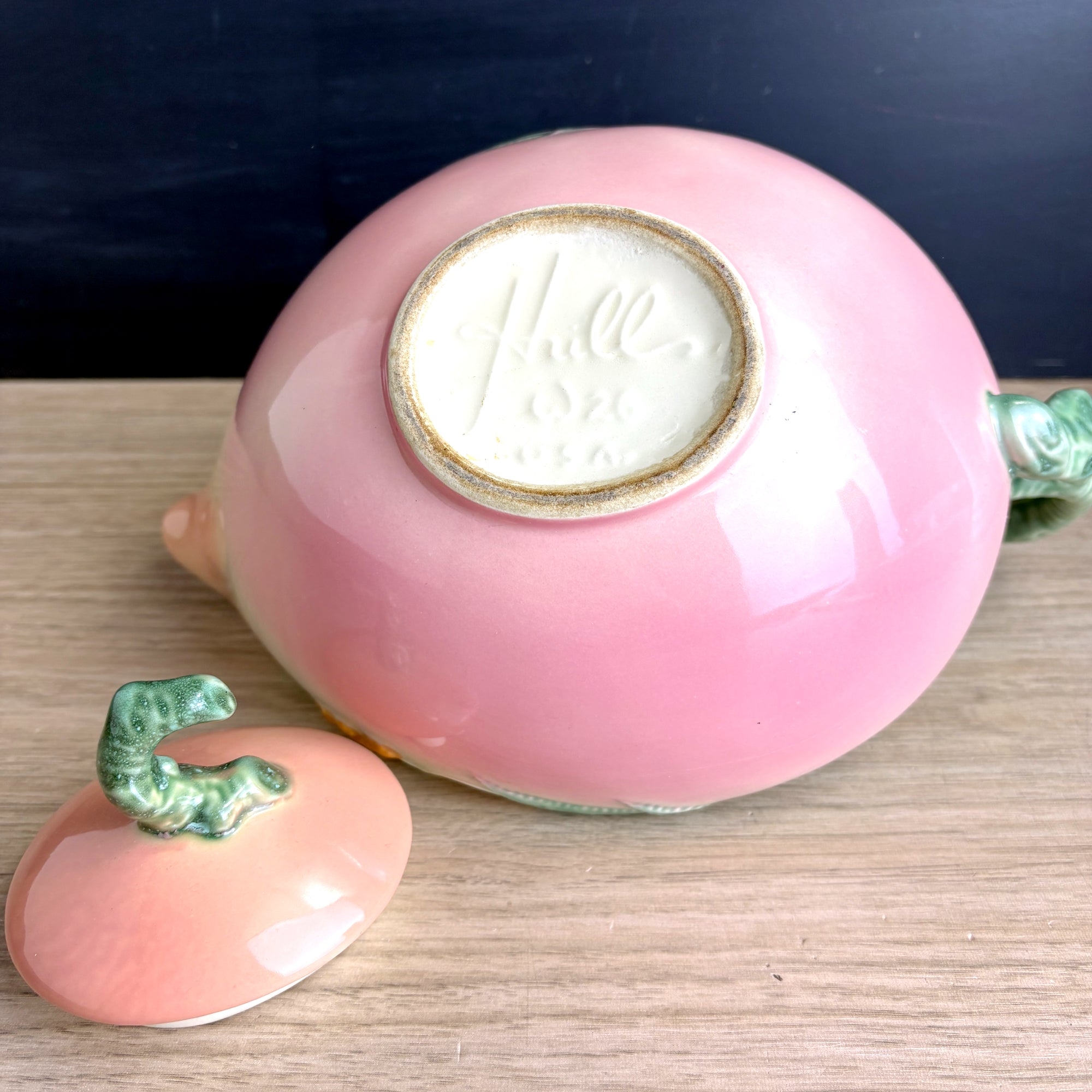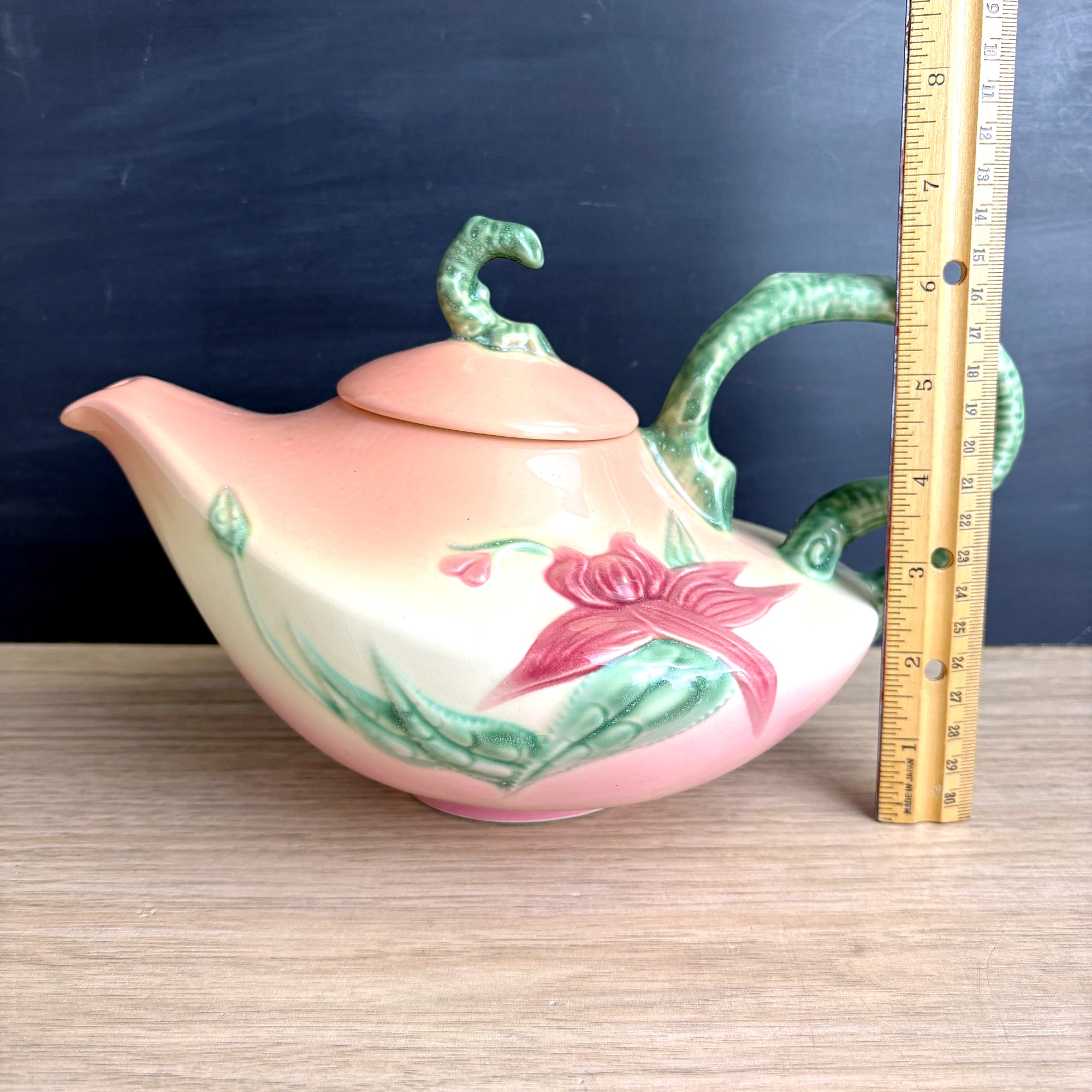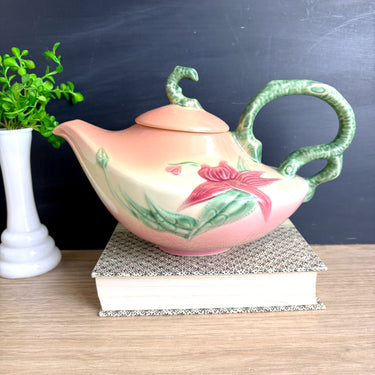 Hull Pottery Woodland pink and green Aladdin teapot - W-26 - 1950s vintage