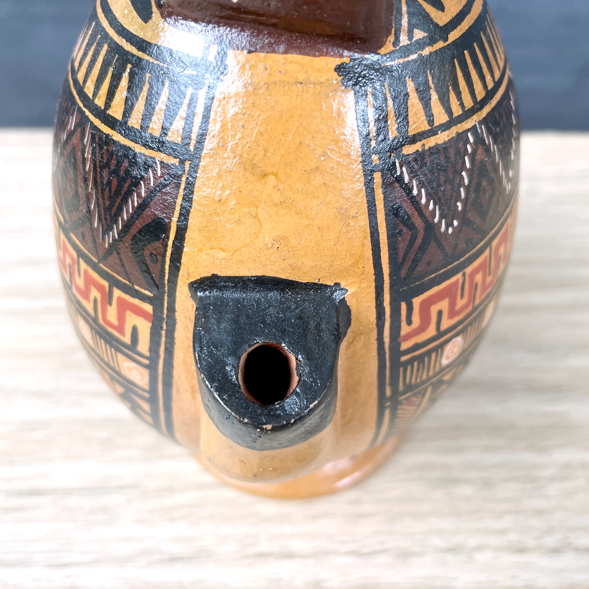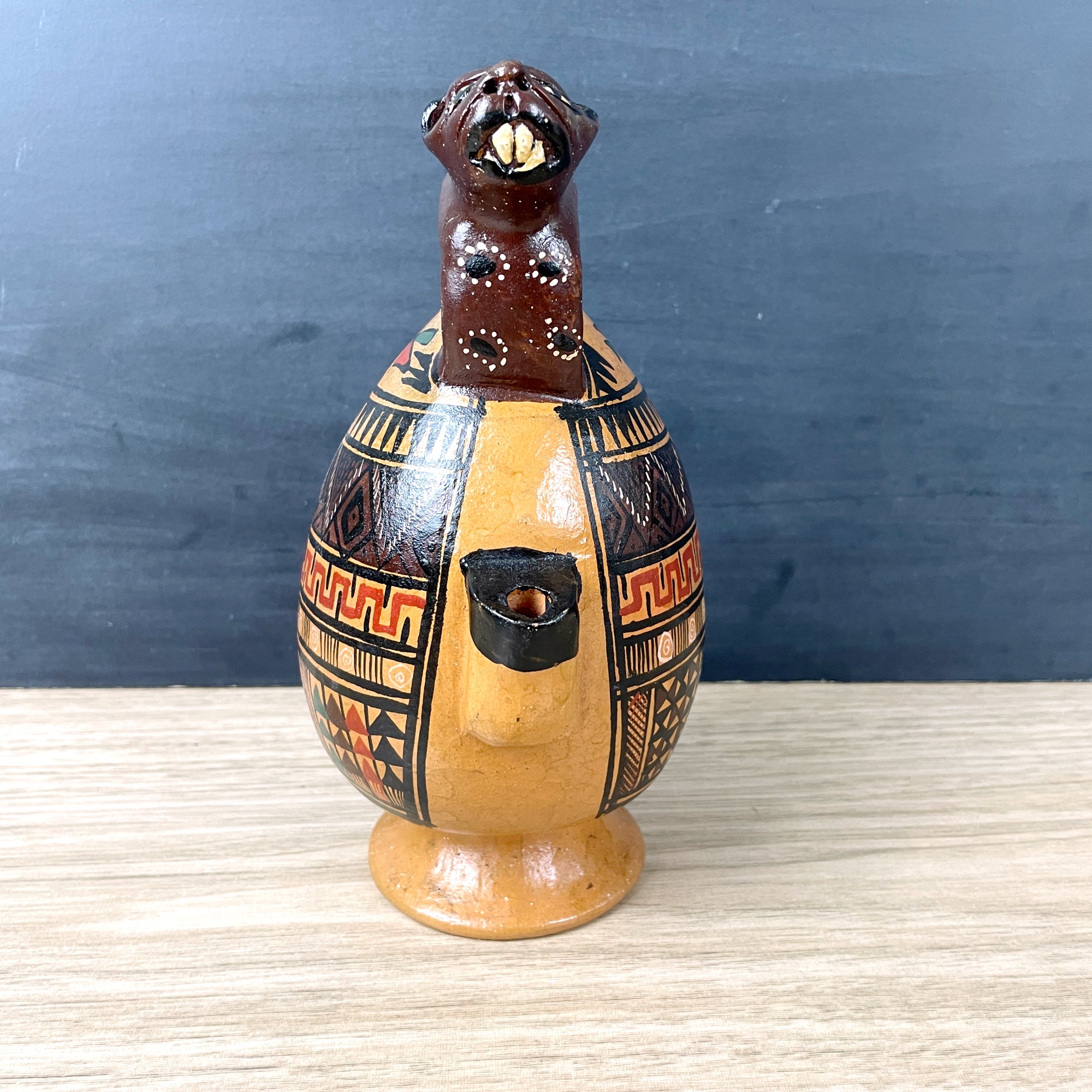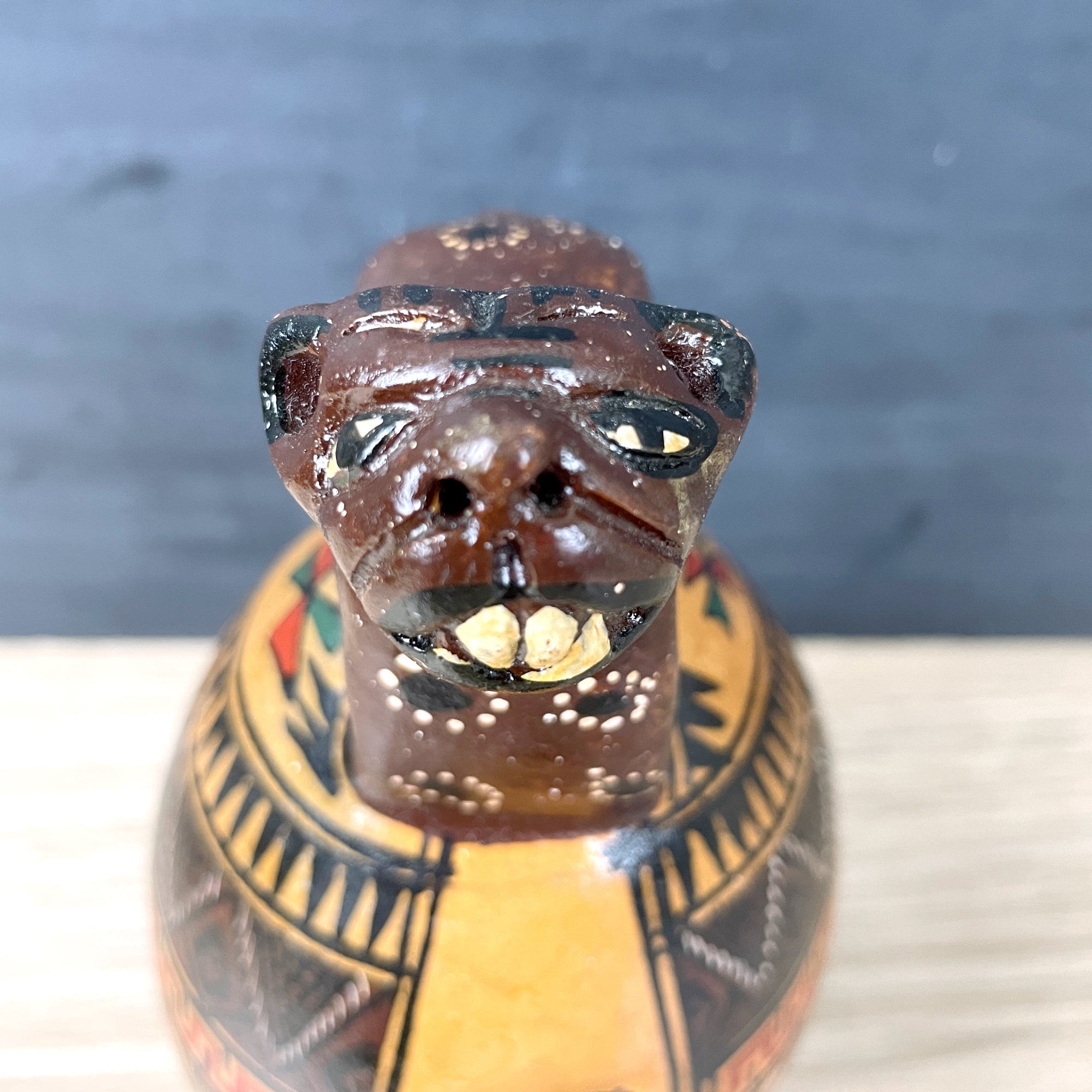 Peruvian jaguar Cusco liquor decanter - folk art pottery