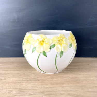 Safaril Pottery yellow floral jardiniere planter - 1990s vintage