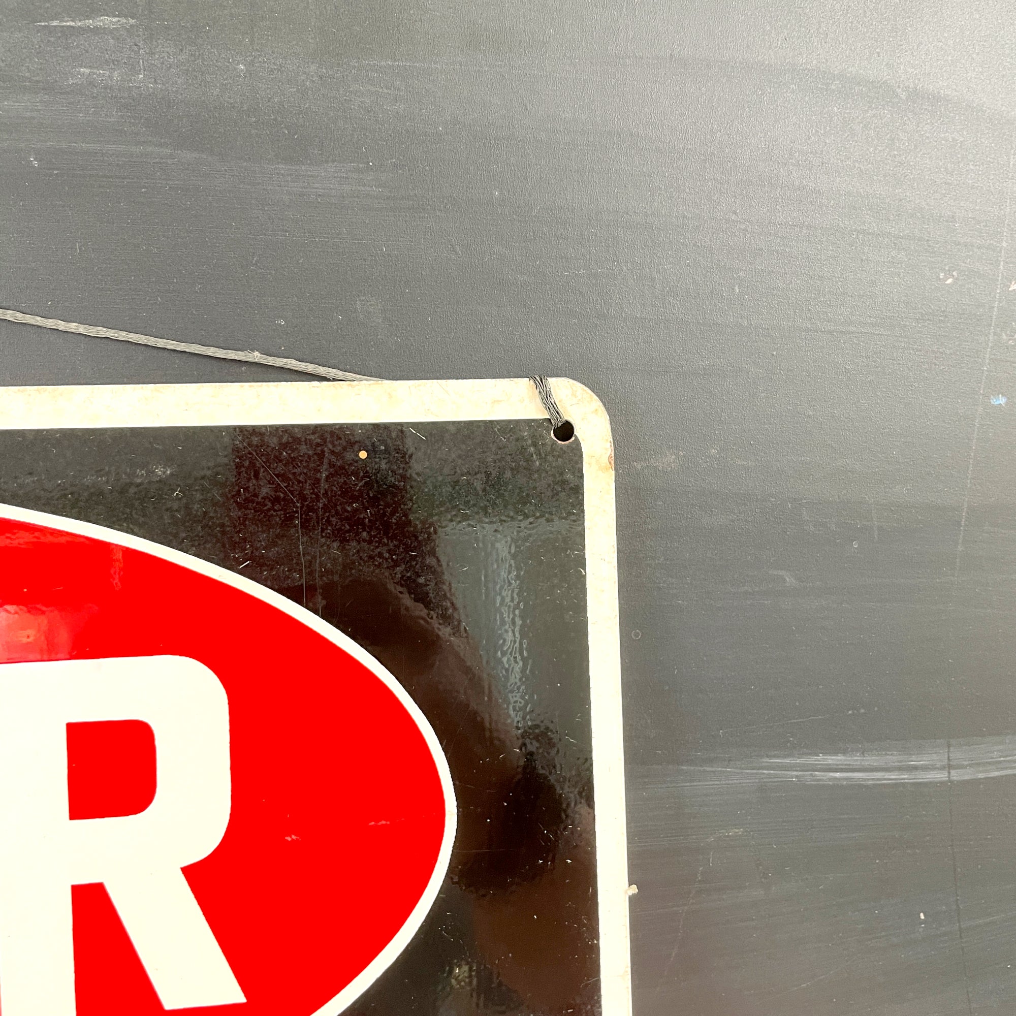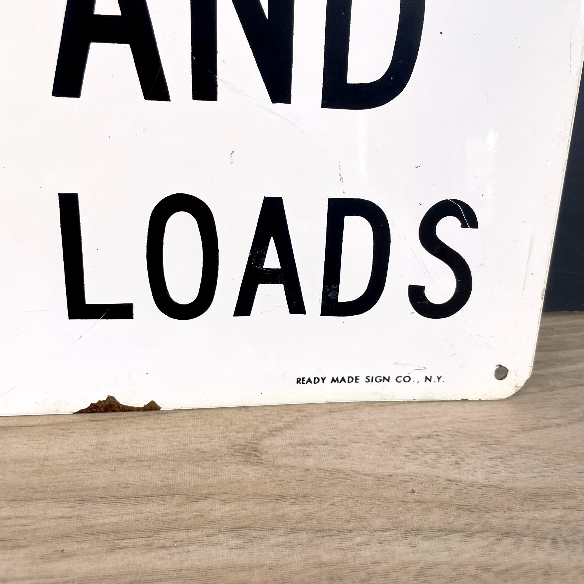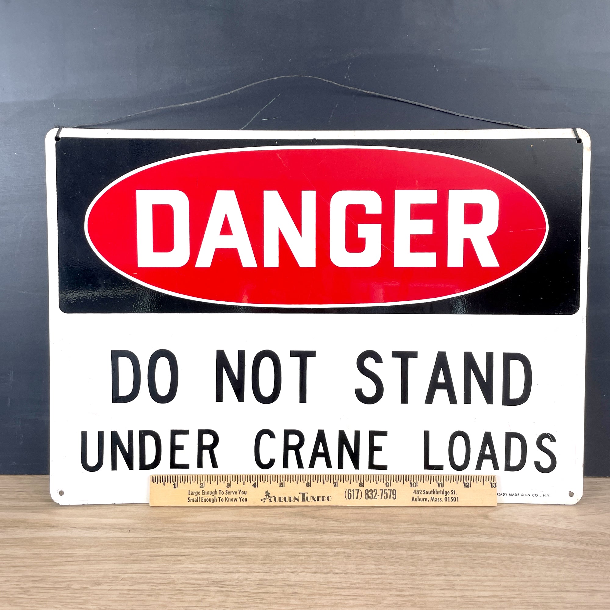 Vintage "Danger, Do not Stand Under Crane Loads" steel sign, made by Ready Made Sign Co., NY. Heavy duty sign has holes top and bottom for hanging. There's currently a wire that can also be used. Has authentic wear from, uh, being used in a warehouse under a crane.