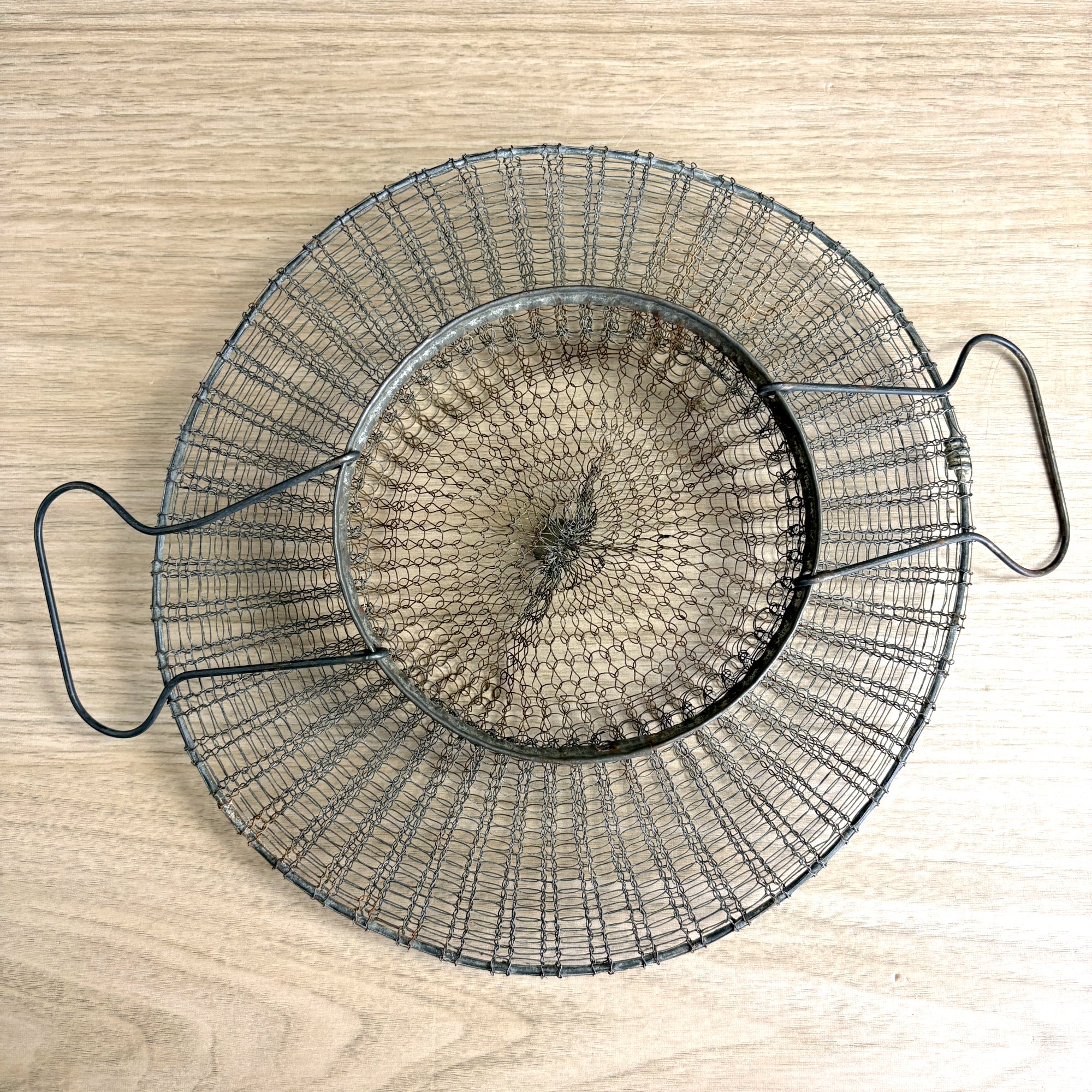 Collapsible metal mesh basket - fruit, garden, steamer - rustic vintage