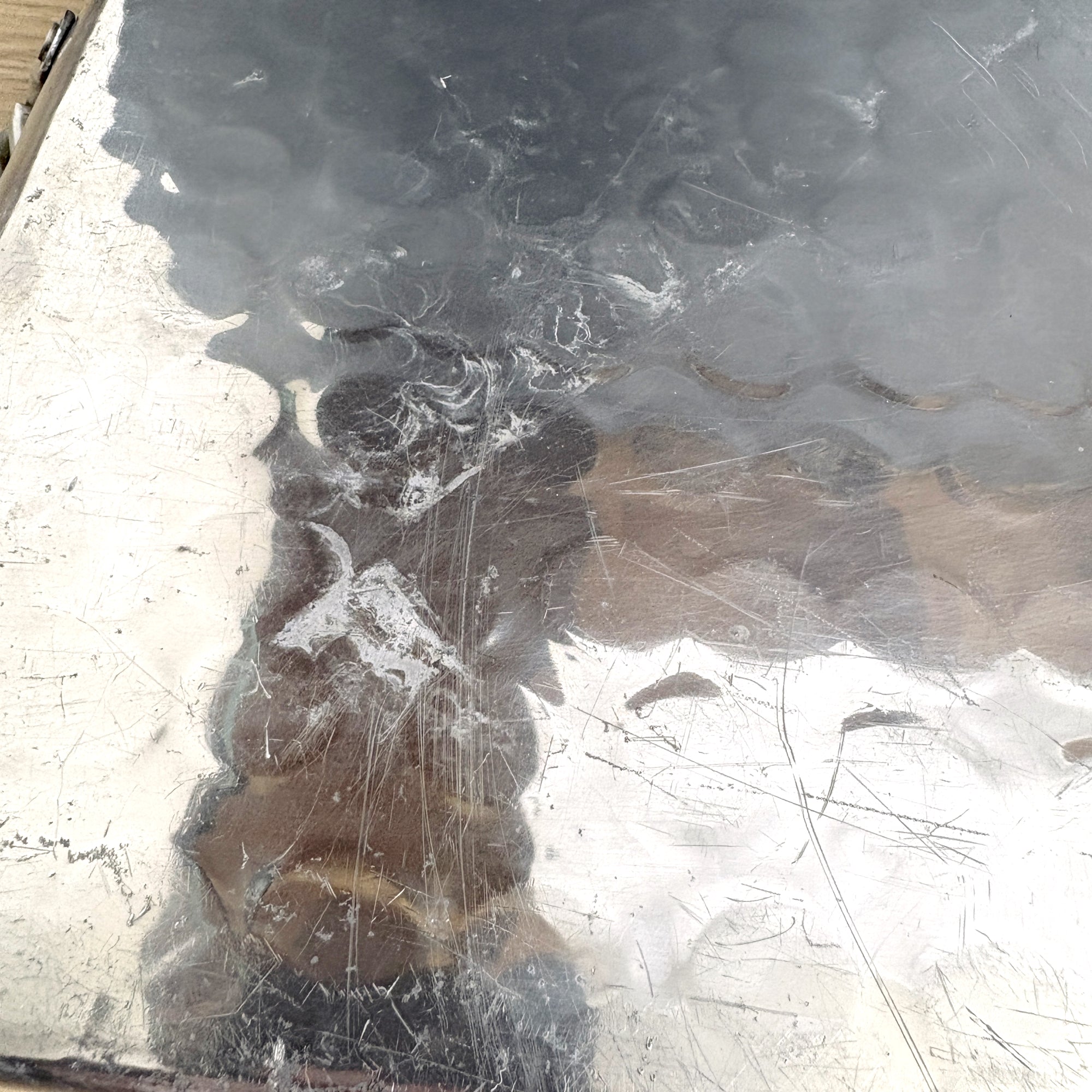 CONDITION Good vintage condition. Surface scratches on top and bottom from age and use. Handle rivets are solid with no wobble. No dents.