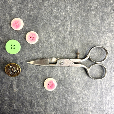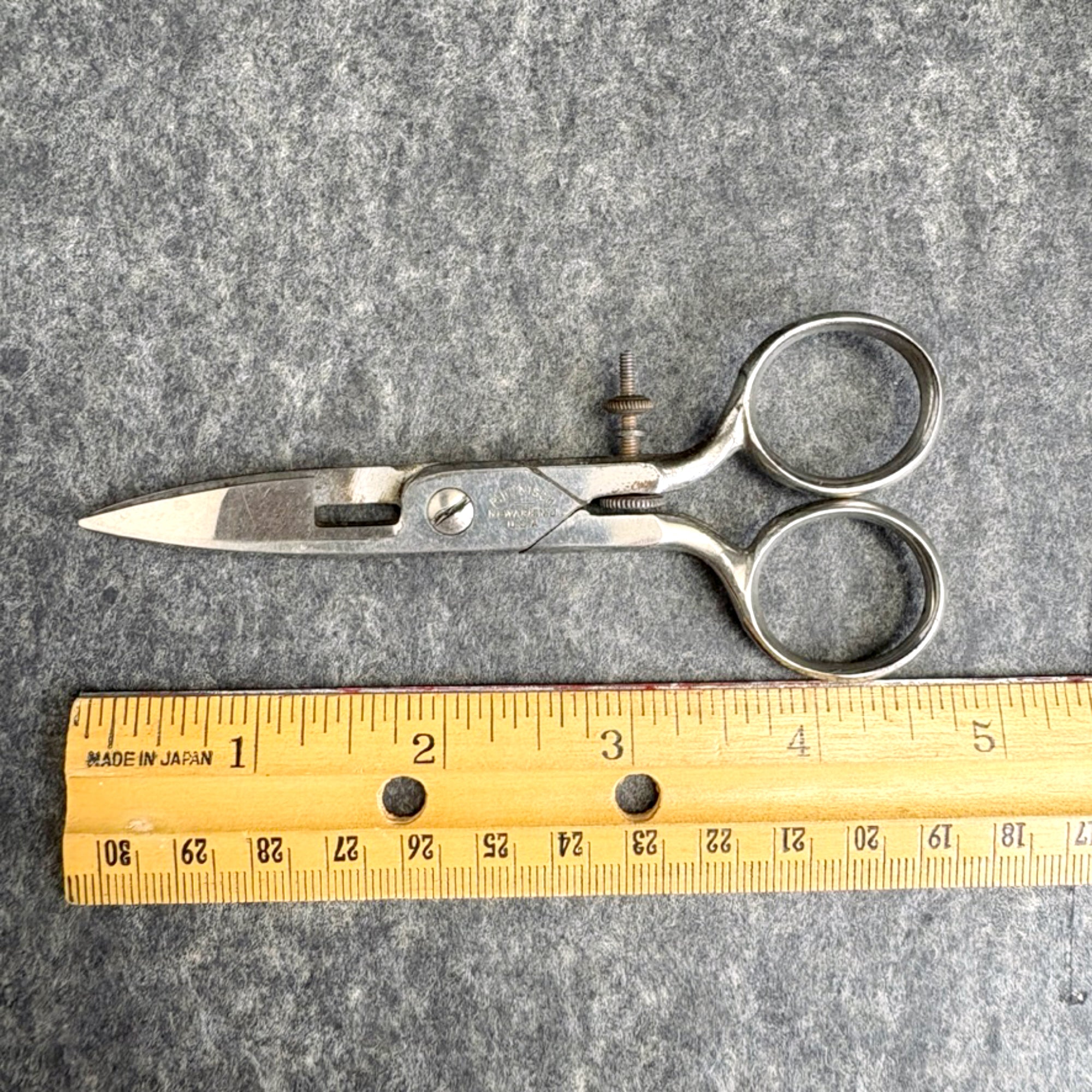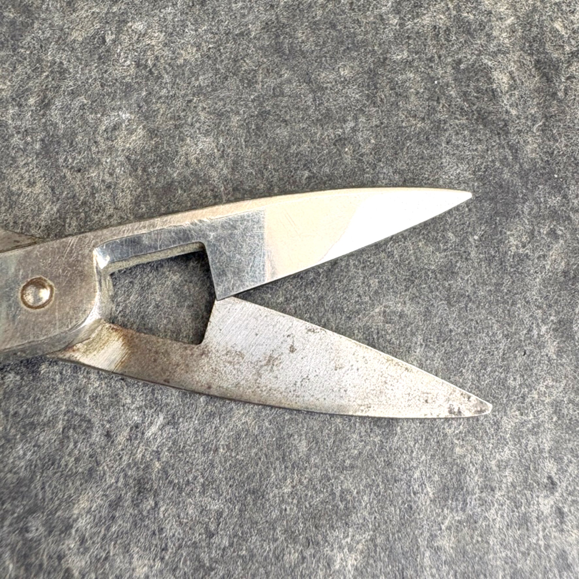 CONDITION Very good for something that's over 100 years old. Set screw turns smoothly, and the scissors open and close easily. There are scratches, a few nicks on the handles and a little bit of rust.