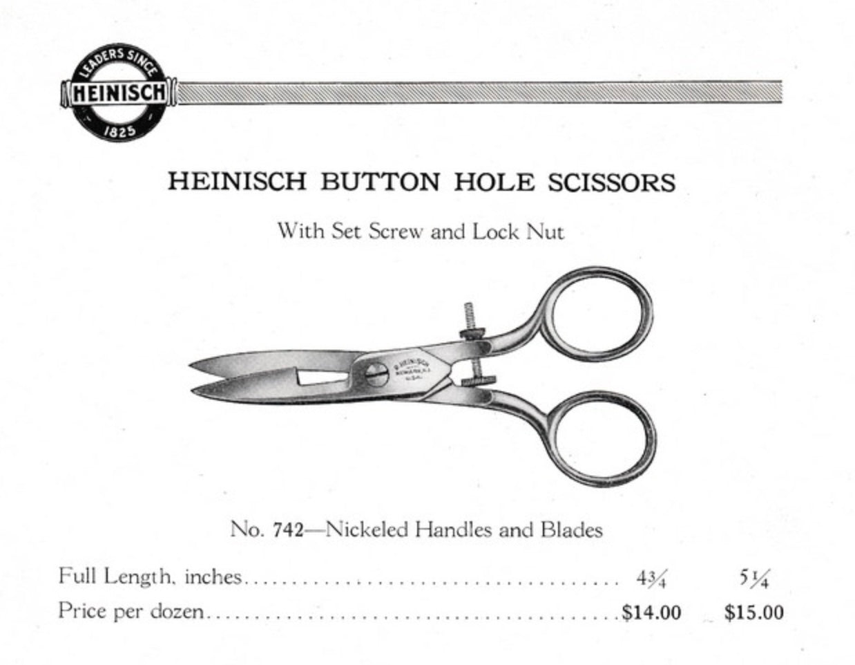 Antique R. Heinisch buttonhole scissors with set screw. From the R Heinisch Sons Works in Newark NJ.
