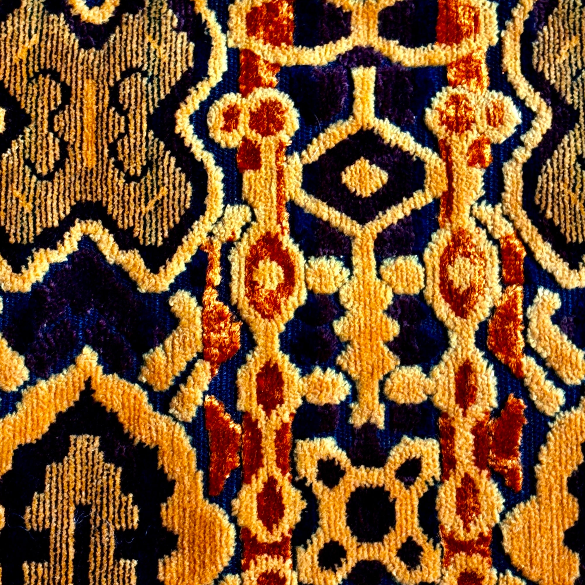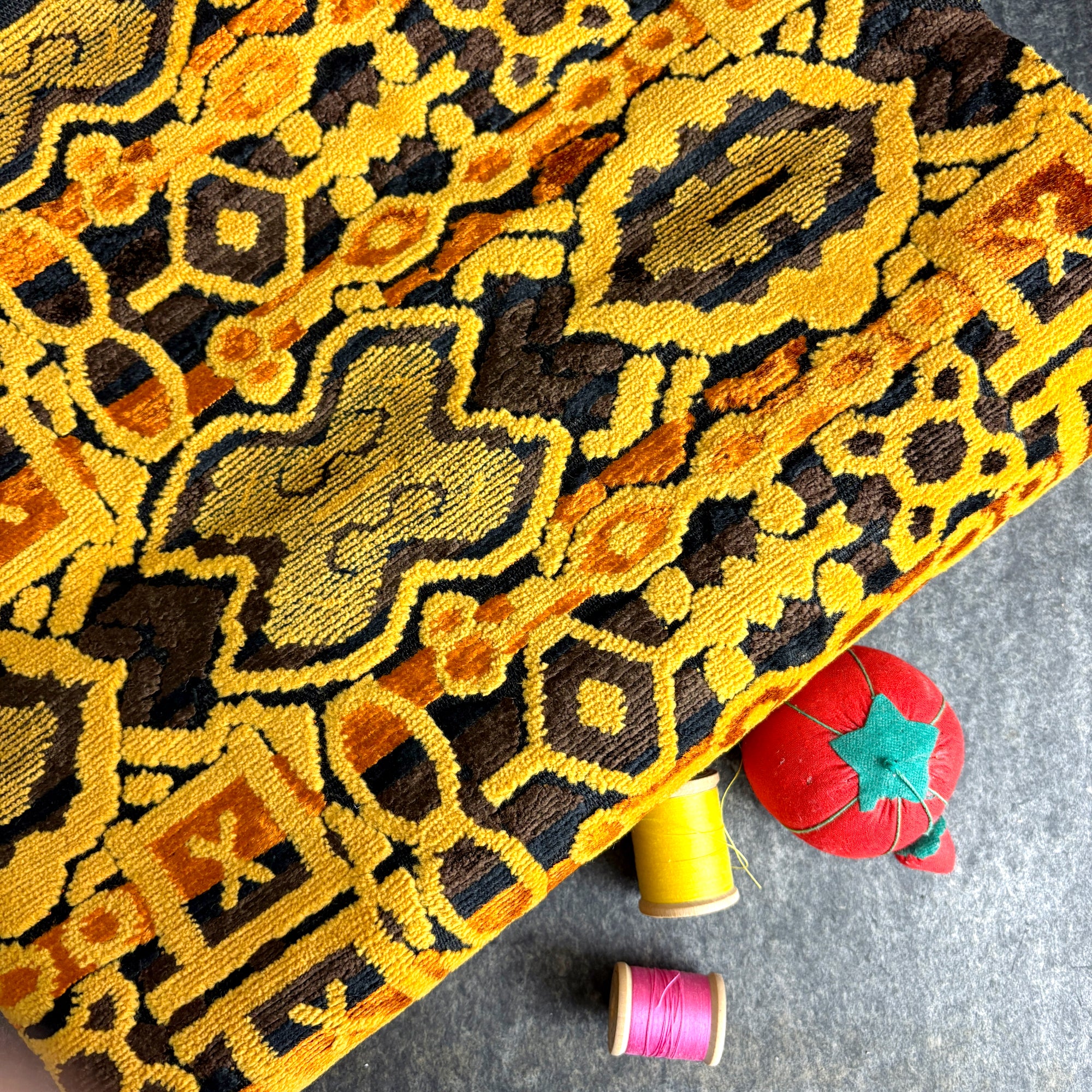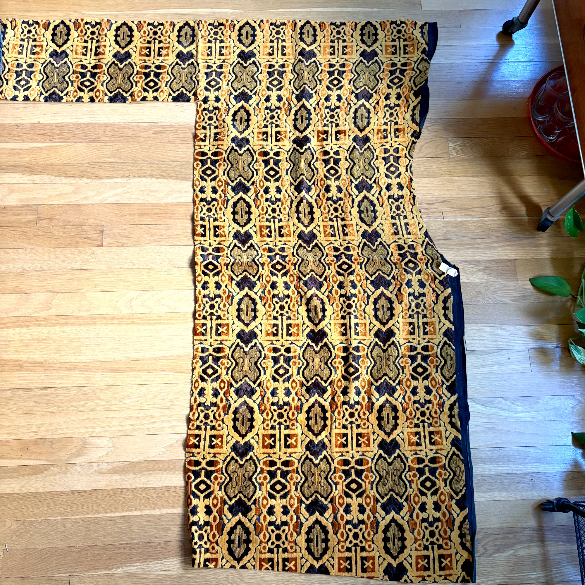 Fabulous mid-century fabric remnant is heavy upholstery weight chenille in rust, gold, brown, and black is a creative crafter's dream. It is cut in an odd shape, but there is plenty of fabric for a dining chair or two, handbags, pillows, maybe even a vest. Let your imagination run wild!