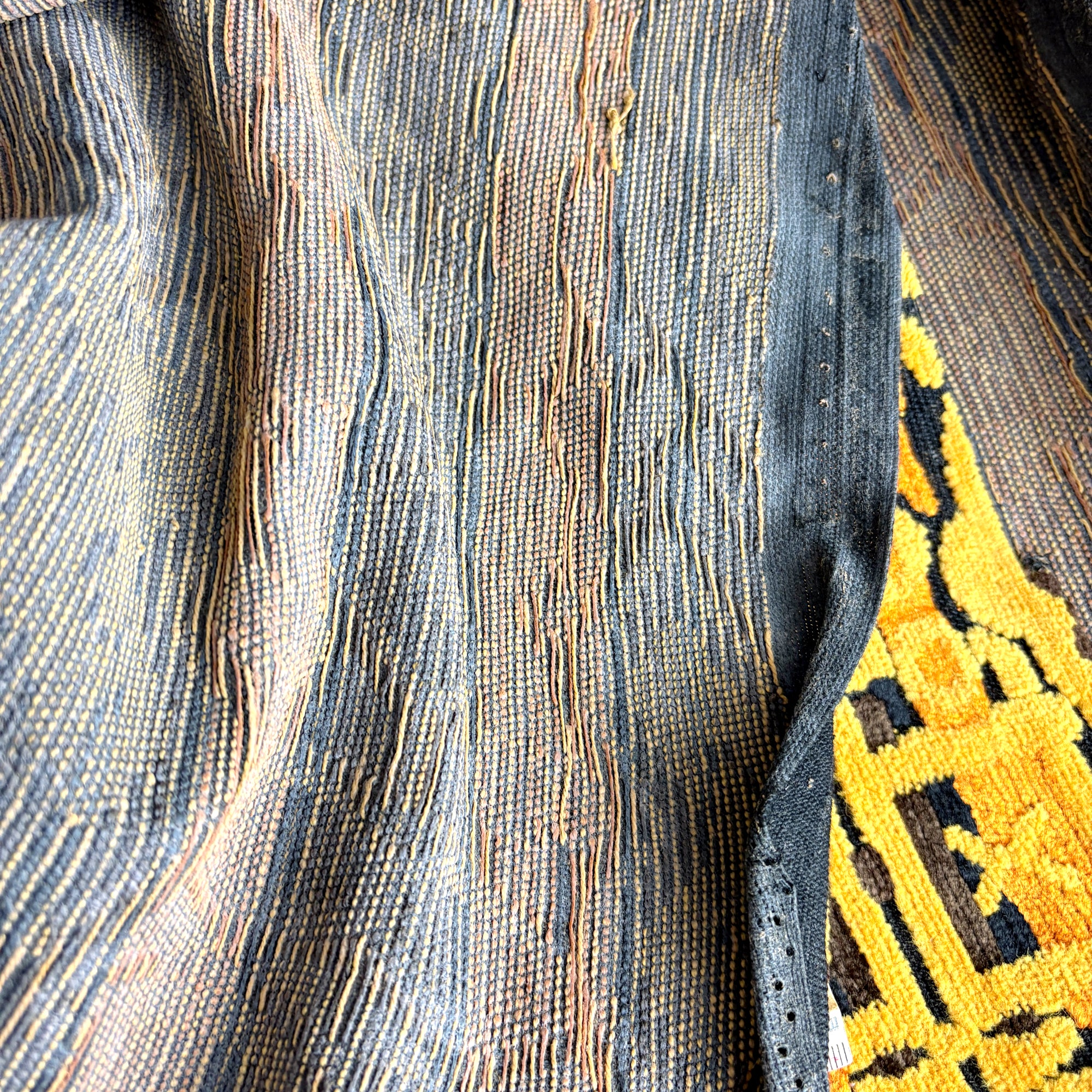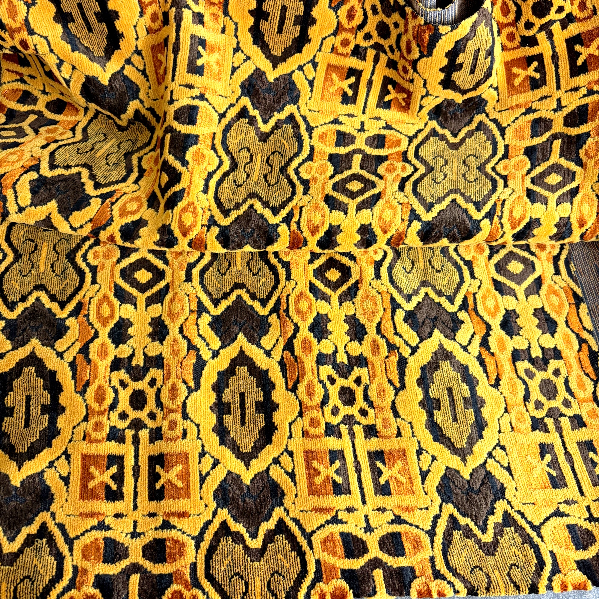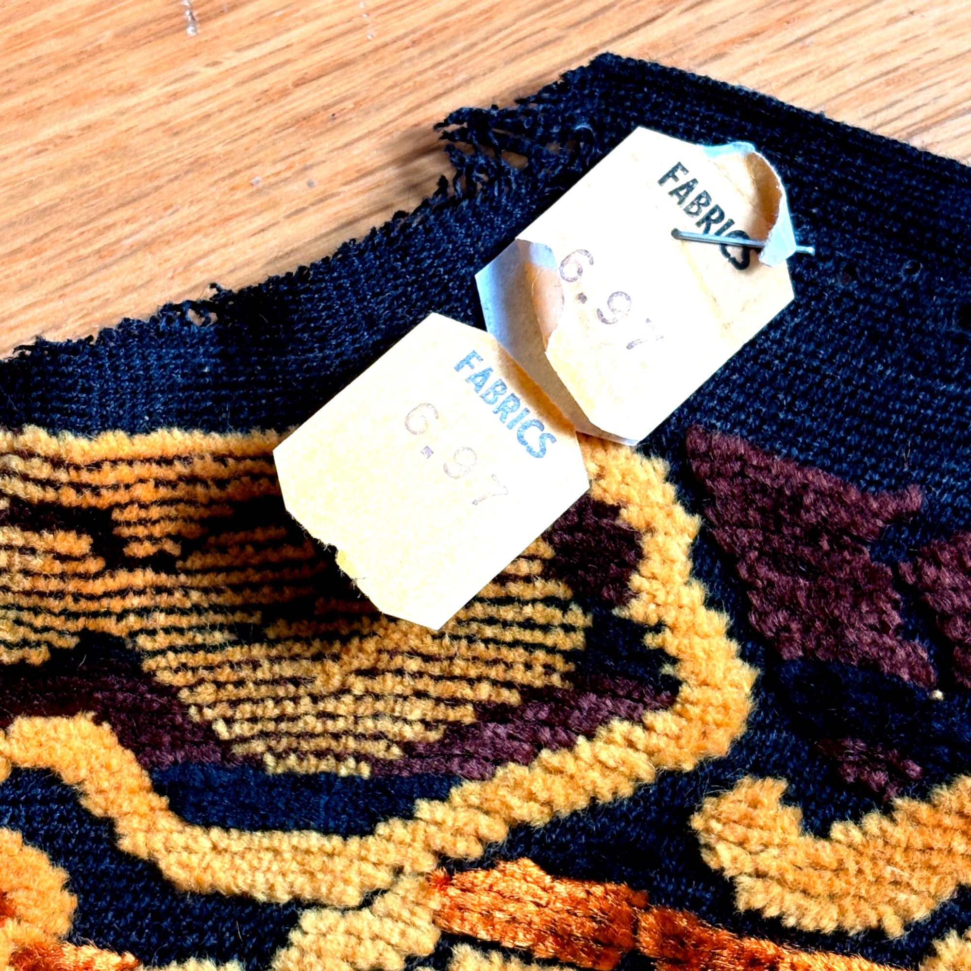 Vintage chenille fabric remnant - upholstery weight - brown rust gold black