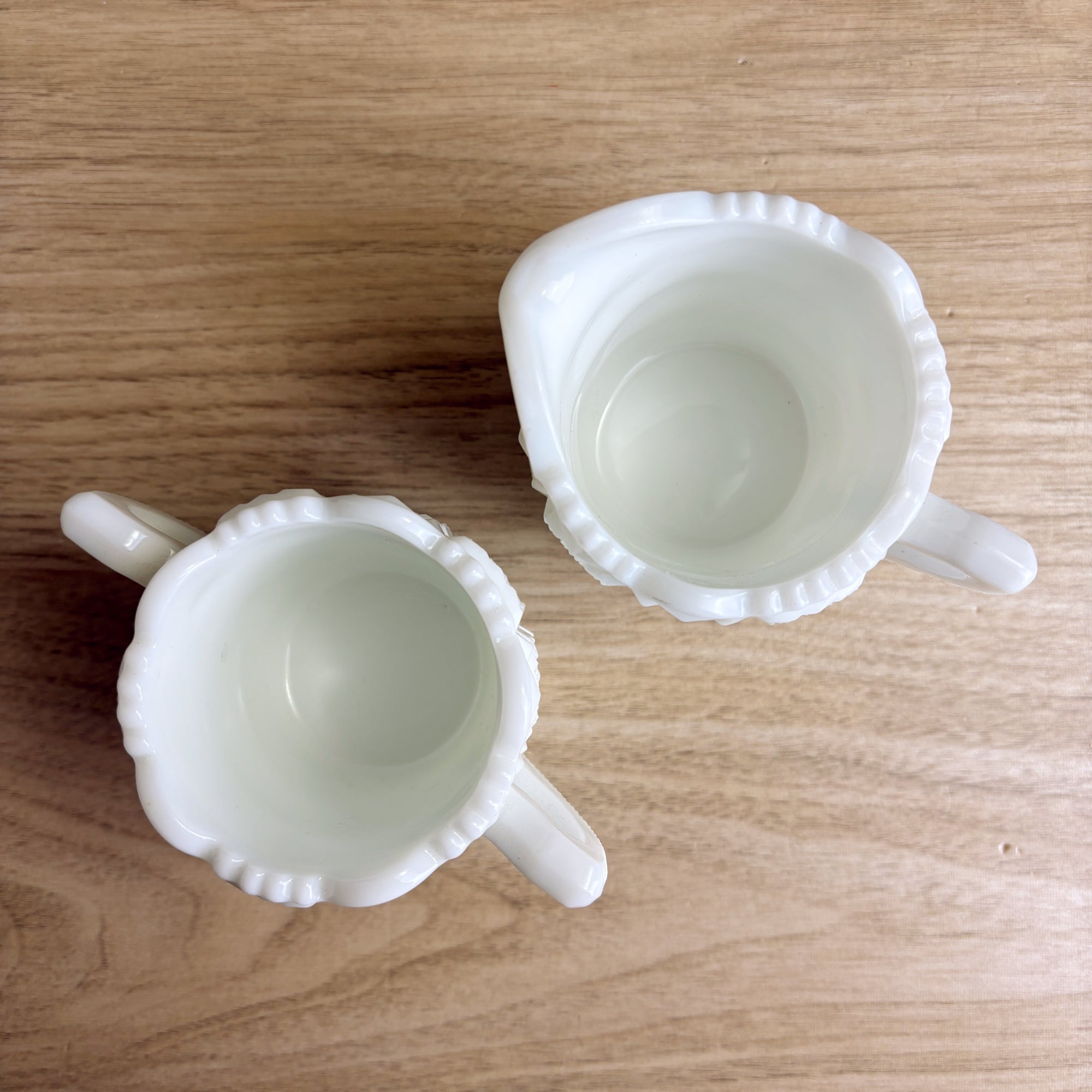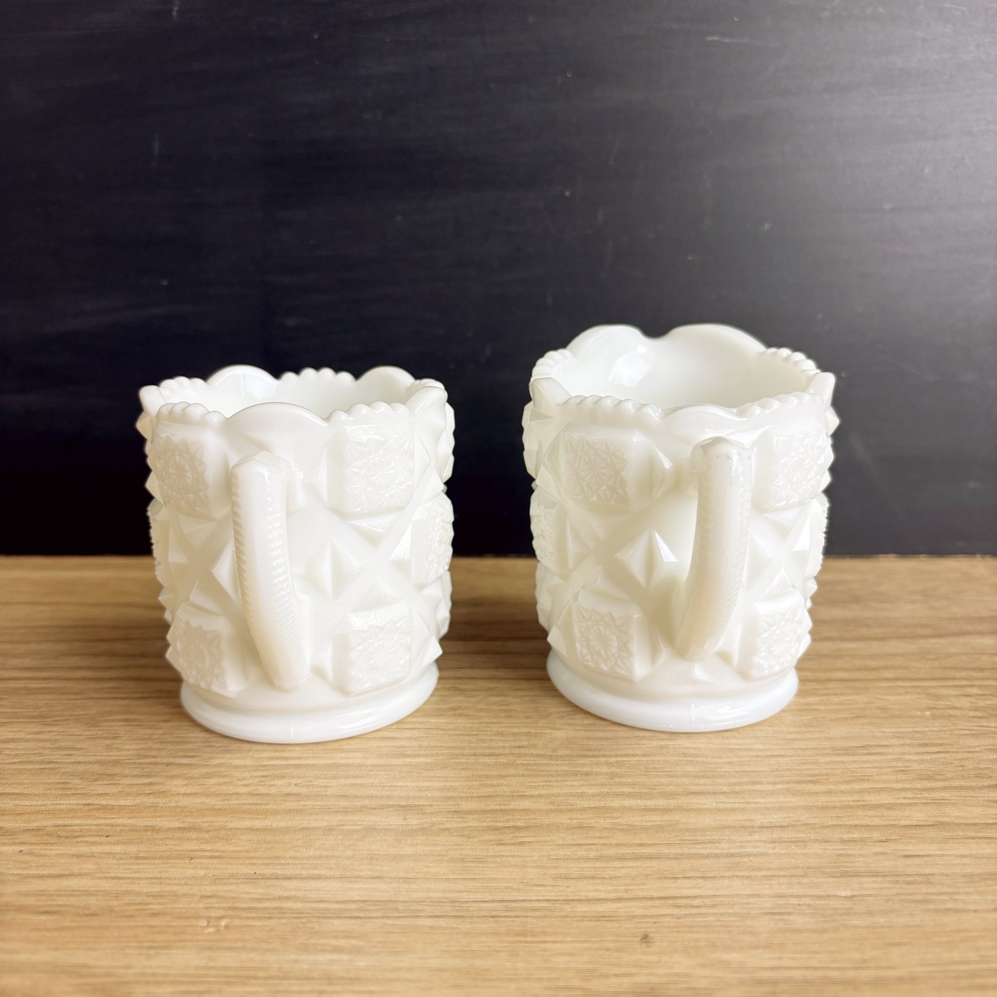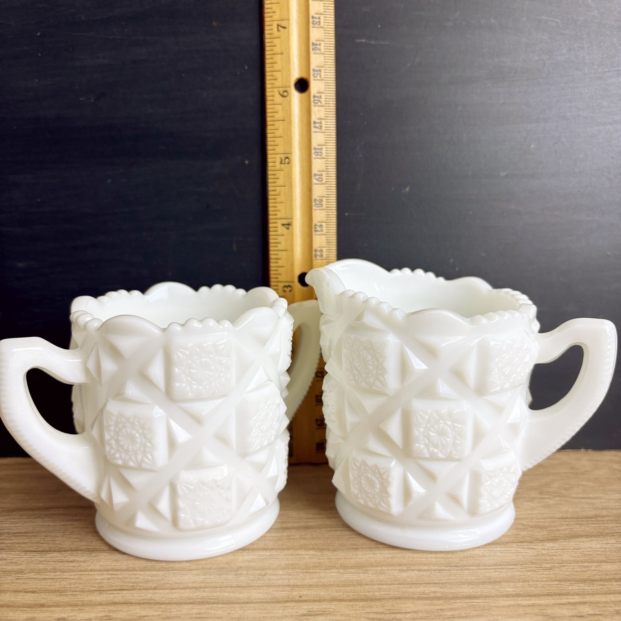 Vintage Westmoreland cream and sugar in the Old Quilt pattern. Add to your favorite mix and match milk glass dish set.
