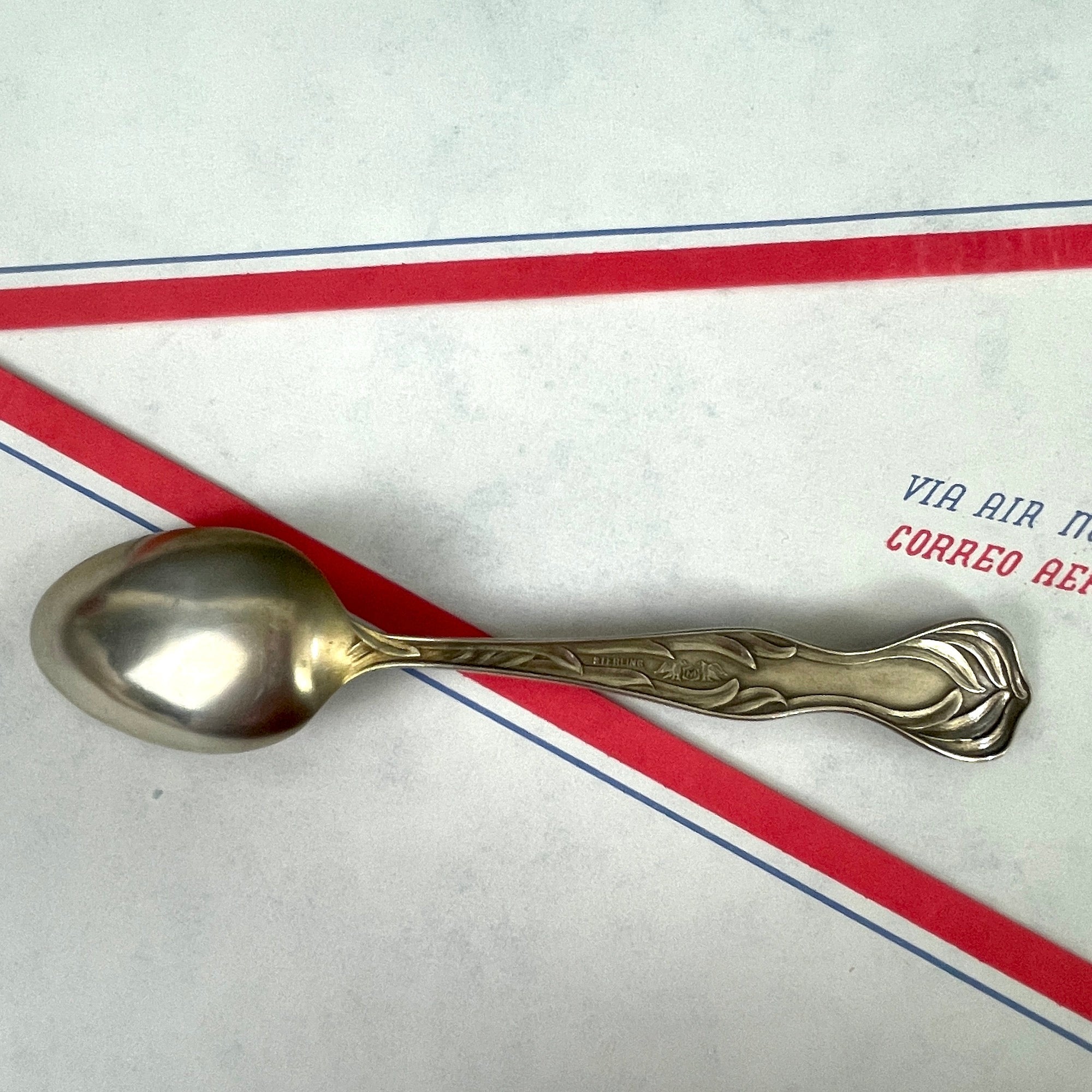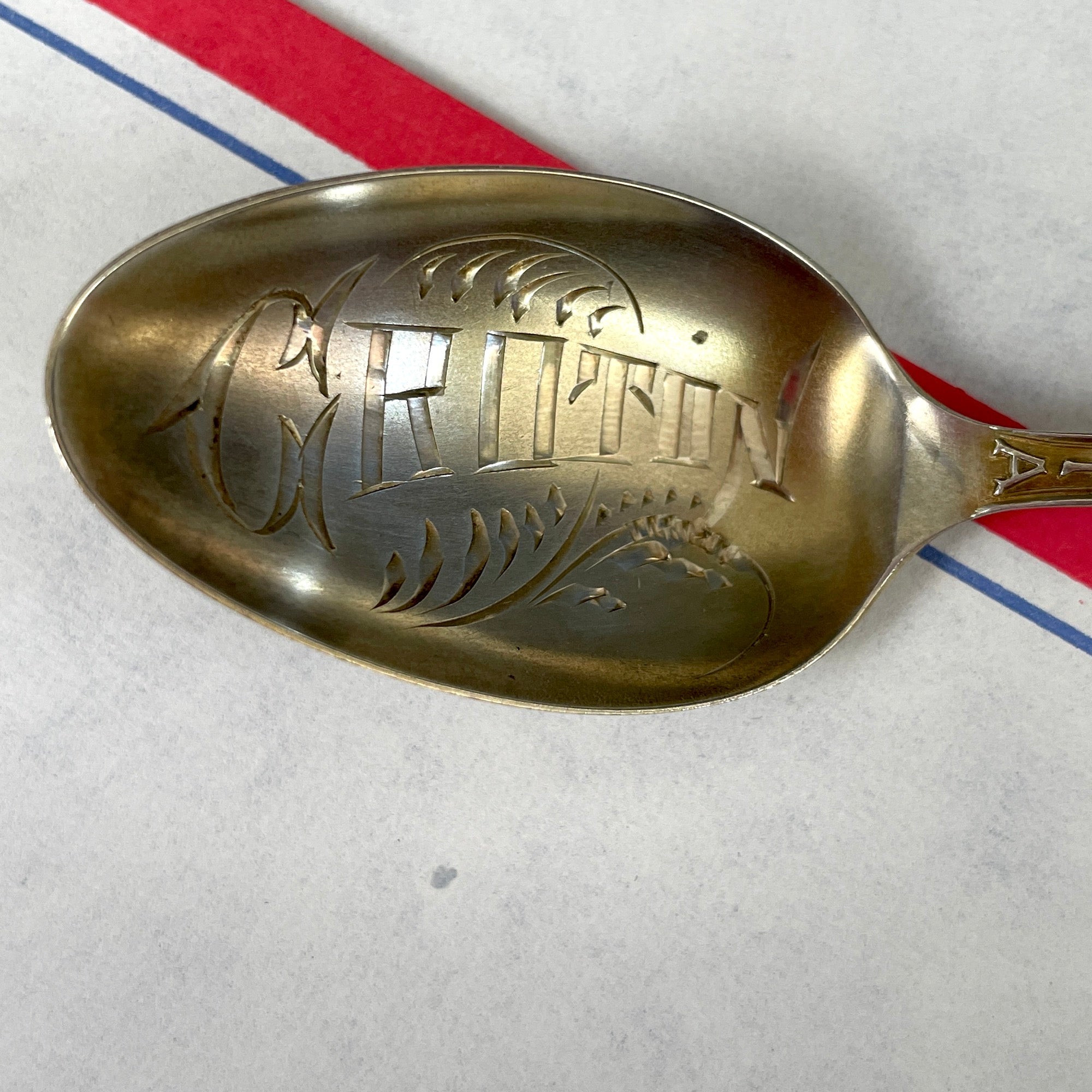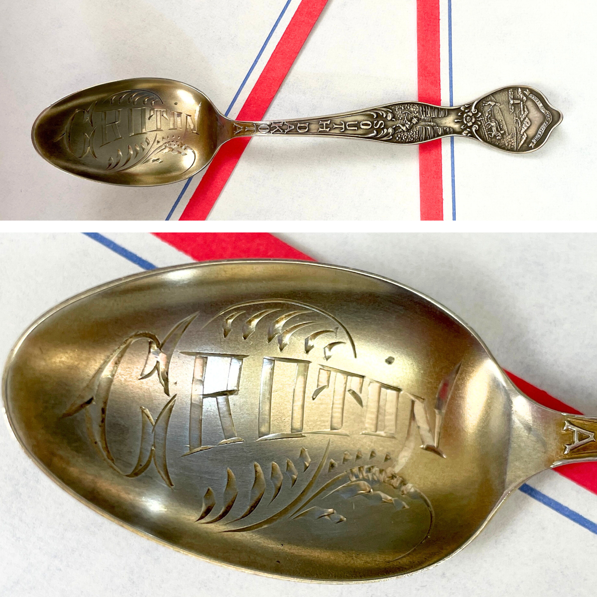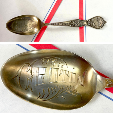 Vintage sterling silver South Dakota souvenir spoon, engraved with Groton on the bowl. Decorative engraving, small images from South Dakota history on the handle. Made by the Baker Manchester Mfg. Co. of Providence, RI between 1914-1930.