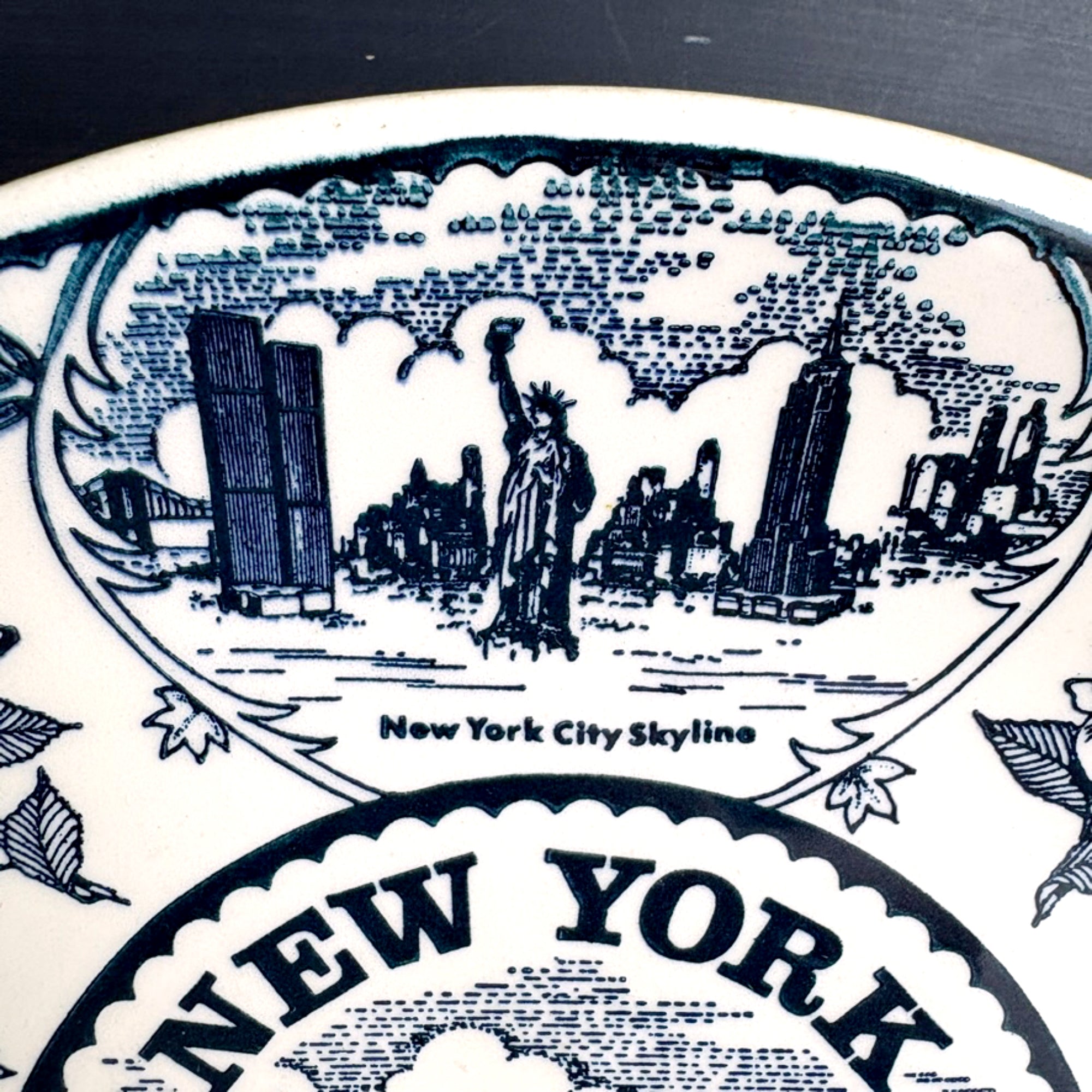 This is an authentic vintage item with a history of use and love. Please review the photos carefully to appreciate its condition. Perfect for collectors of state souvenir plates, Twin Towers memorabilia, or New York history.