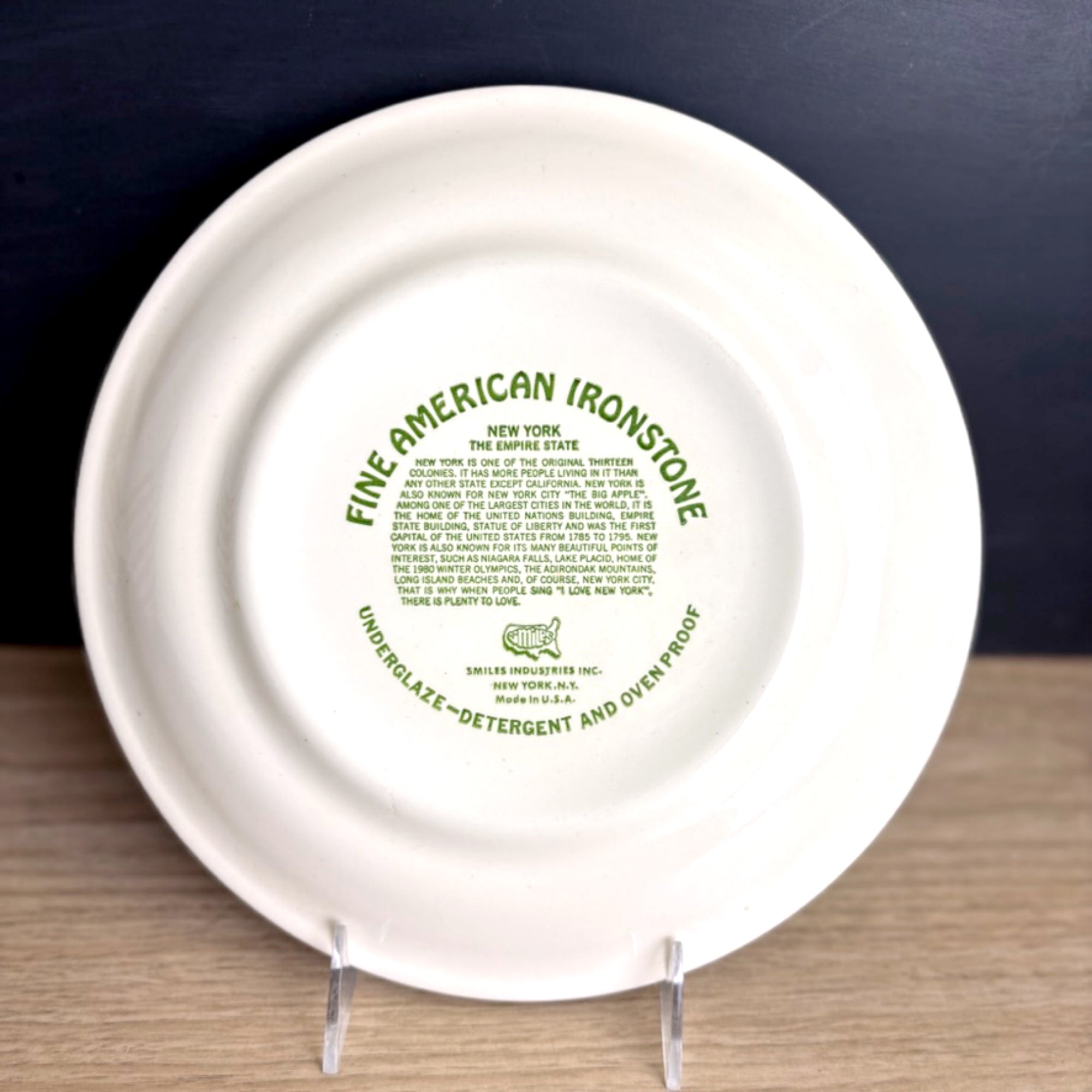 Vintage New York state souvenir plate – 1980s ironstone by Smiles Industries – 10.25"