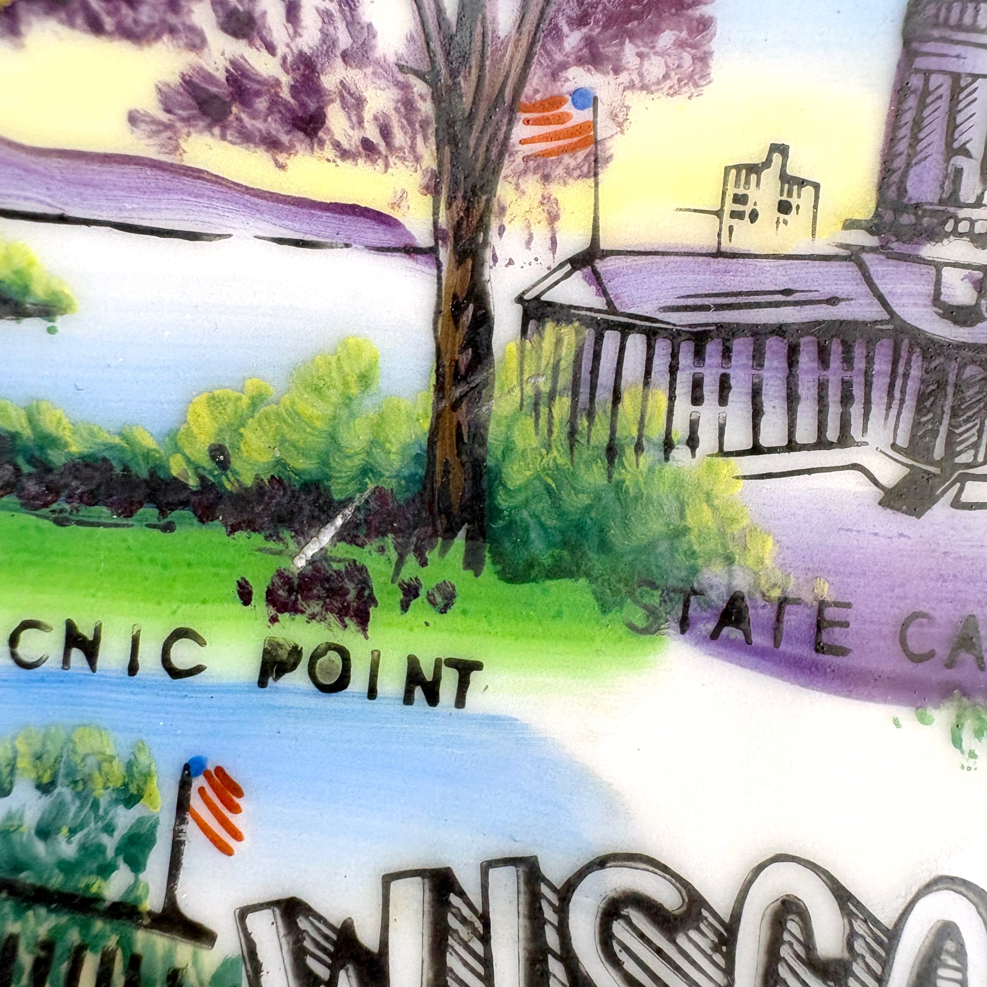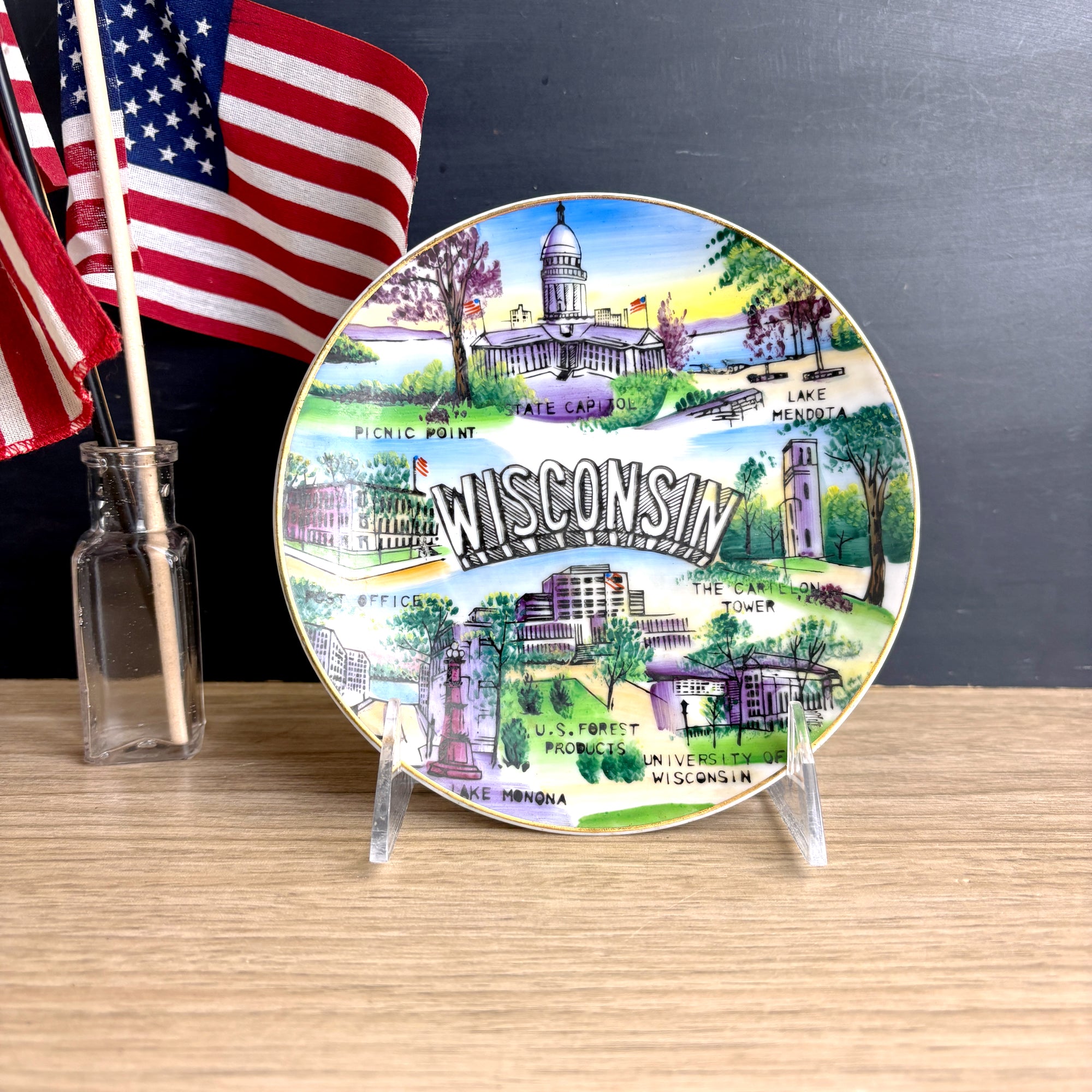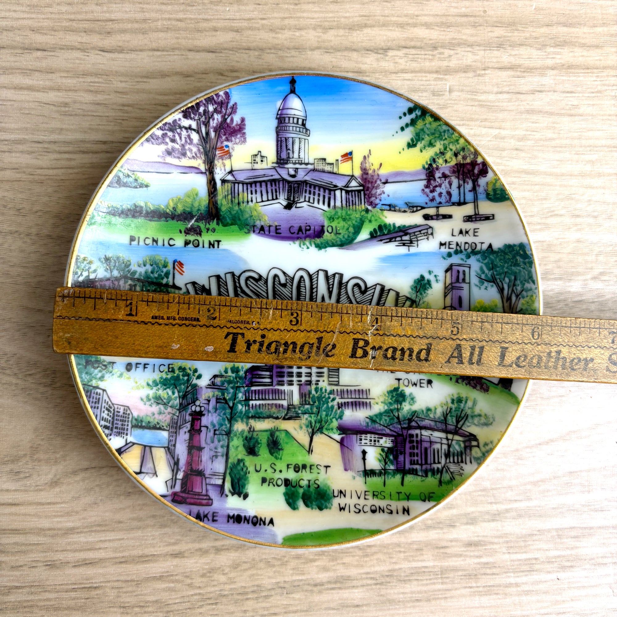 Wisconsin state souvenir plate - vintage 1950s road trip souvenir