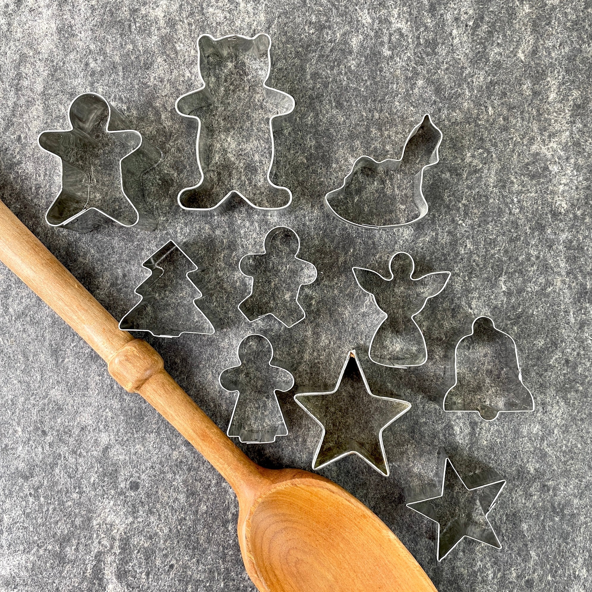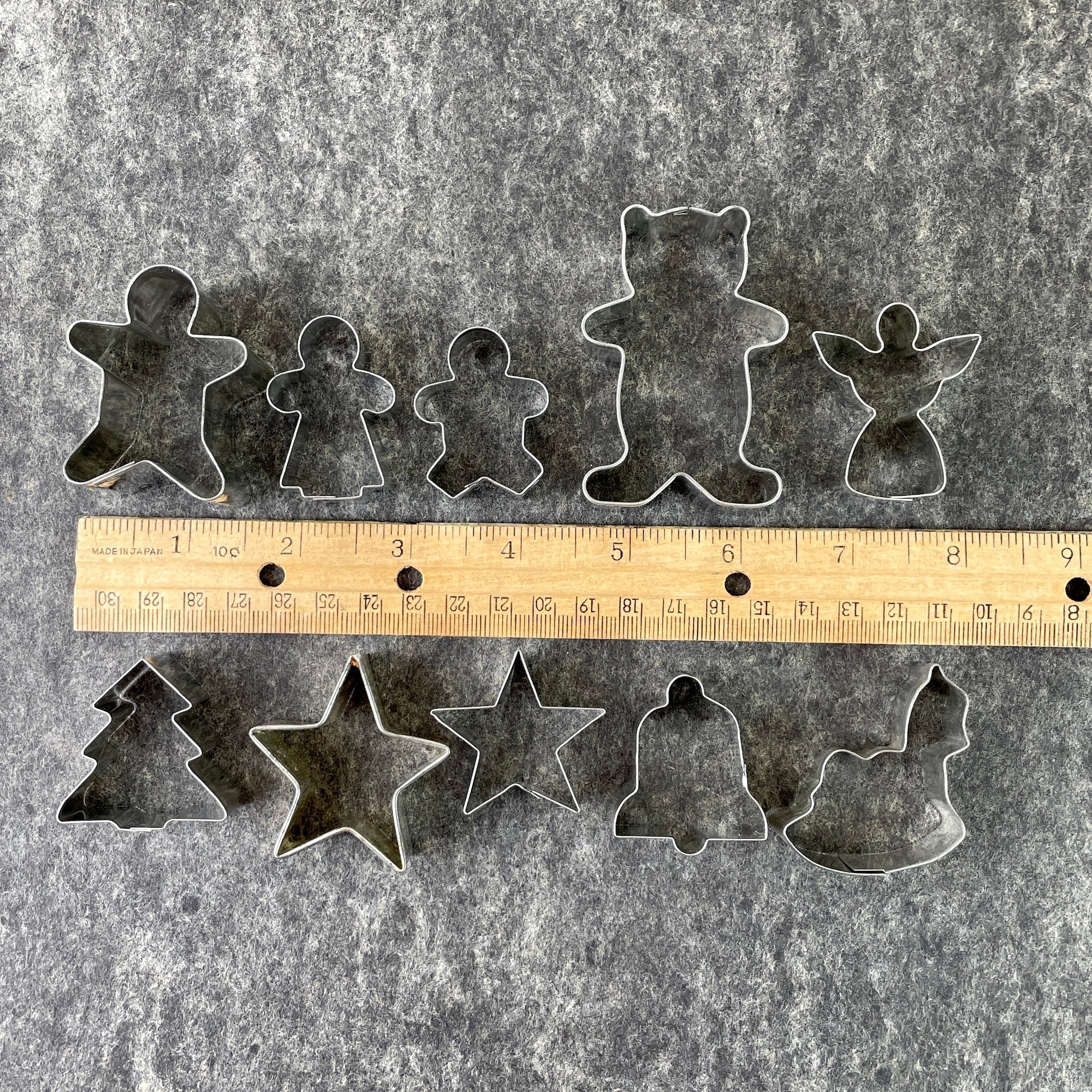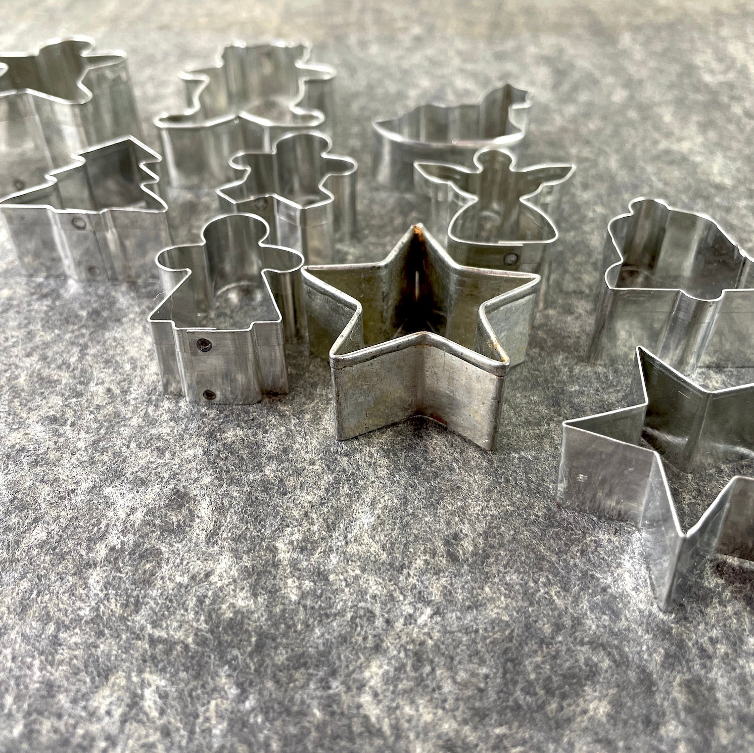 10 vintage cookie cutters for use in the kitchen or the craft room. Reinforced top rims.