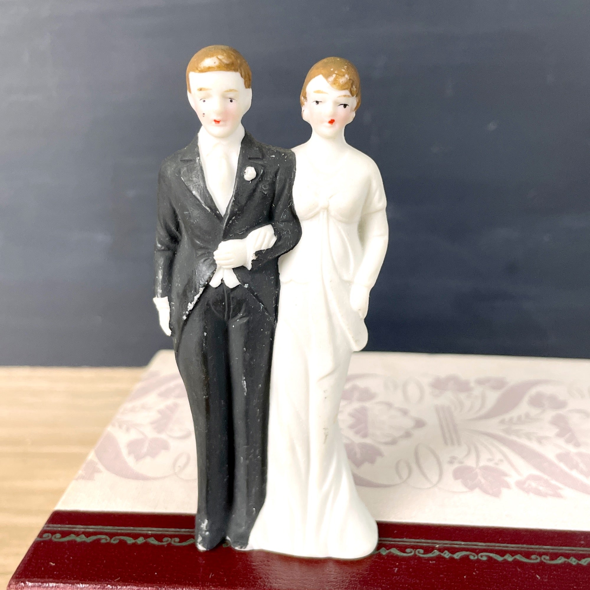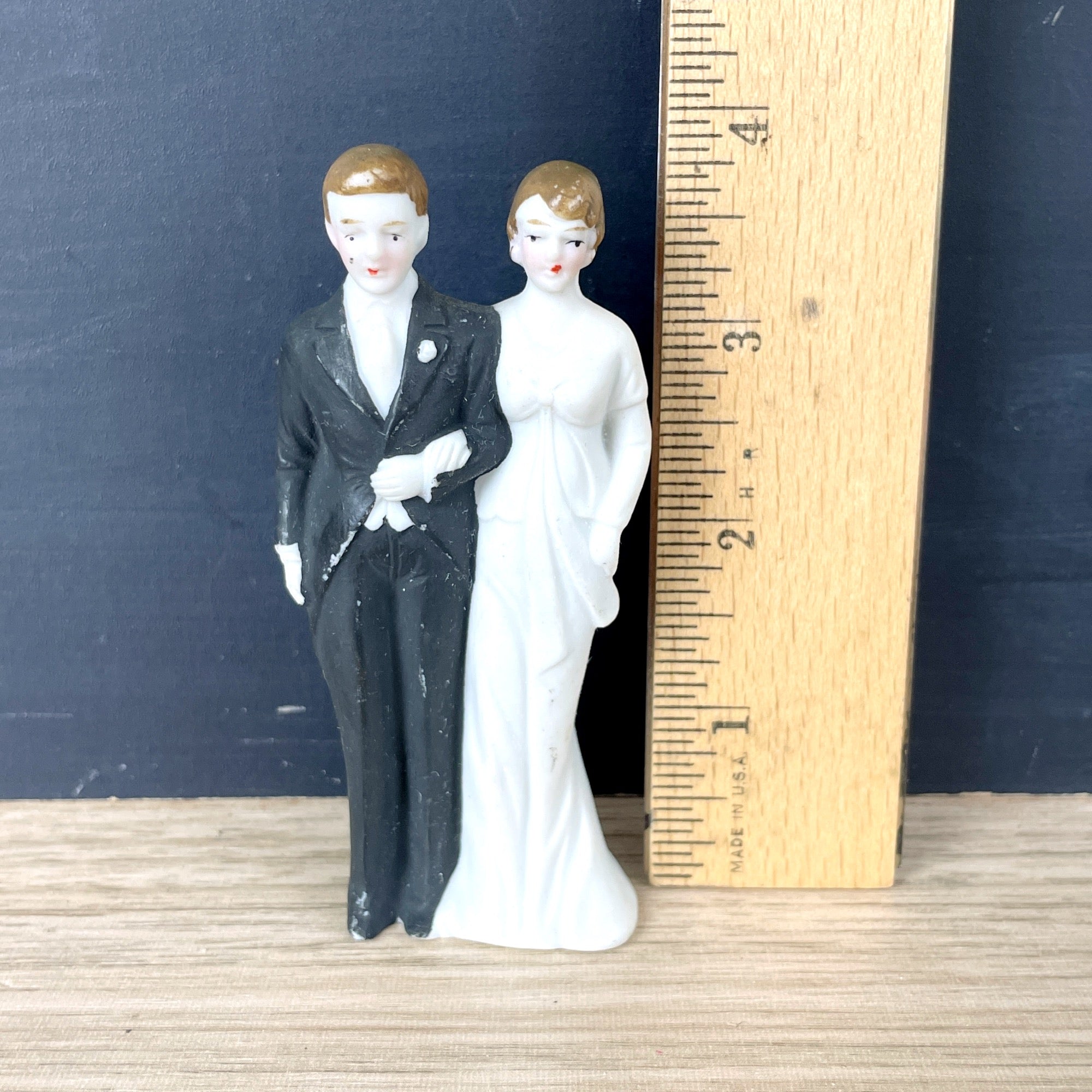 Porcelain bride and groom from the 1940s. Marked with Made in Occupied Japan on the base. A nice shower gift for a vintage-loving couple.