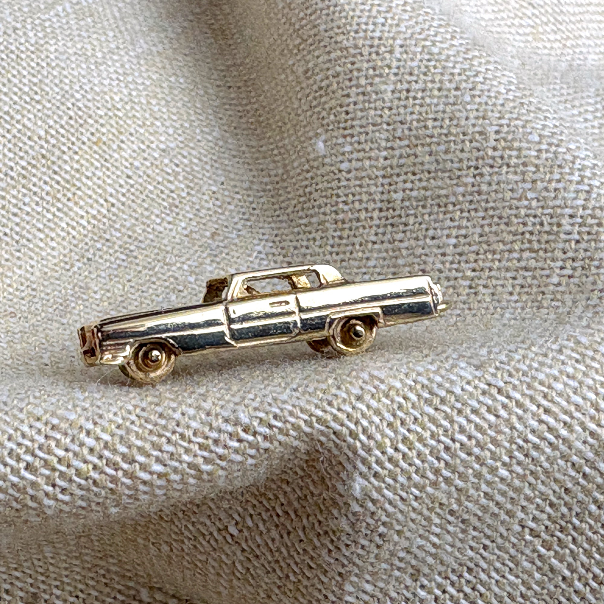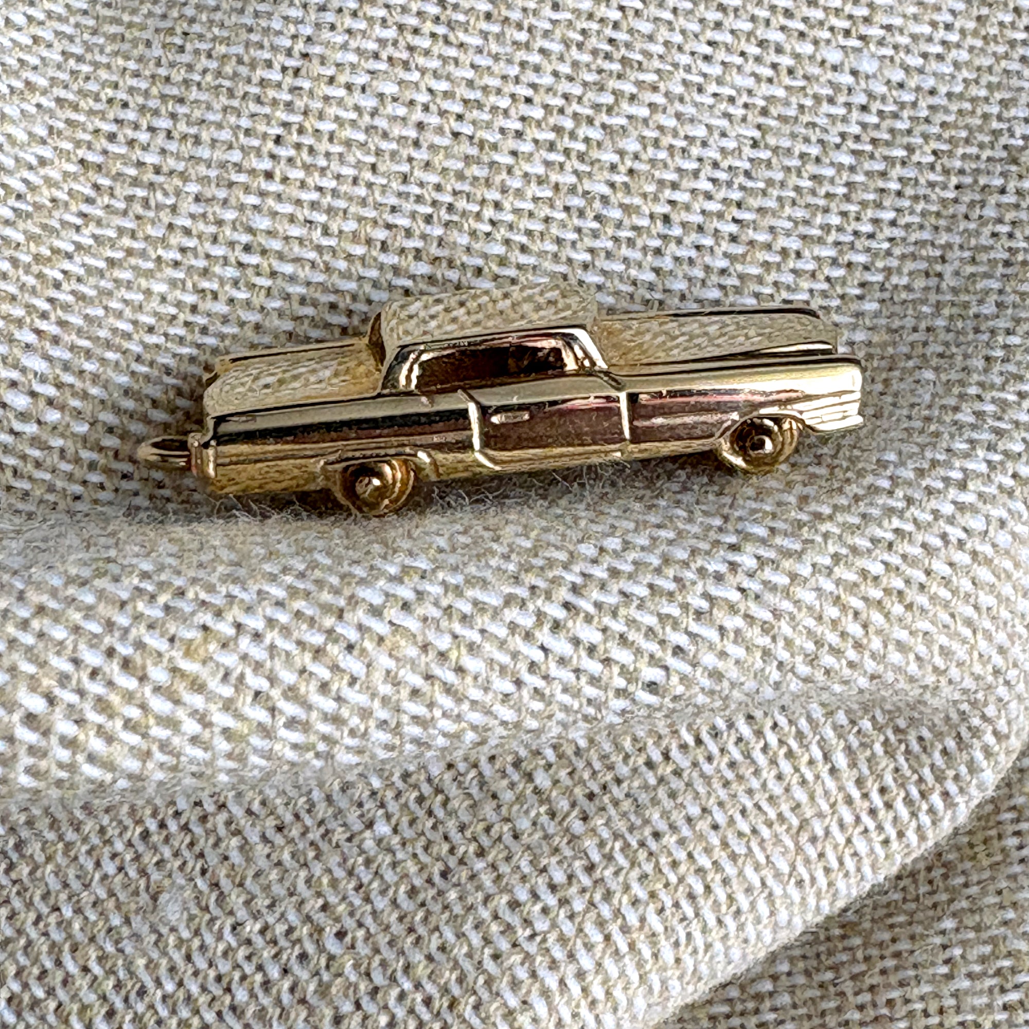 1960s 14K sedan automobile car charm - moveable spinning wheels - 4.38 gms