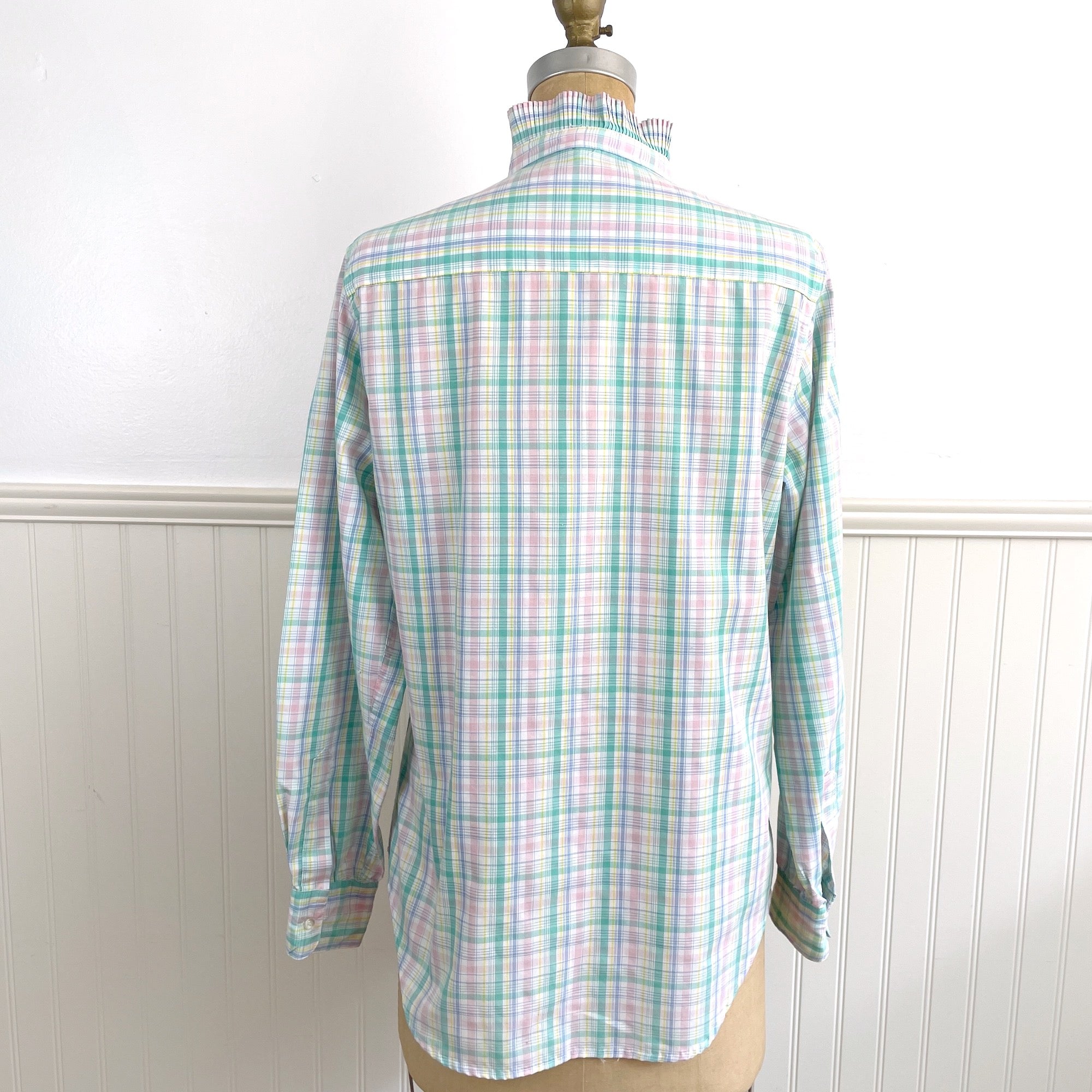 1980s Andrew Harvey asymmetrical pastel plaid blouse - size L