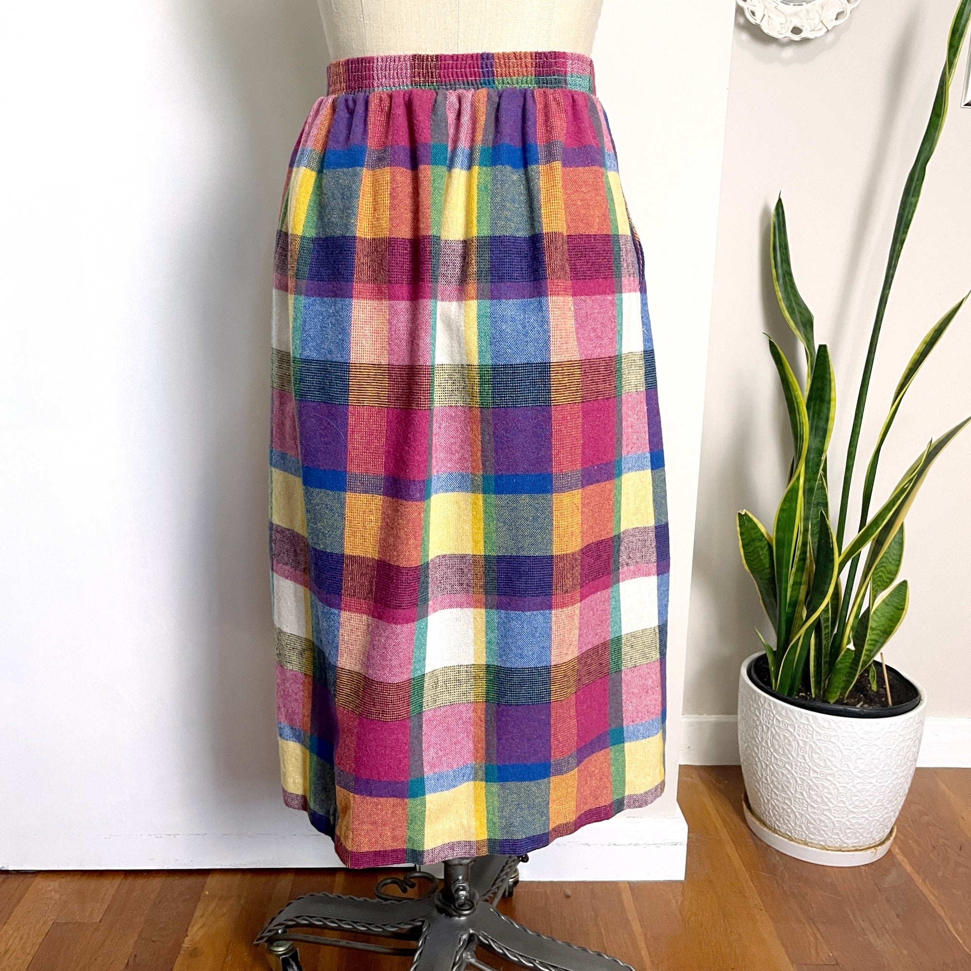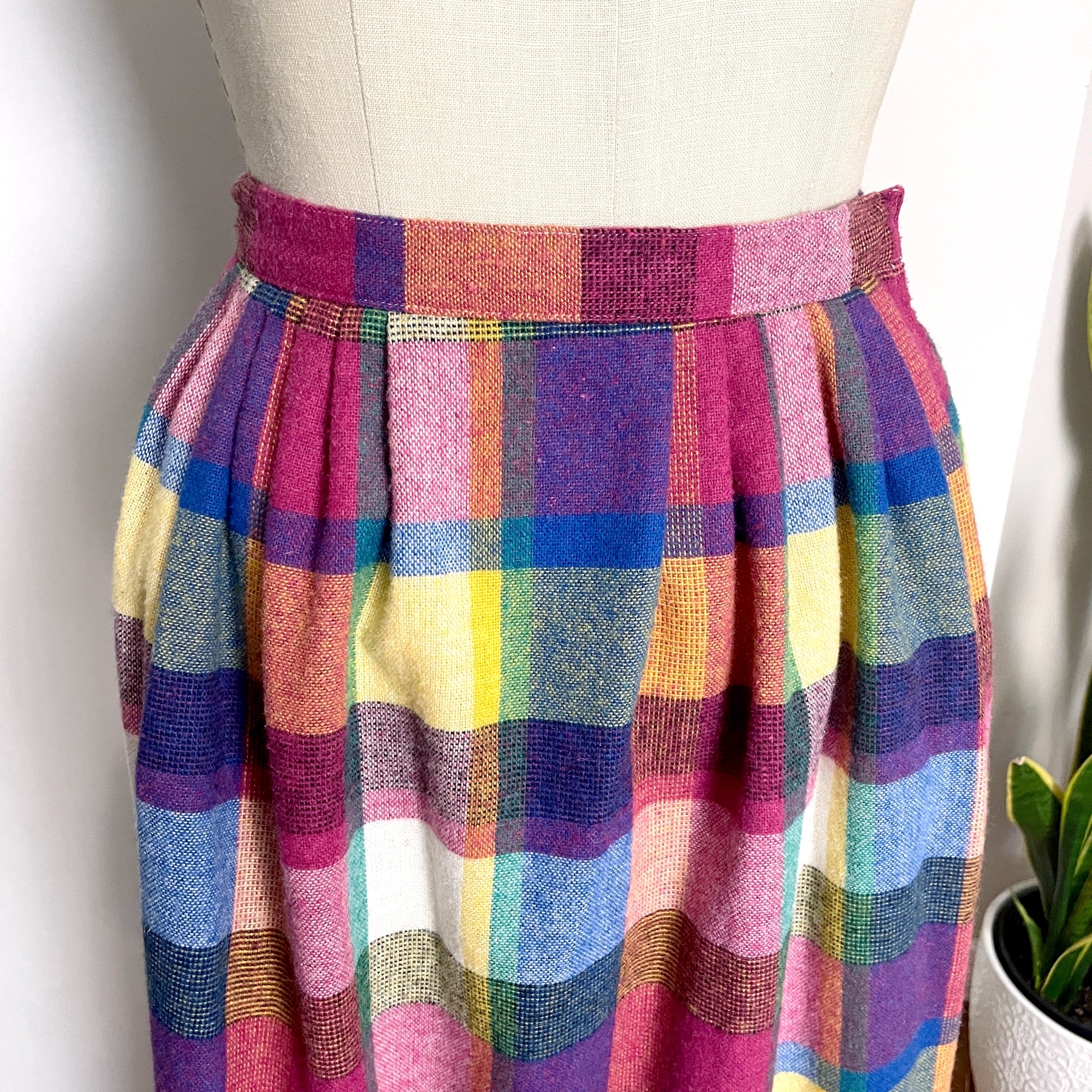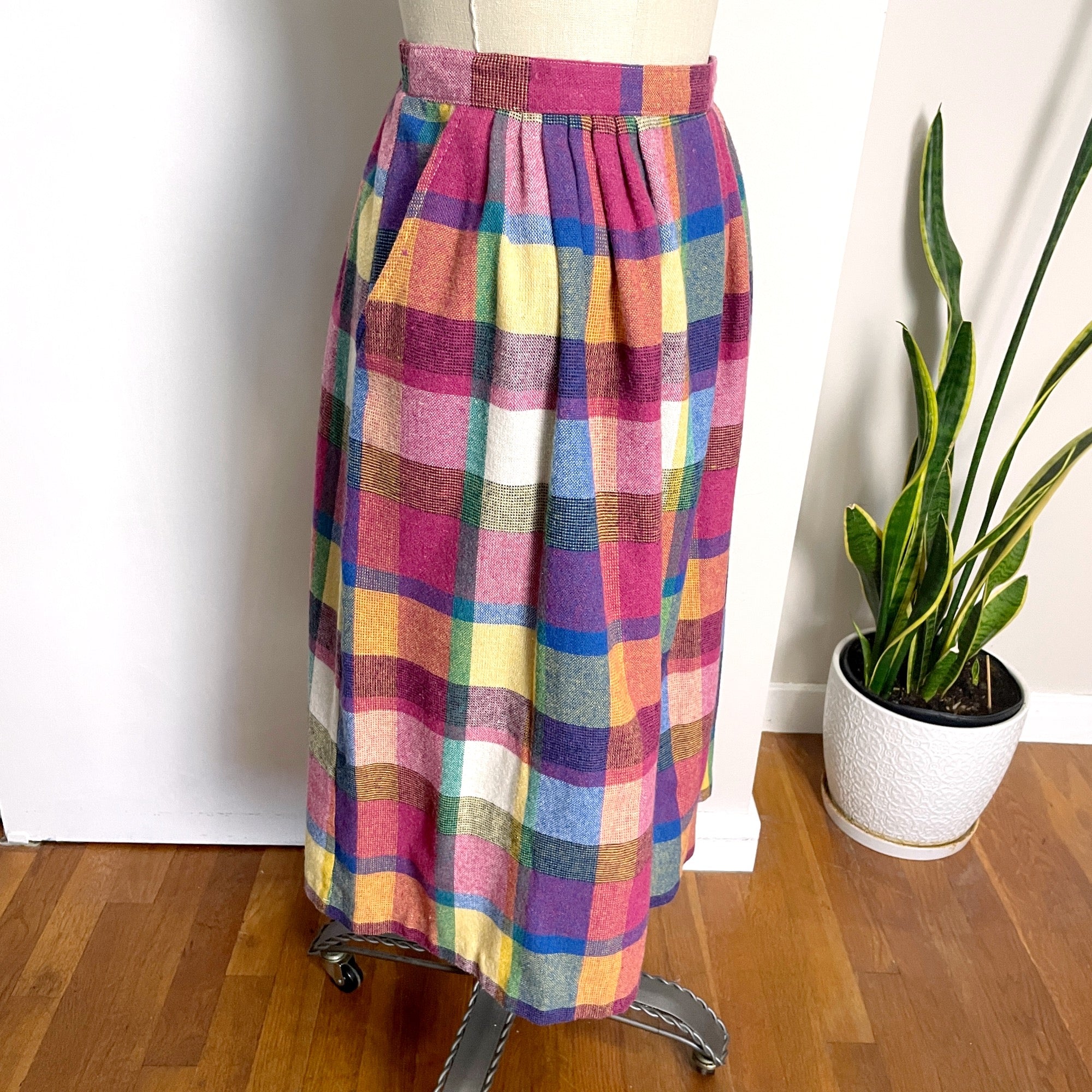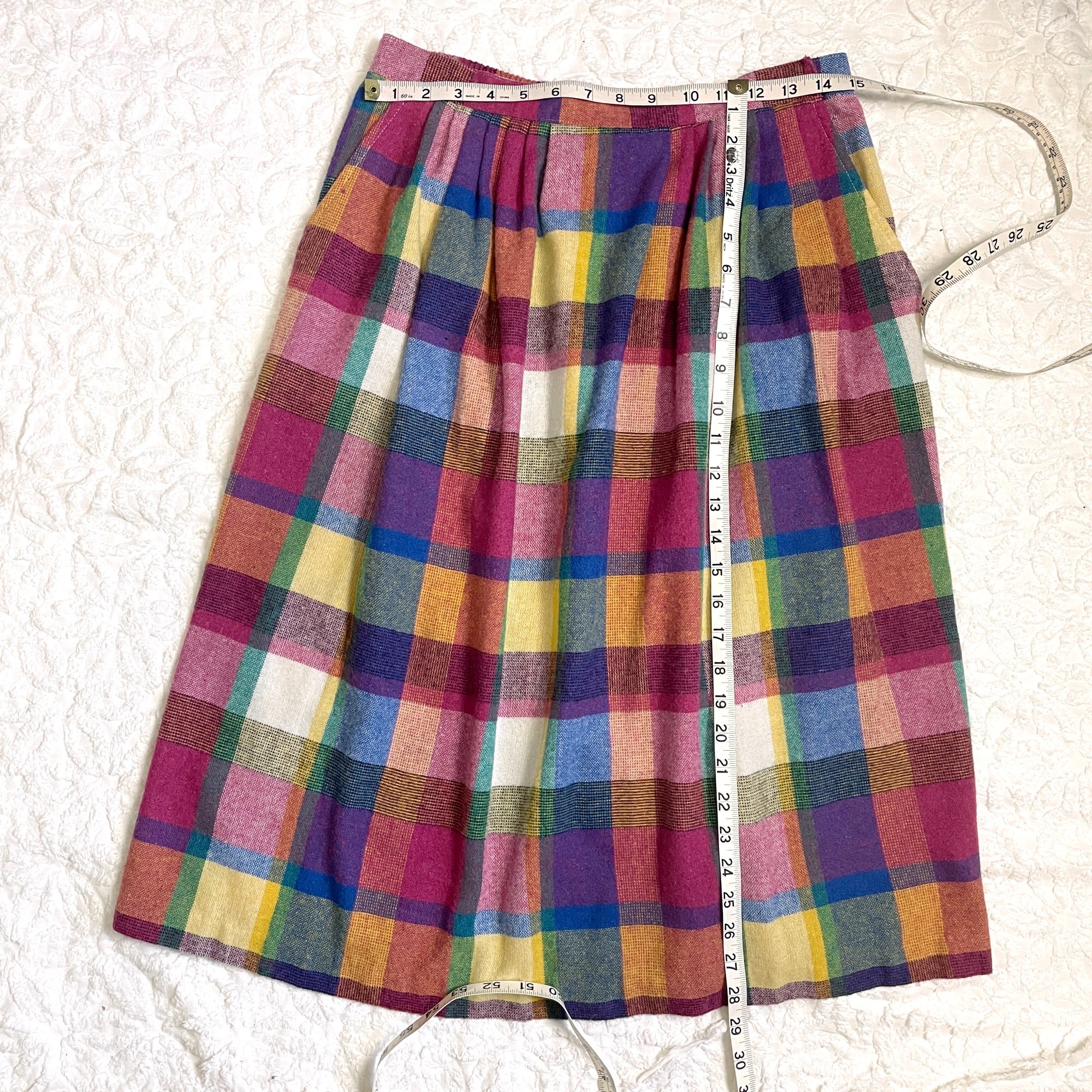 1970s preppy cheerful wool blend plaid skirt - size med-large