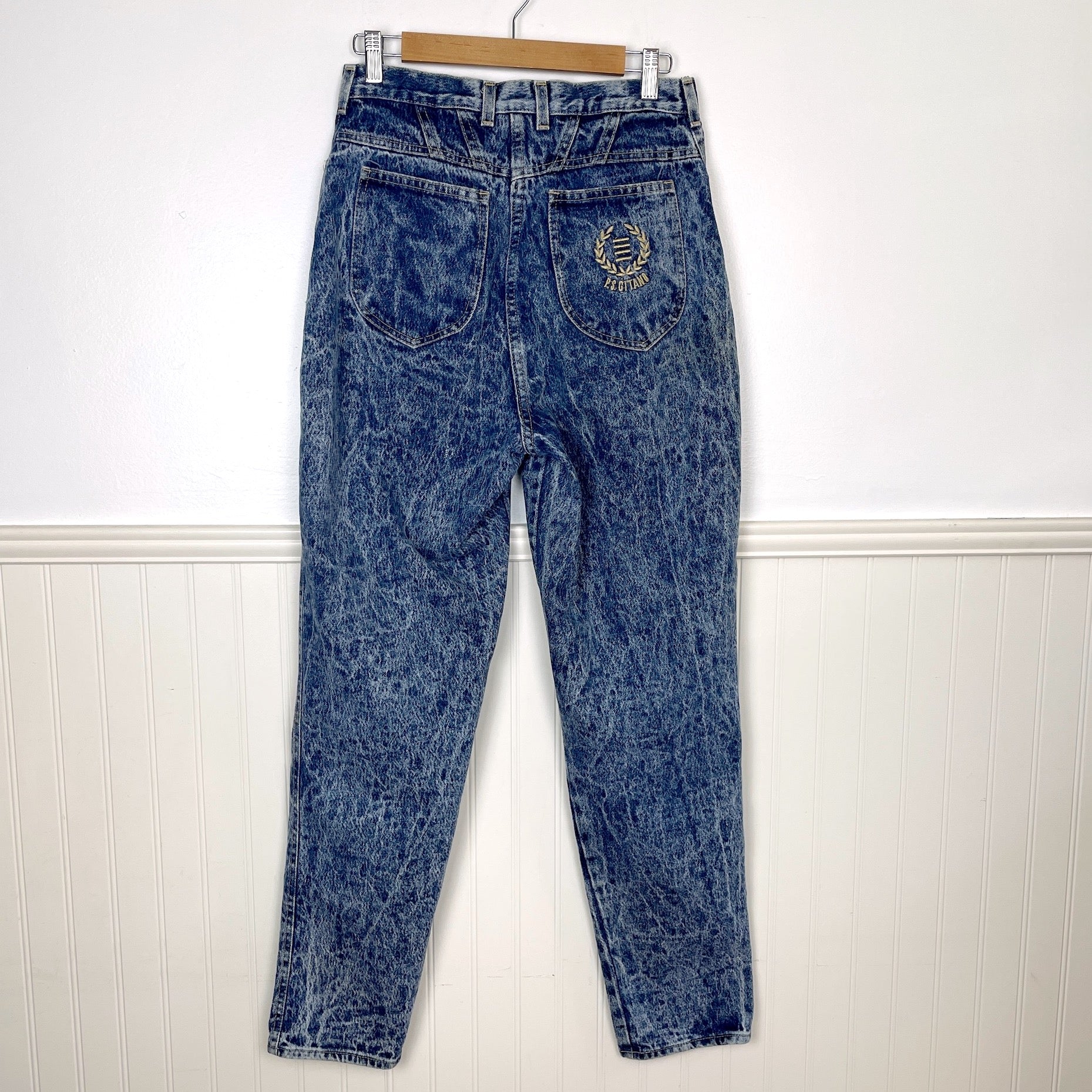 Vintage 1980s high waisted acid washed jeans by PS Gitano. Tapered legs. Embroidered logo on the back pocket. Made in the USA.