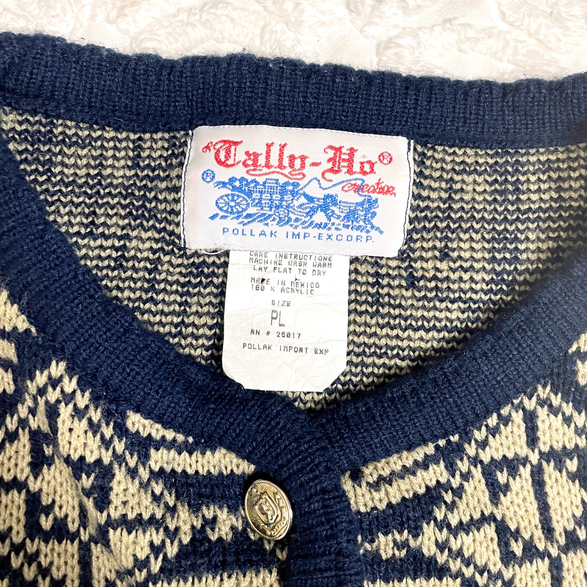1990s Tally-Ho jacquard knit sweater jacket - size PL