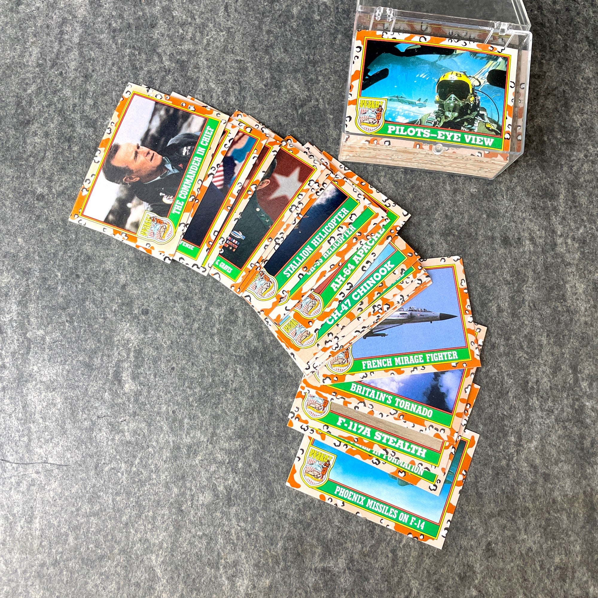 A complete set of 88 (1-88) 1991 Topps Desert Storm Trading Cards in plastic box.