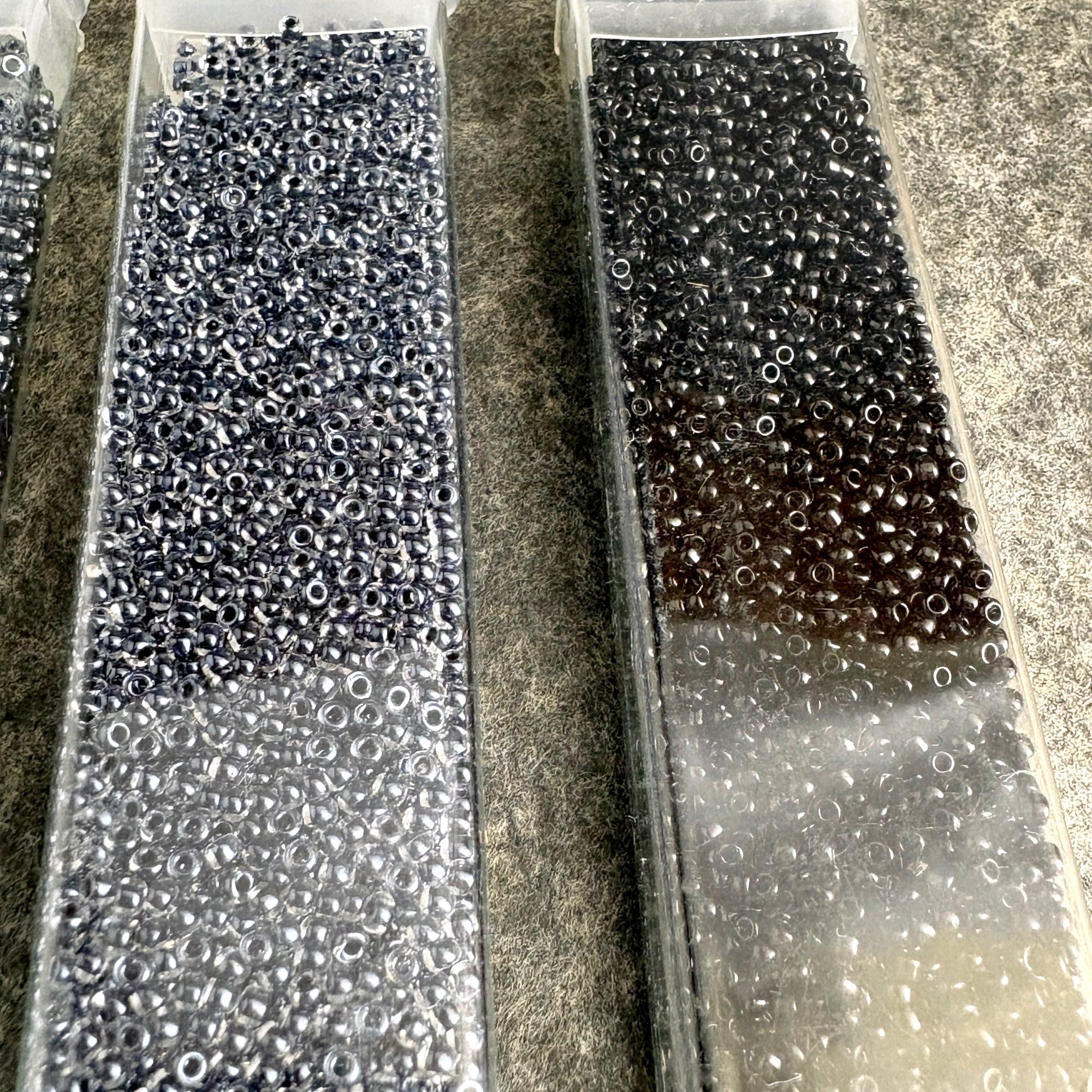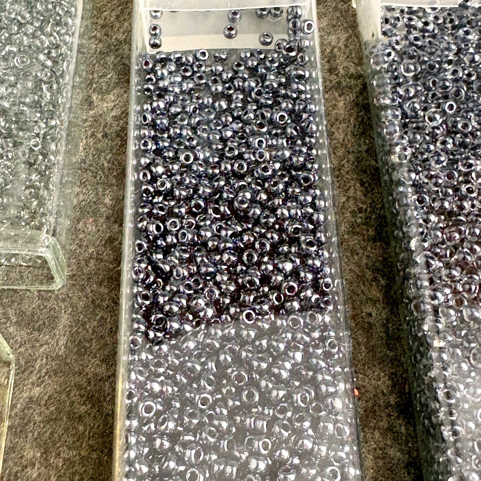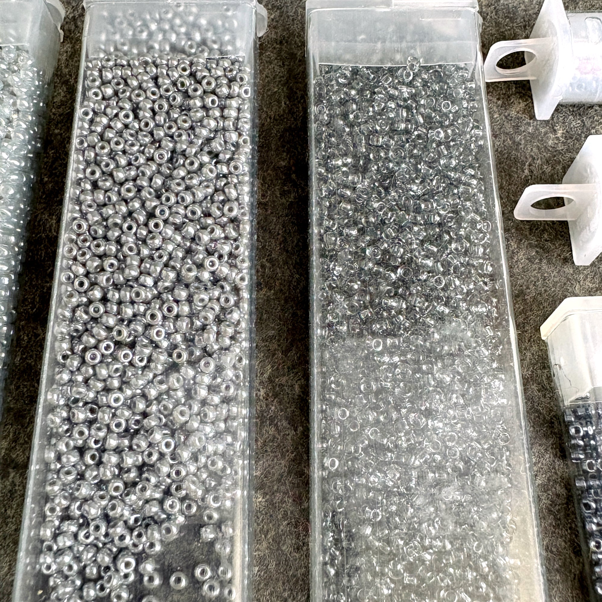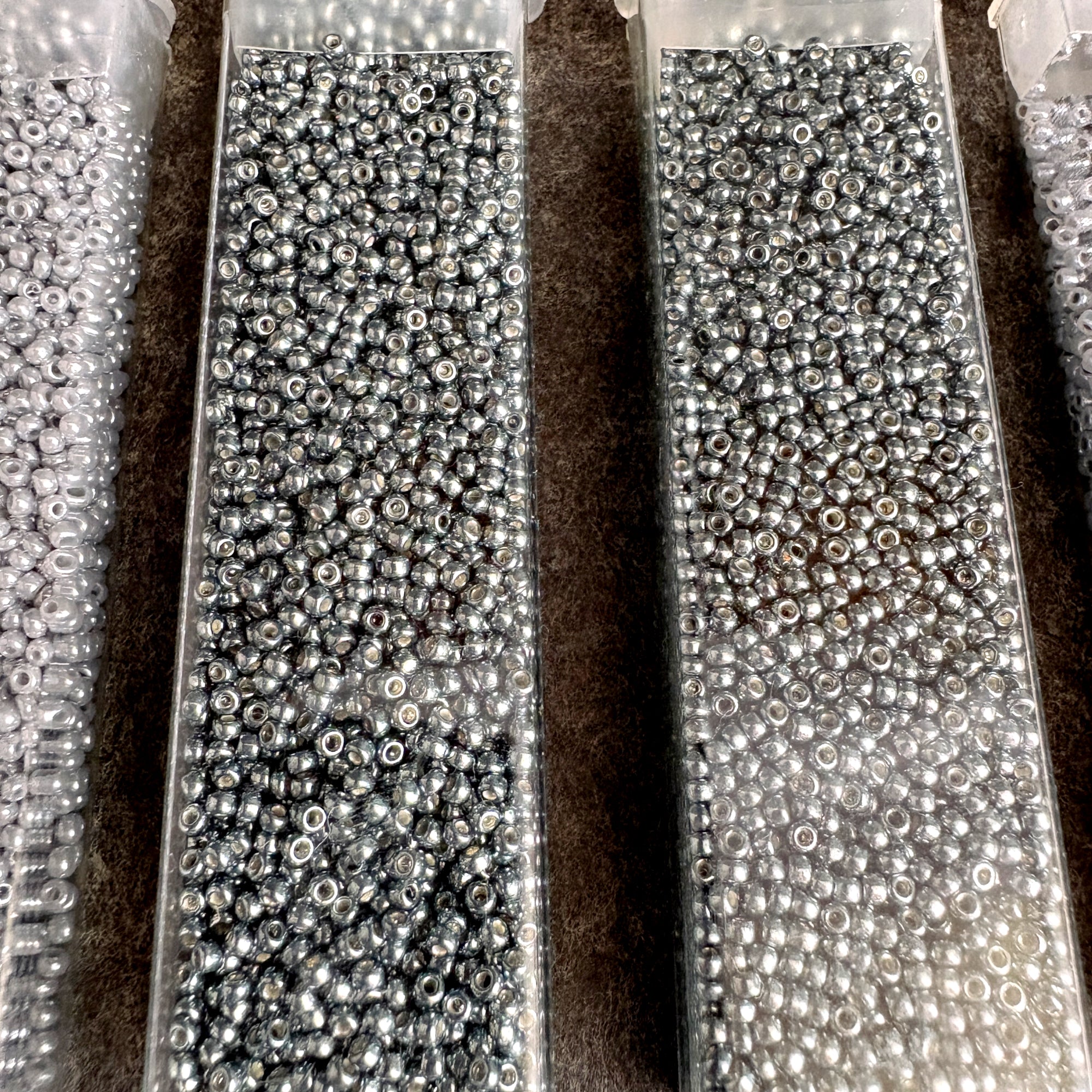 A mix of Miyuki, Toho and others that are unmarked. Most of the tubes were labeled by the reseller with their shade color and an M or T, a few tubes have their original tags, some are not completely full.