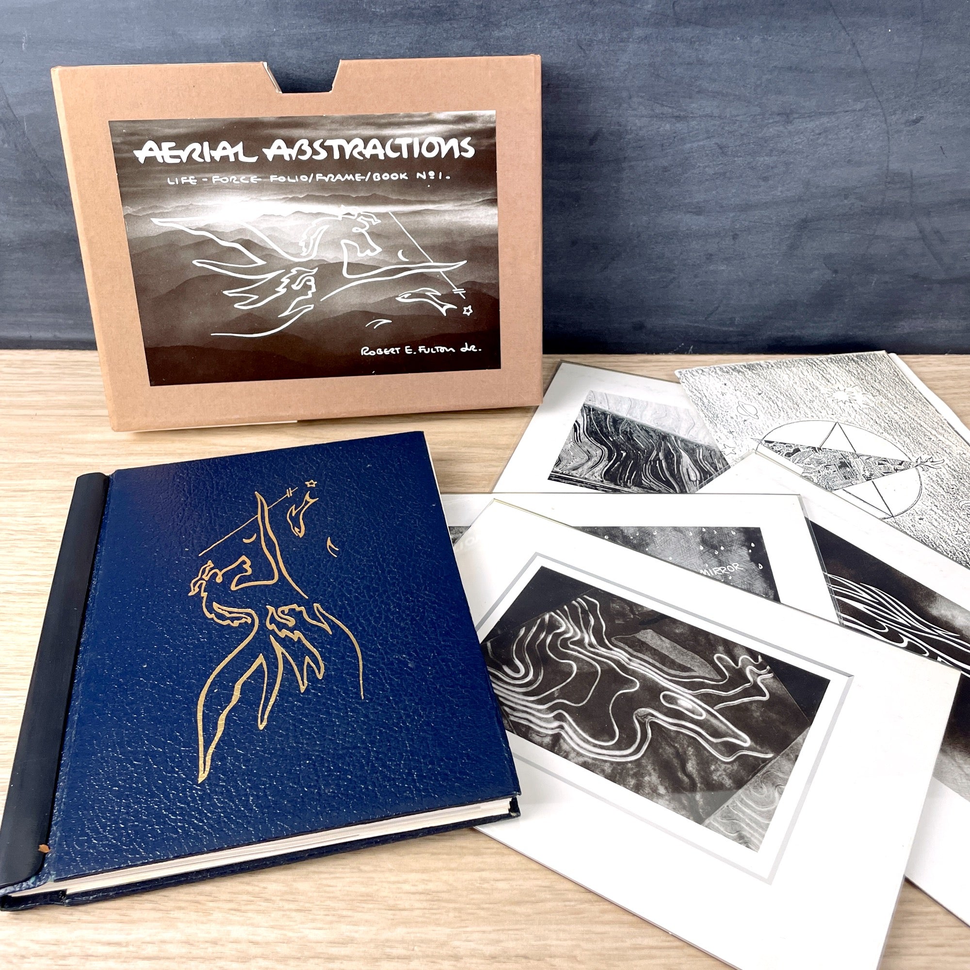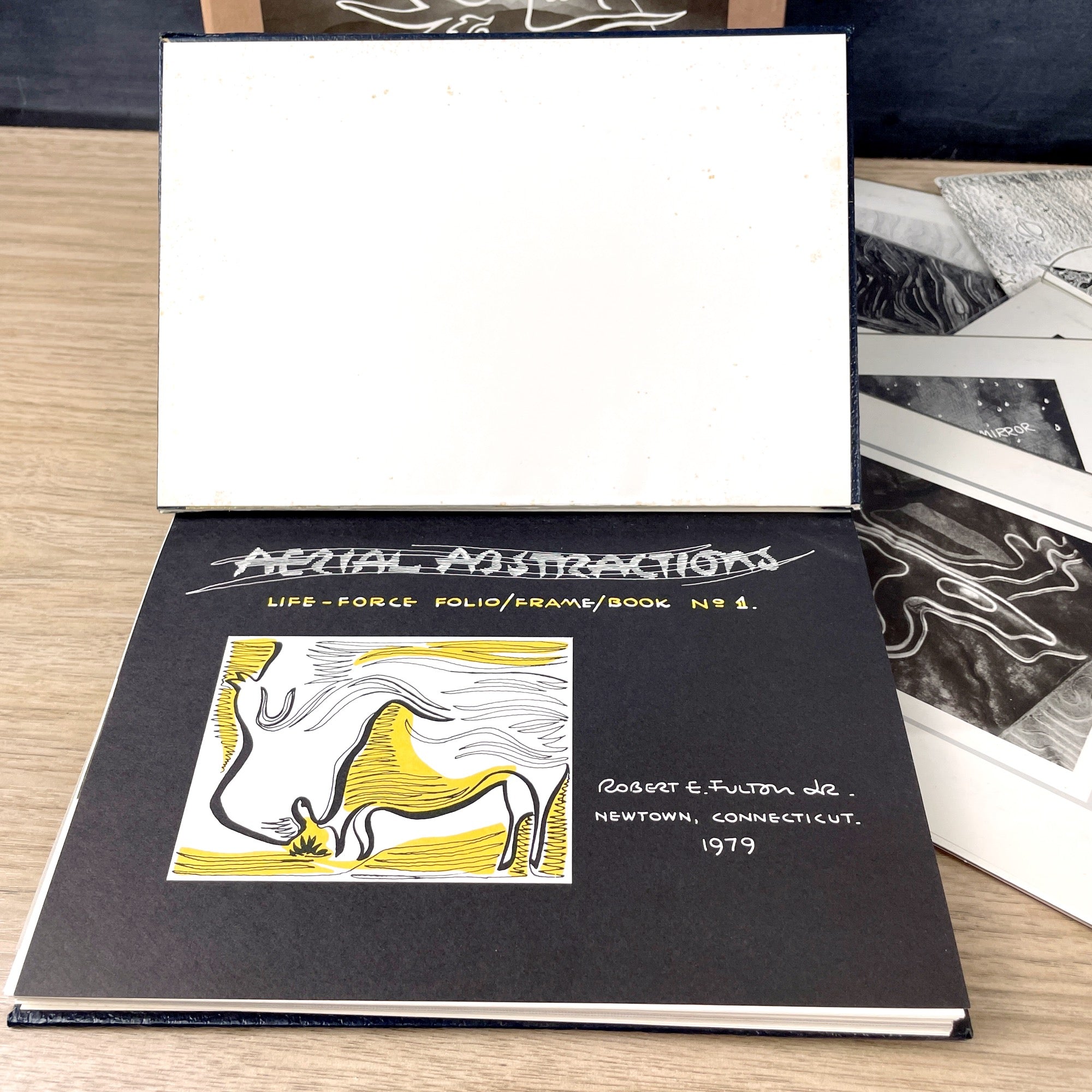"Aerial Abstractions: Life-force folio/frame/book No. 1" by Robert E. Fulton Jr.. Newtown, CT. 1979. Artist's slip case collection with book of photographs, illustrations, and thoughts plus 4 framed images.