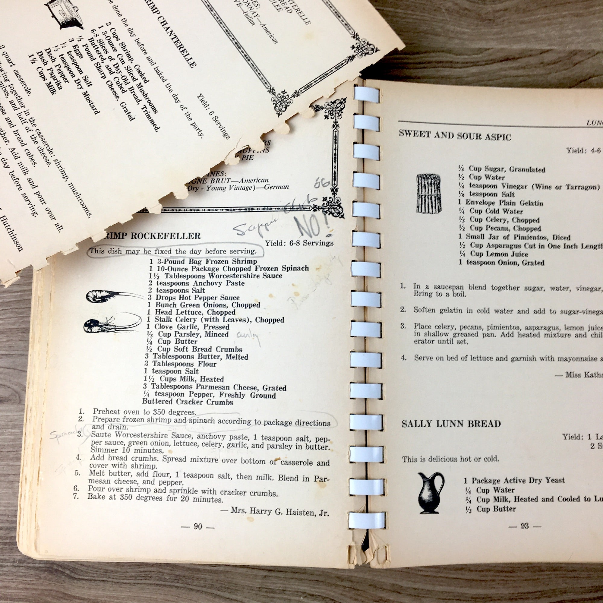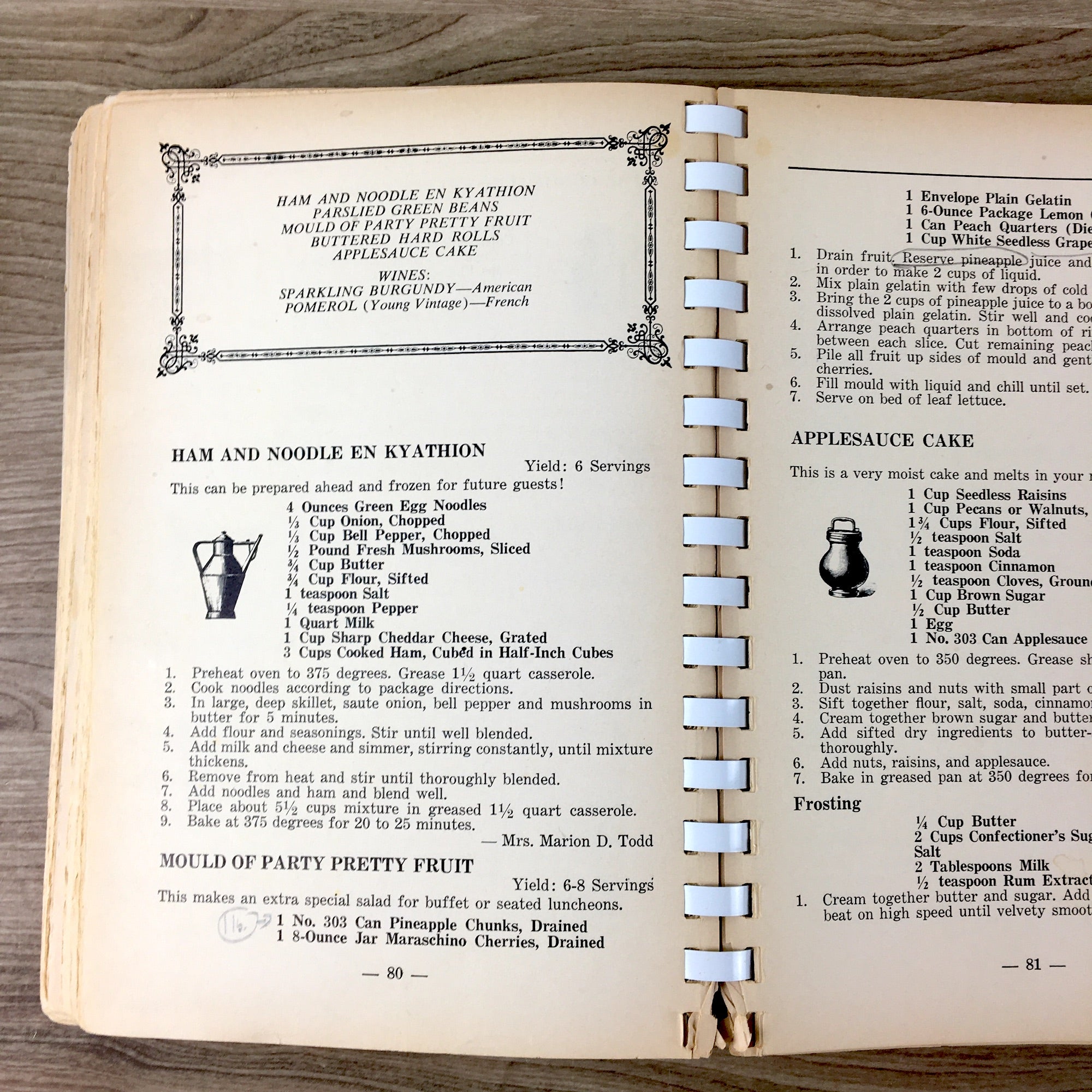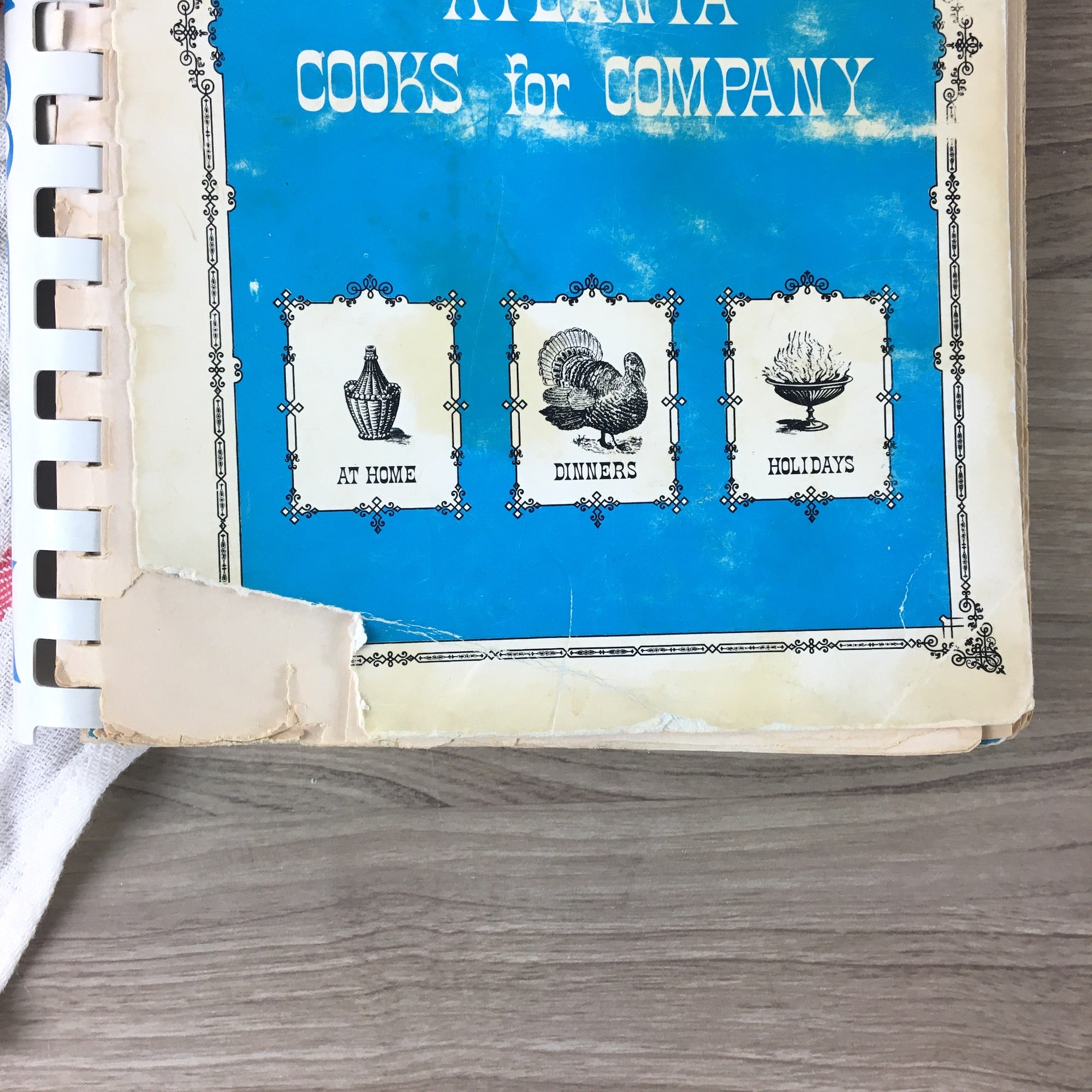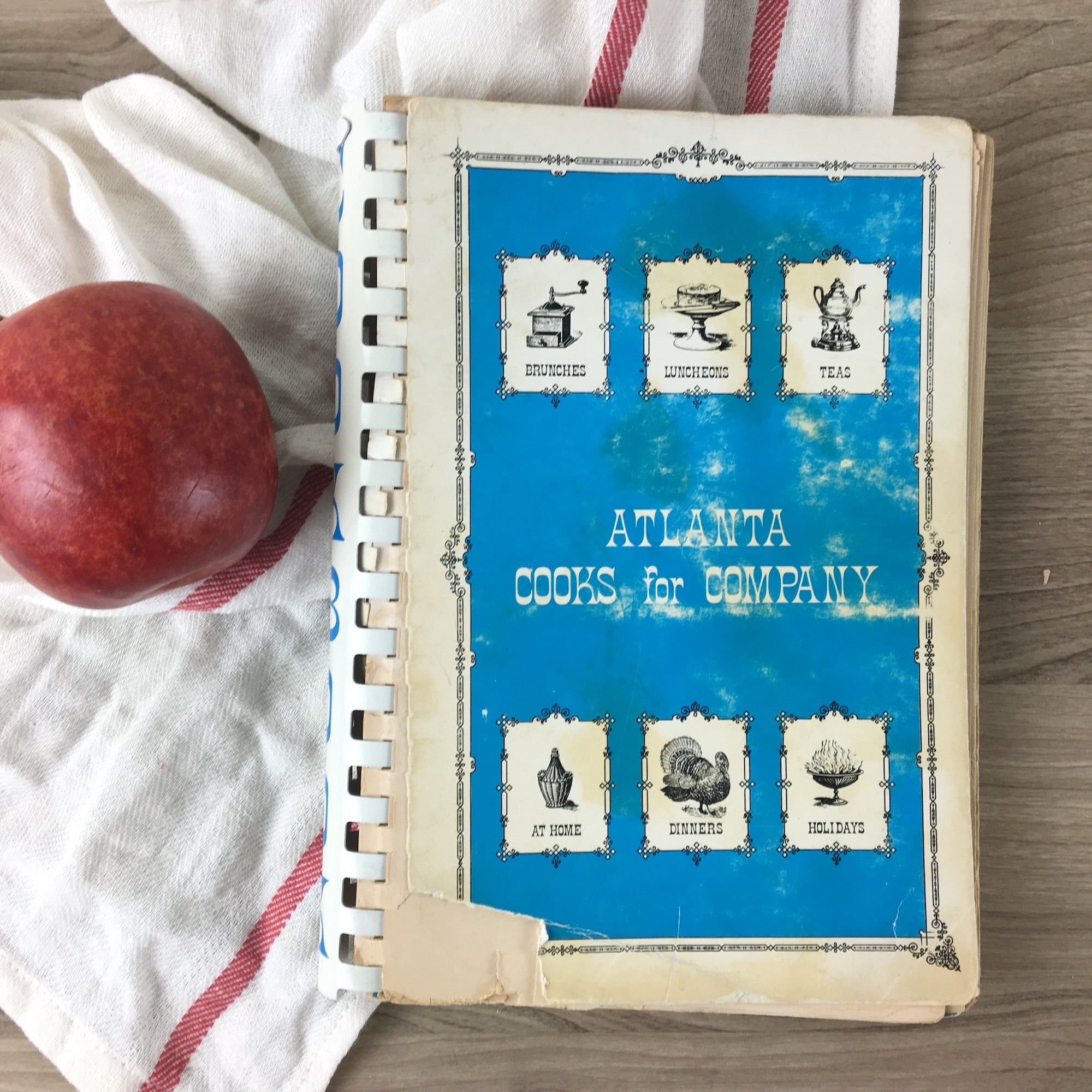 "Atlanta Cooks for Company," a community cookbook from the Junior Associates of the Atlanta Music Club. 1968 copyright, 1971 fourth printing. Printed by the Conger Printing Company of Atlanta, GA.