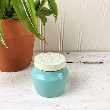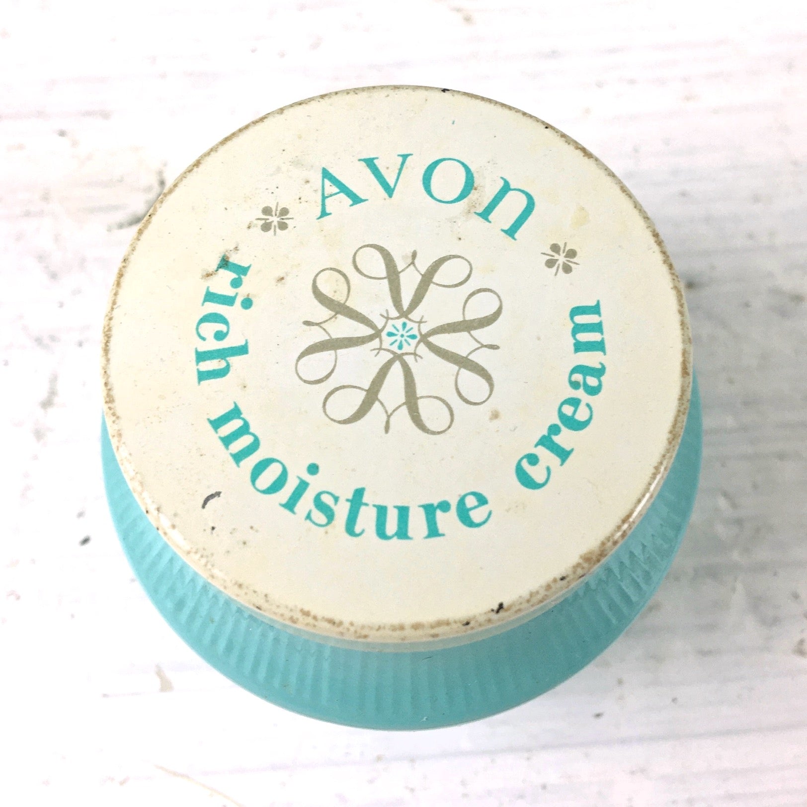 Avon rich moisture cream turquoise blue jar - vintage packaging
