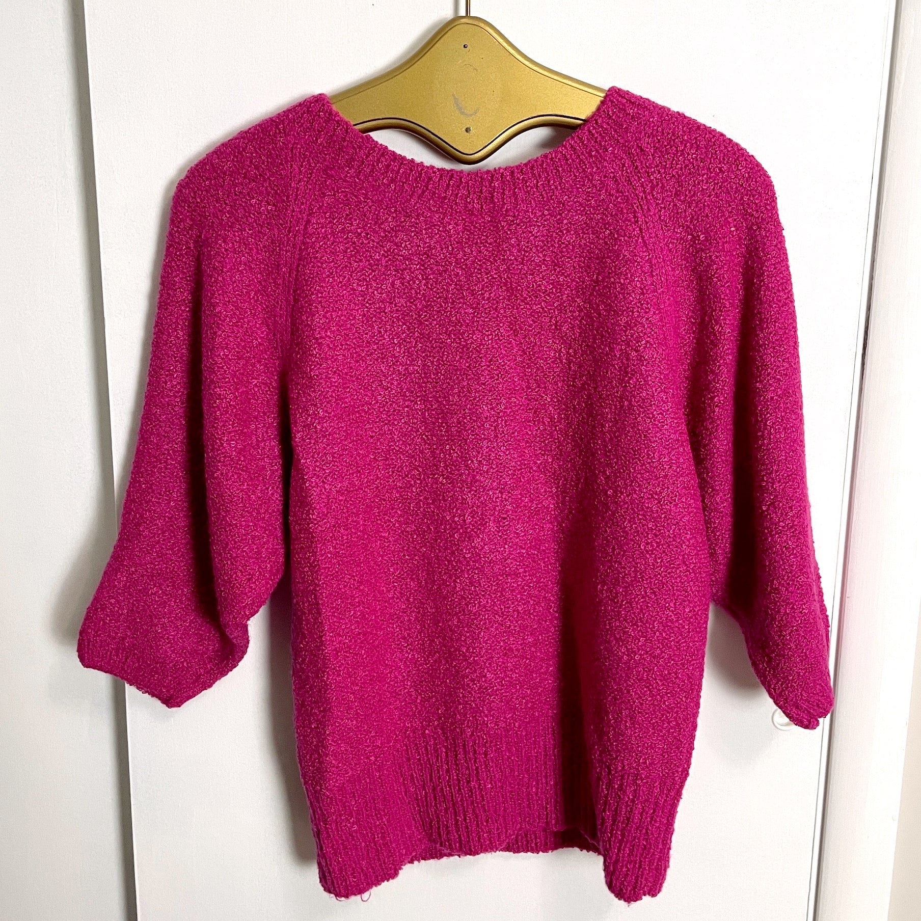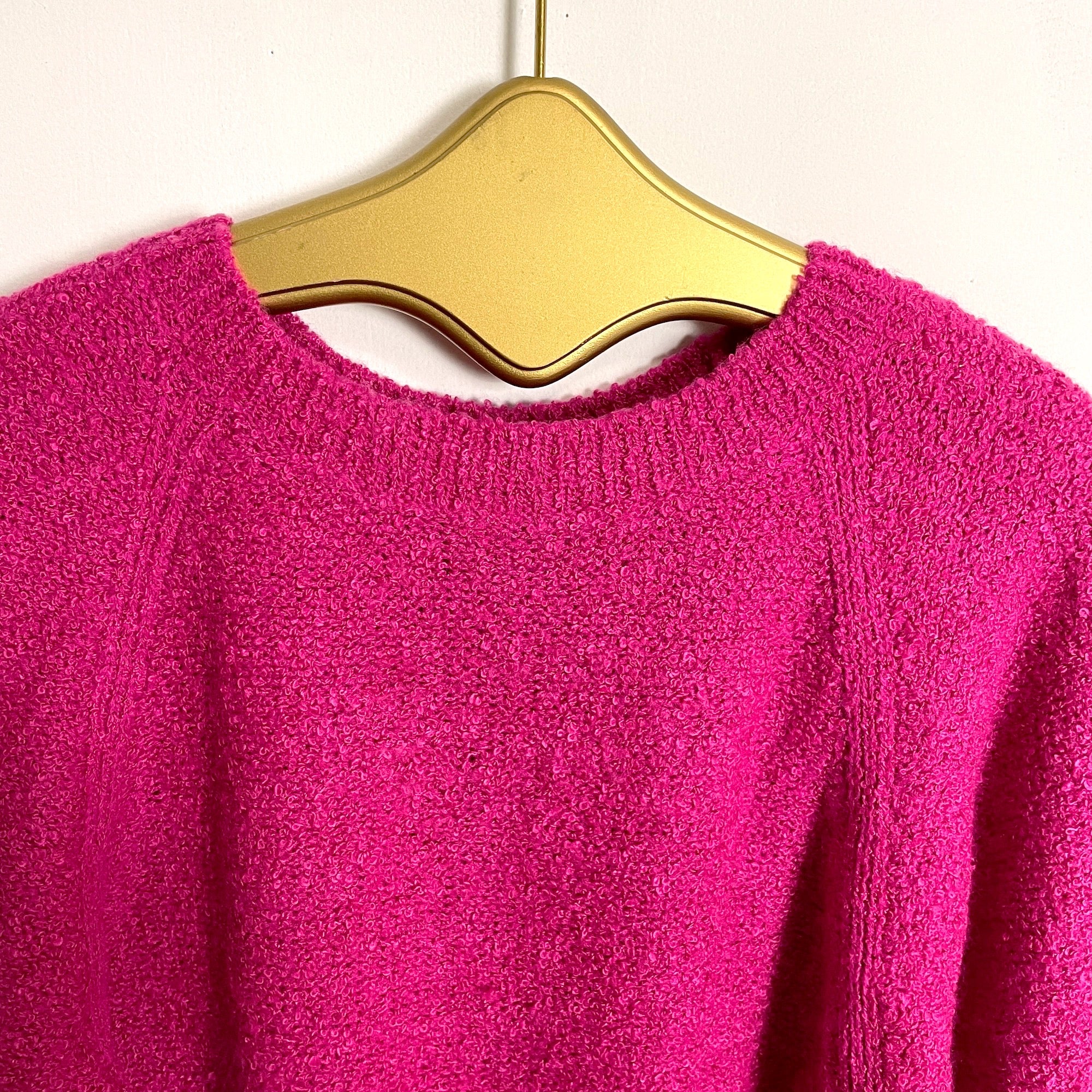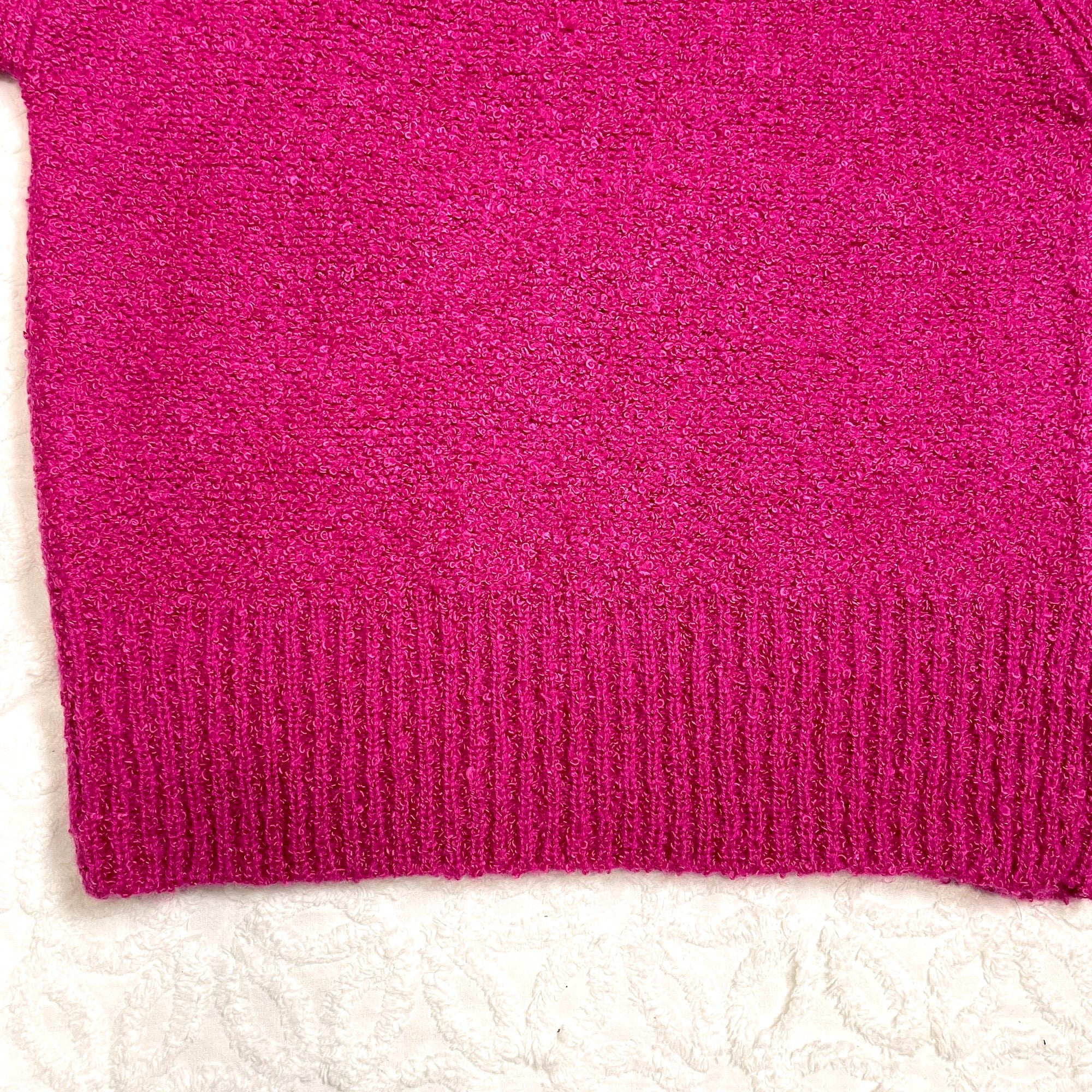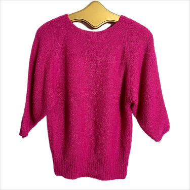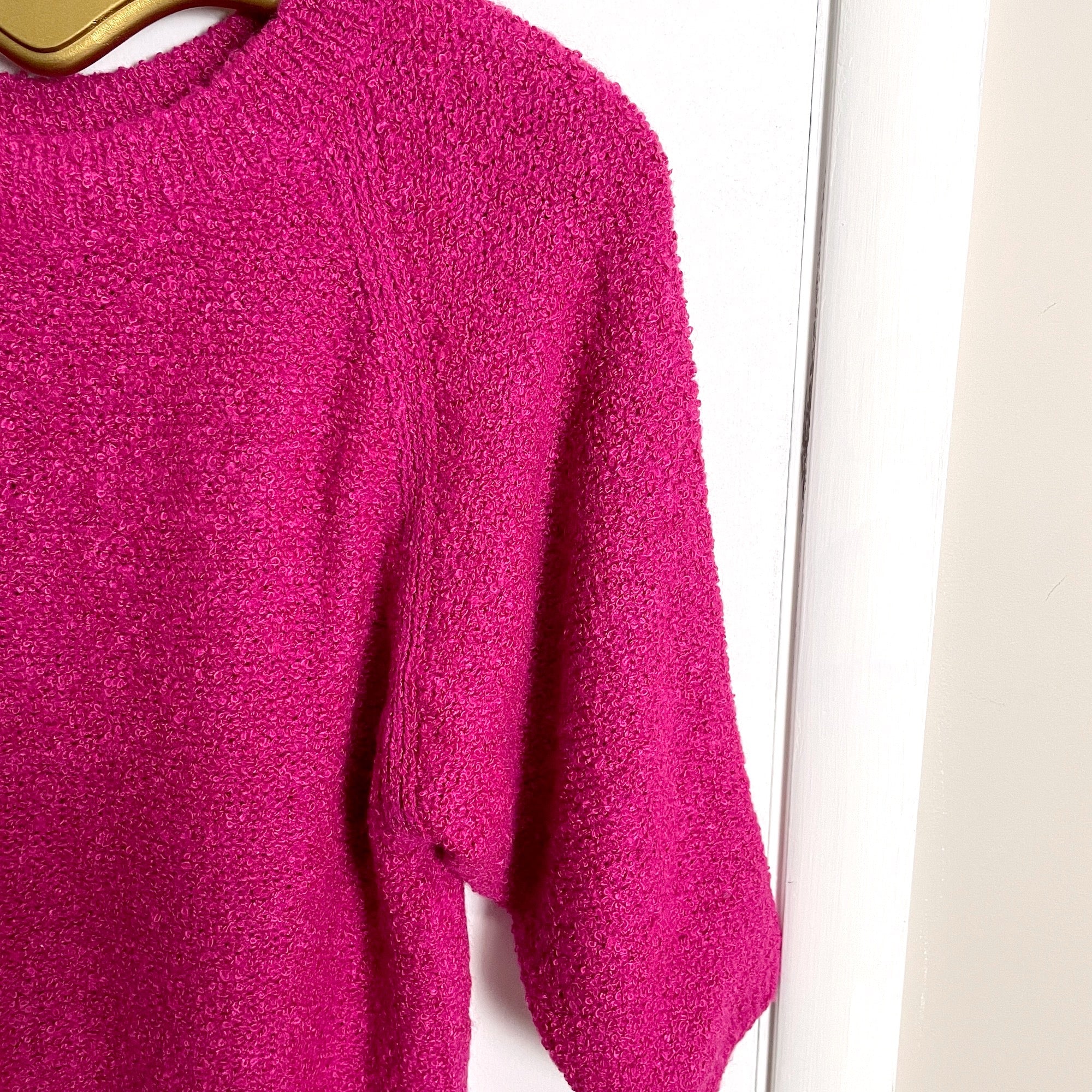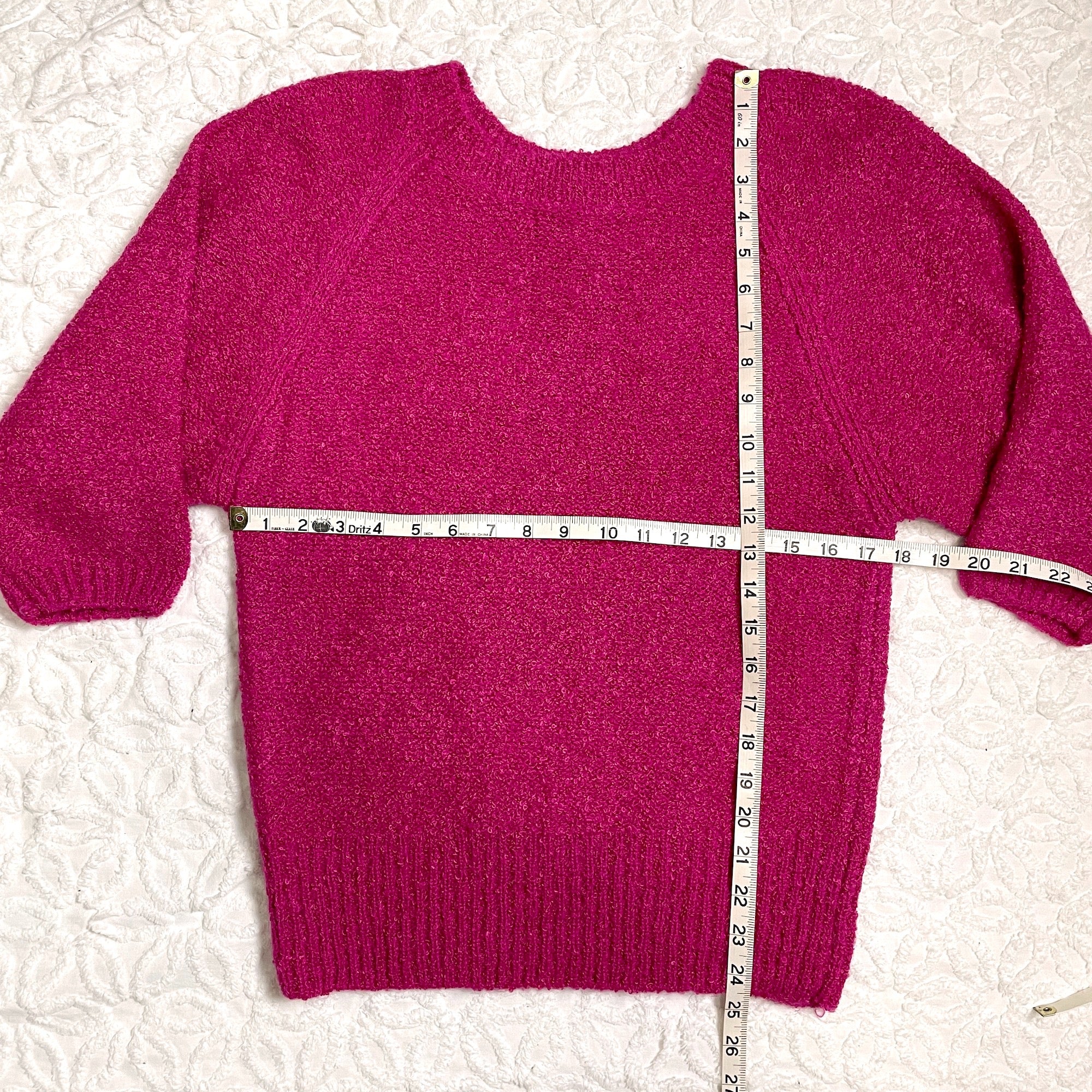 1980s boucle knit fuchsia short sleeve pullover sweater - size L