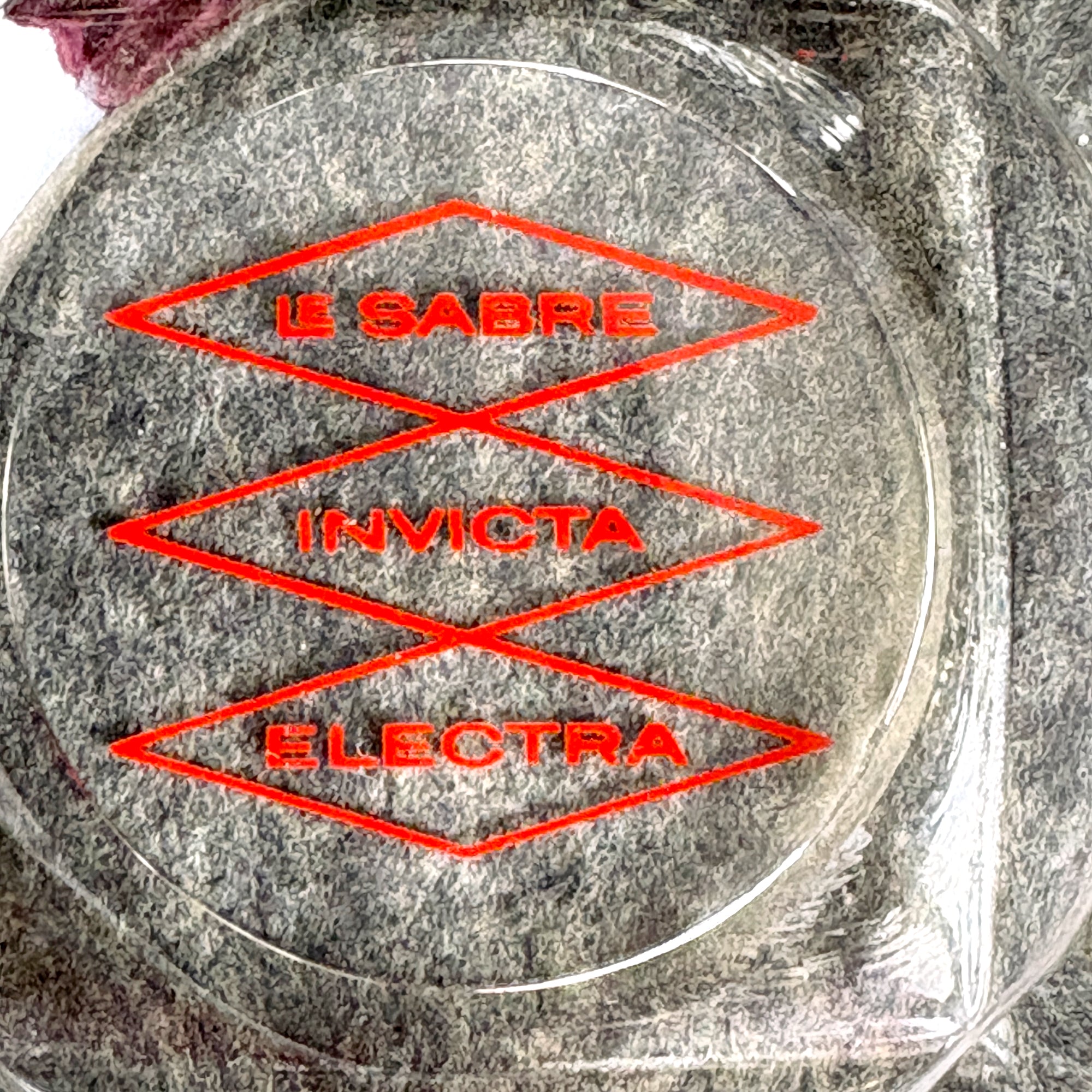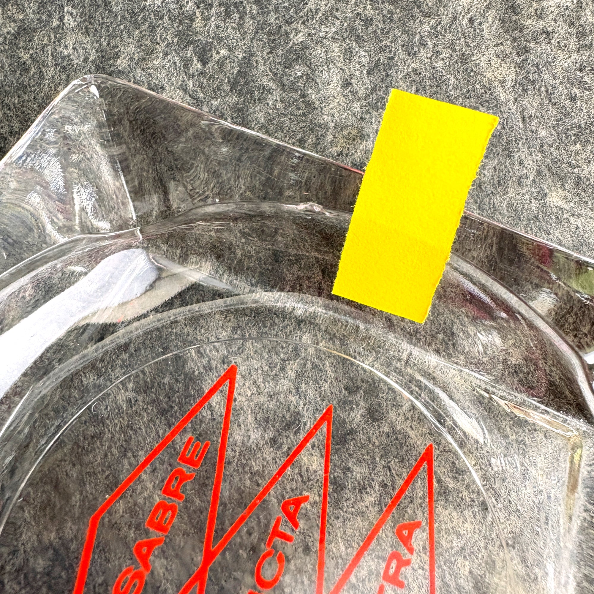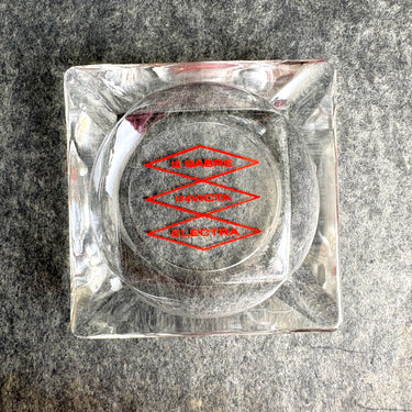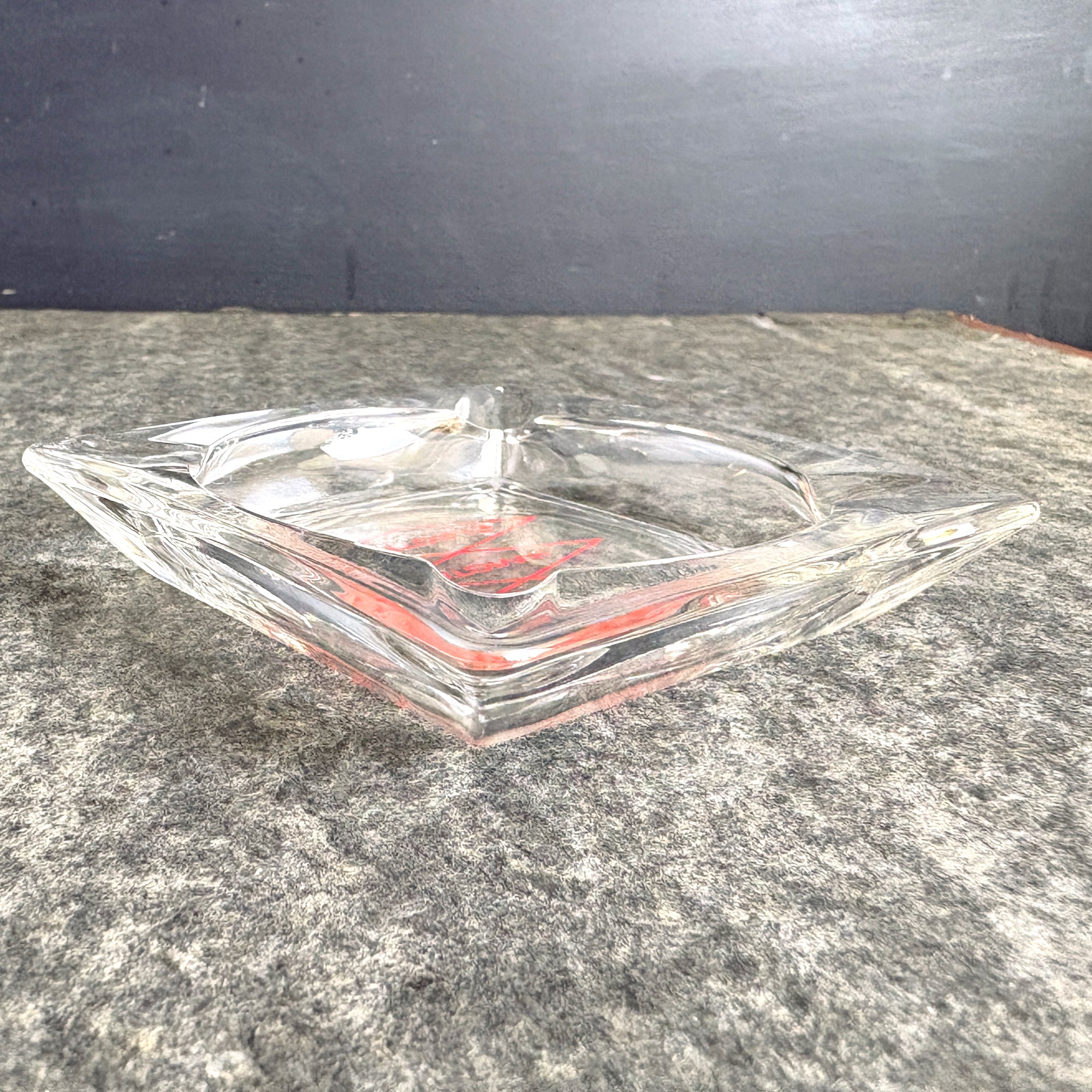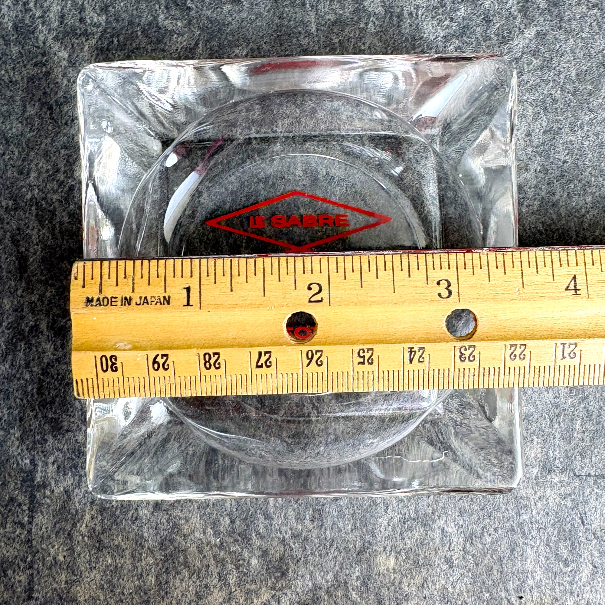 Vintage Buick square clear glass advertising ashtray. Has a red decal on the base with three diamond shapes, each with the name of one of the iconic Buick lines - Le Sabre, Invicta and Electra. A great piece of promo memorabilia for Buick enthusiasts and classic car collectors.