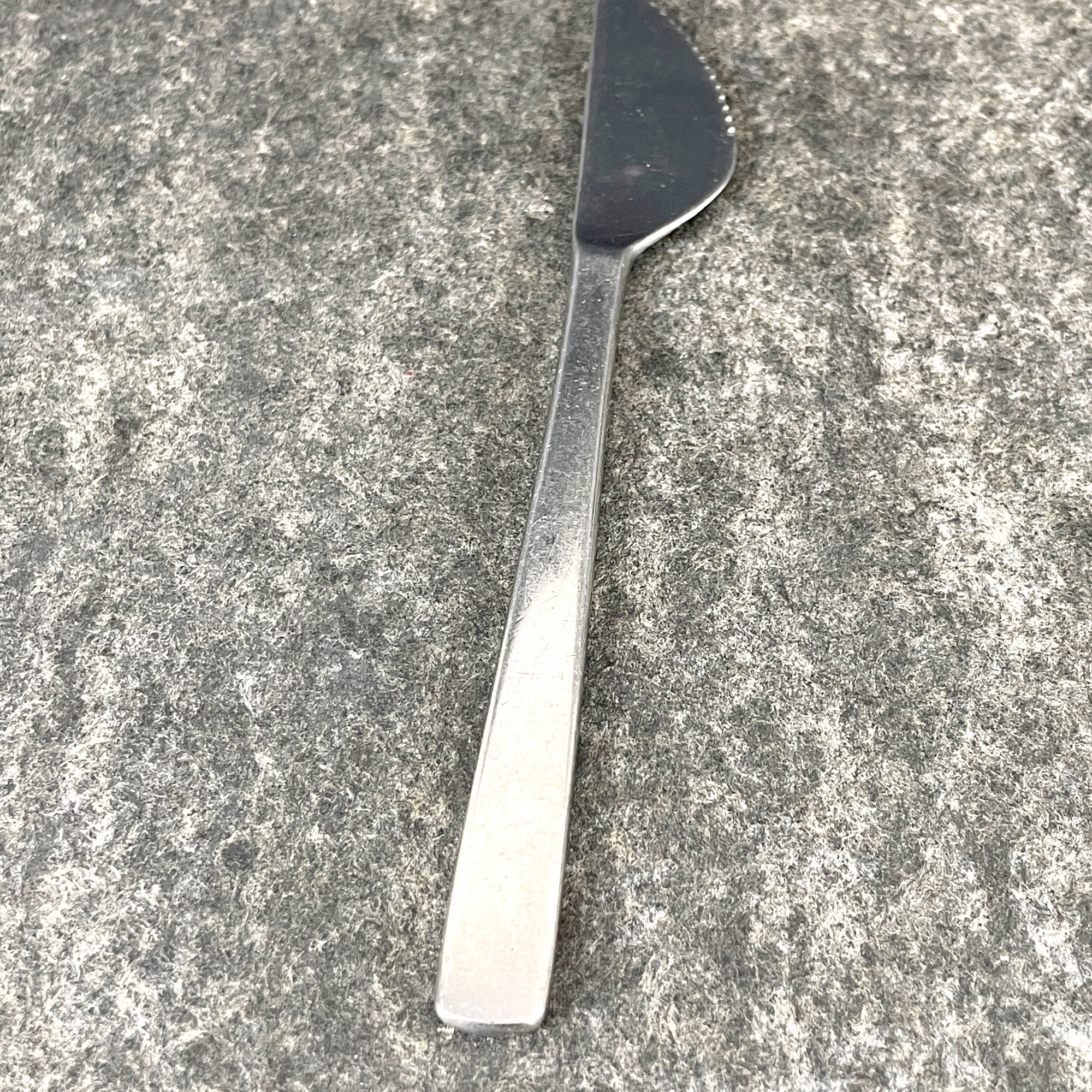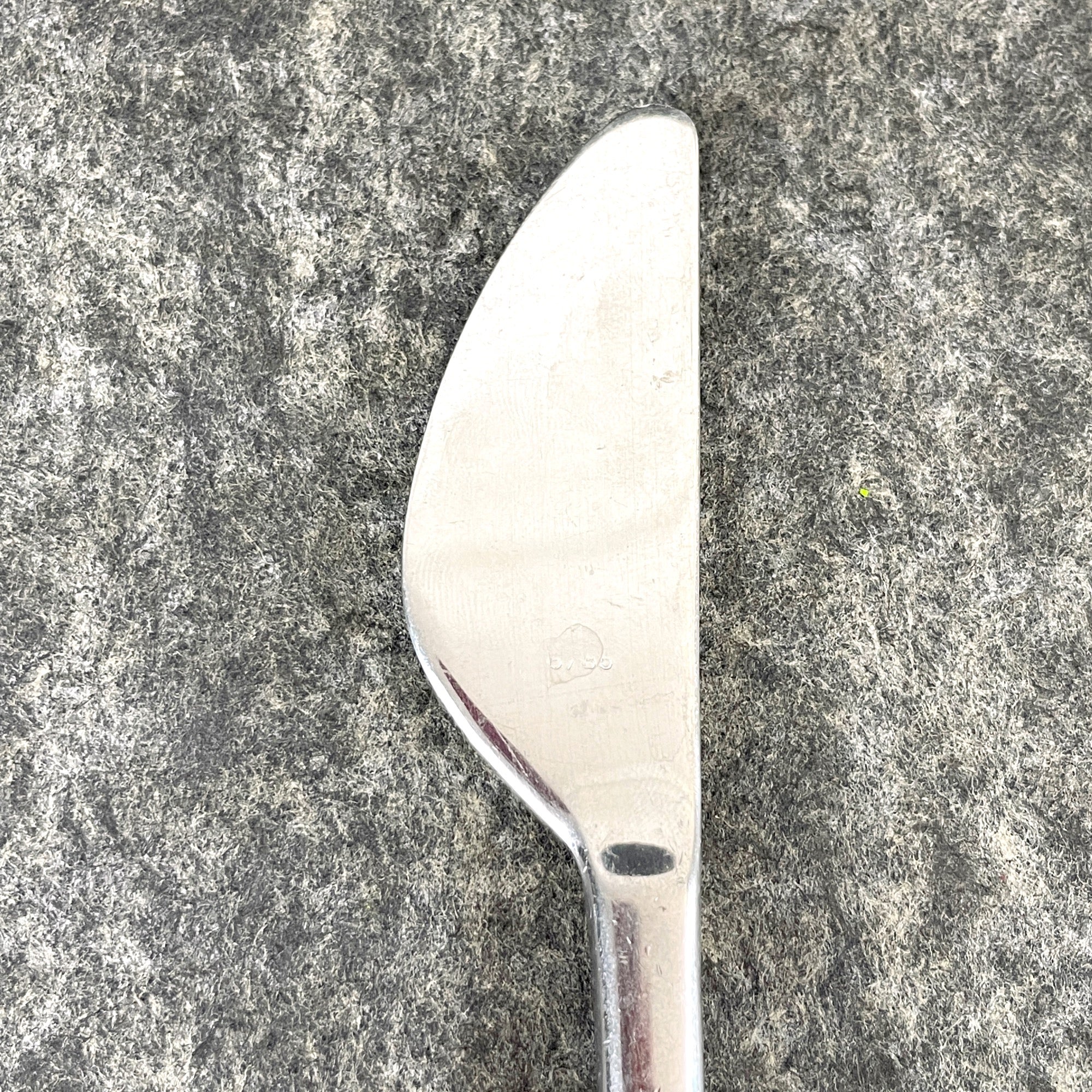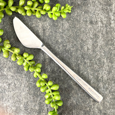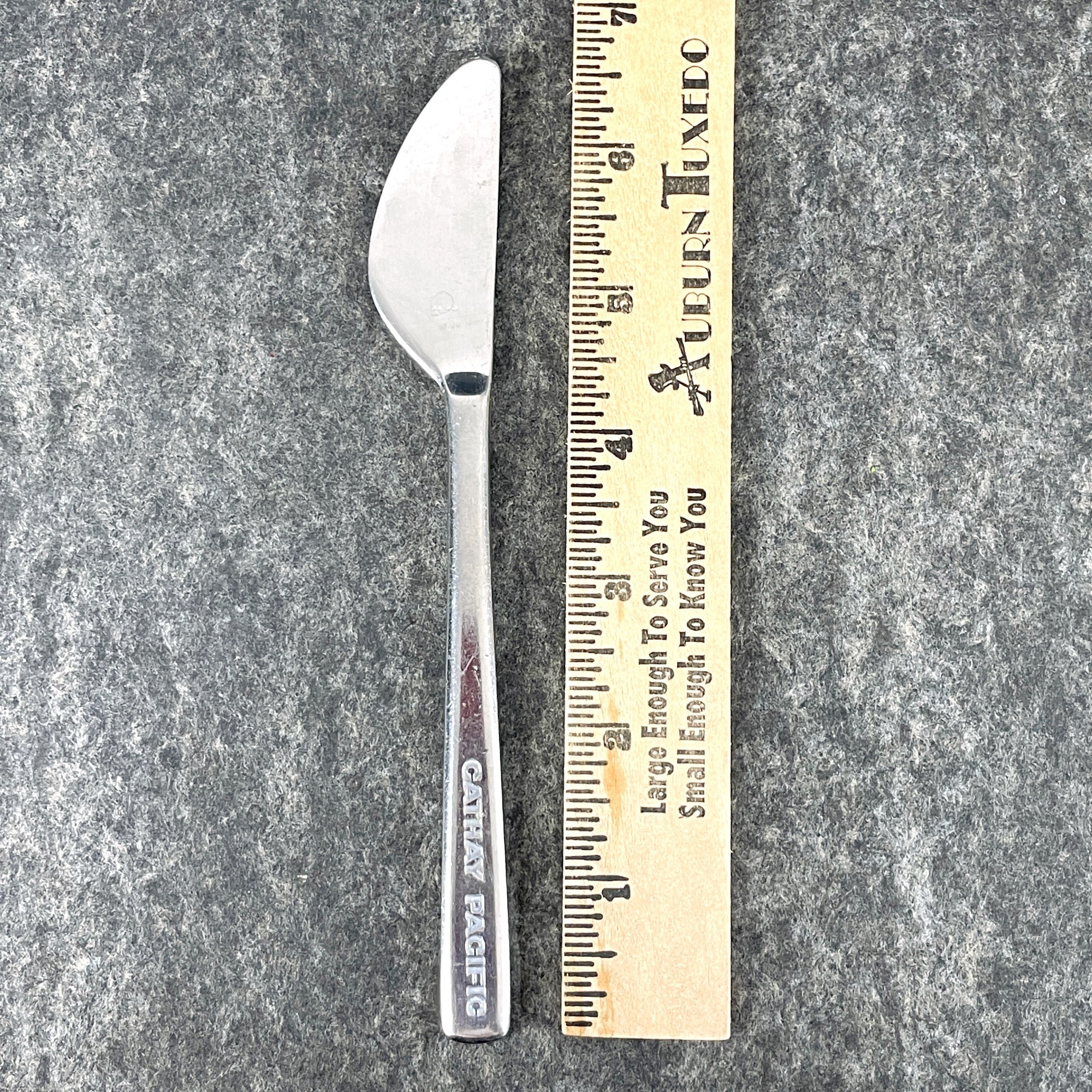 Vintage 1980s Cathay Pacific Airlines stainless steel passenger dinner knife. Excellent for use as a dip spreader or butter knife