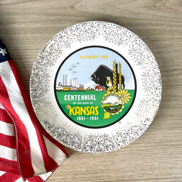 Kansas Centennial souvenir plate - 1960s road trip souvenir