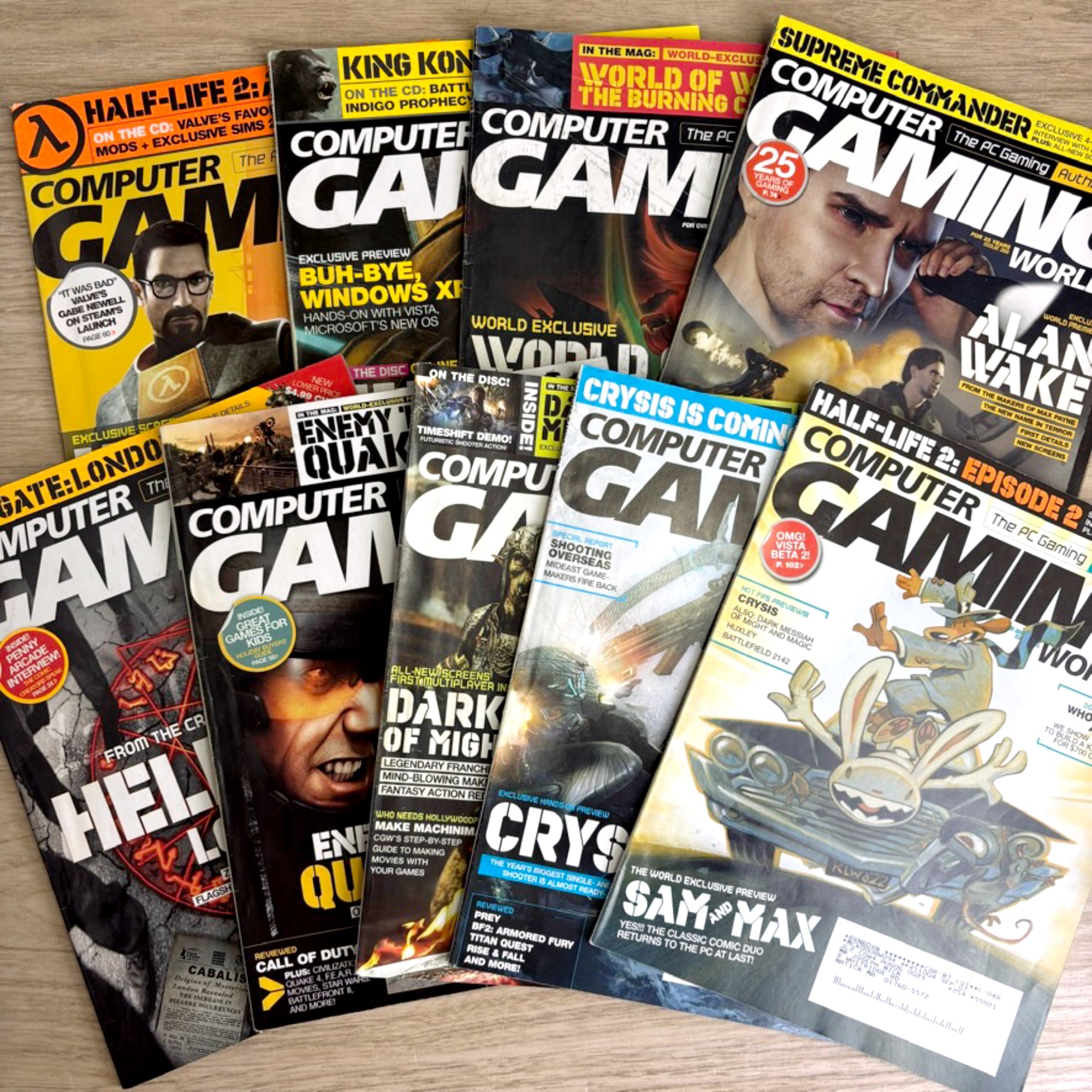 9 Computer Gaming World Magazines 2005–2006 - no disks - Half-Life 2 WoW Quake Crysis