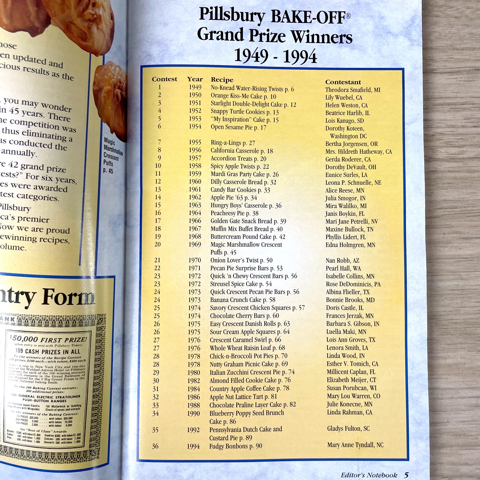 The Pillsbury Bake-Off has winning recipes from 1949 to 1994. 90 pages.