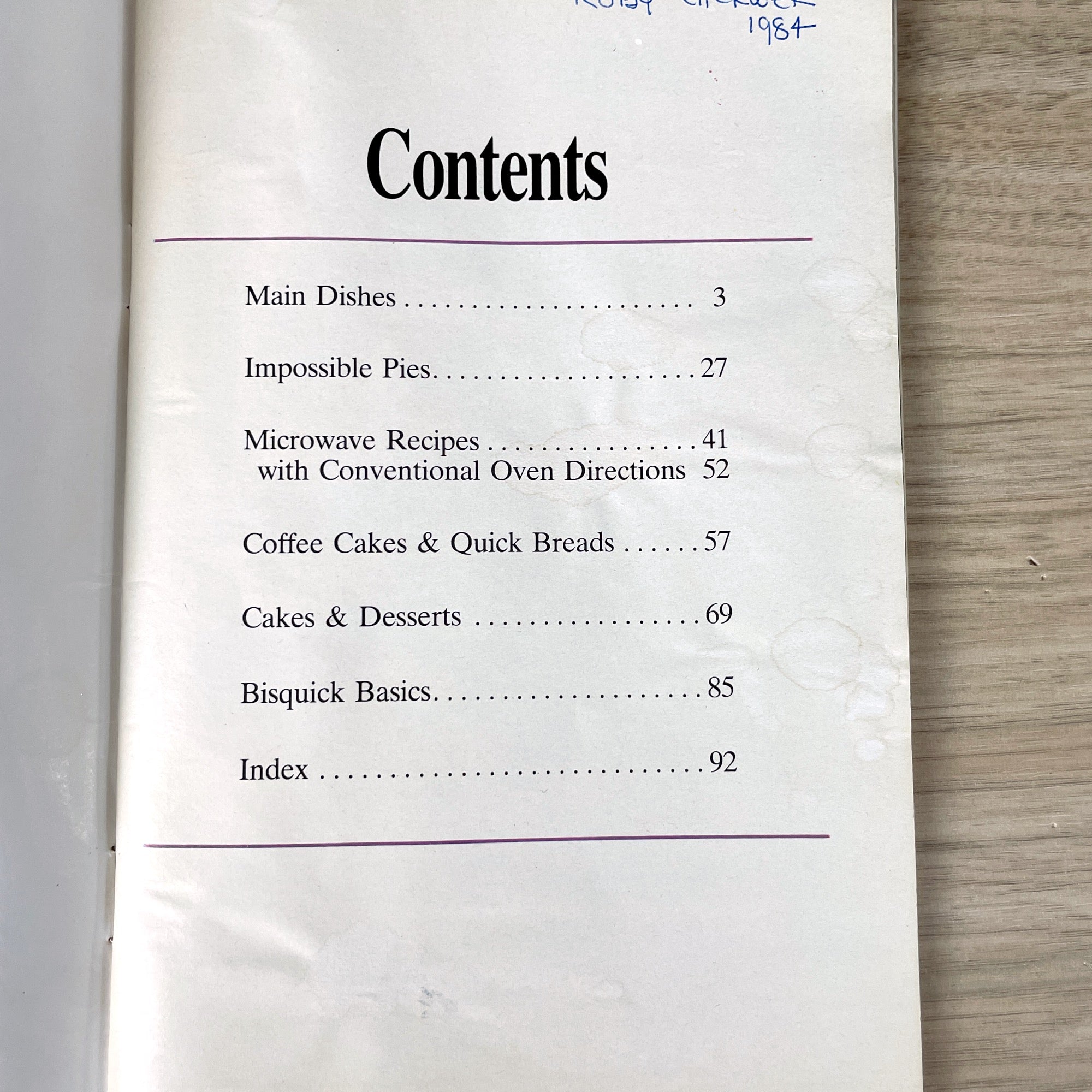 "the Best of Bisquick" includes recipes for: main dishes; impossible pies; microwave recipes with conventional oven directions; coffee cakes & quick breads; cakes & desserts and Bisquick Basics (pancakes, waffles, crepes, etc). 96 pages