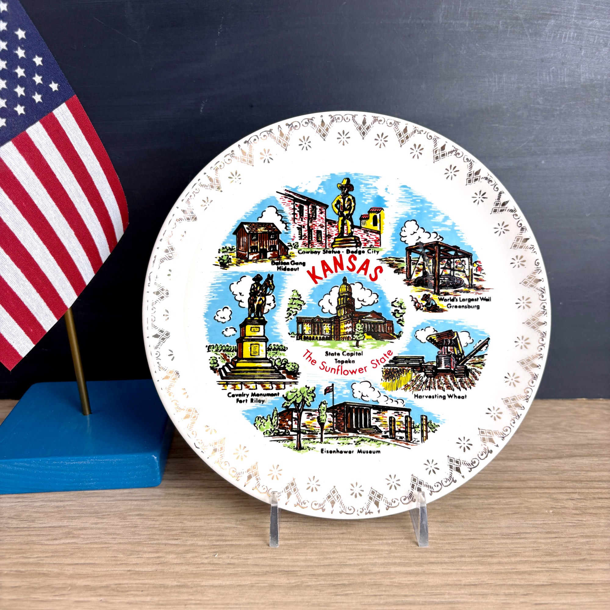 Kansas souvenir plate – “The Sunflower State” mid century collectible decor