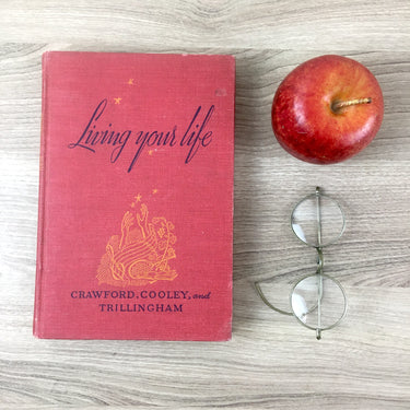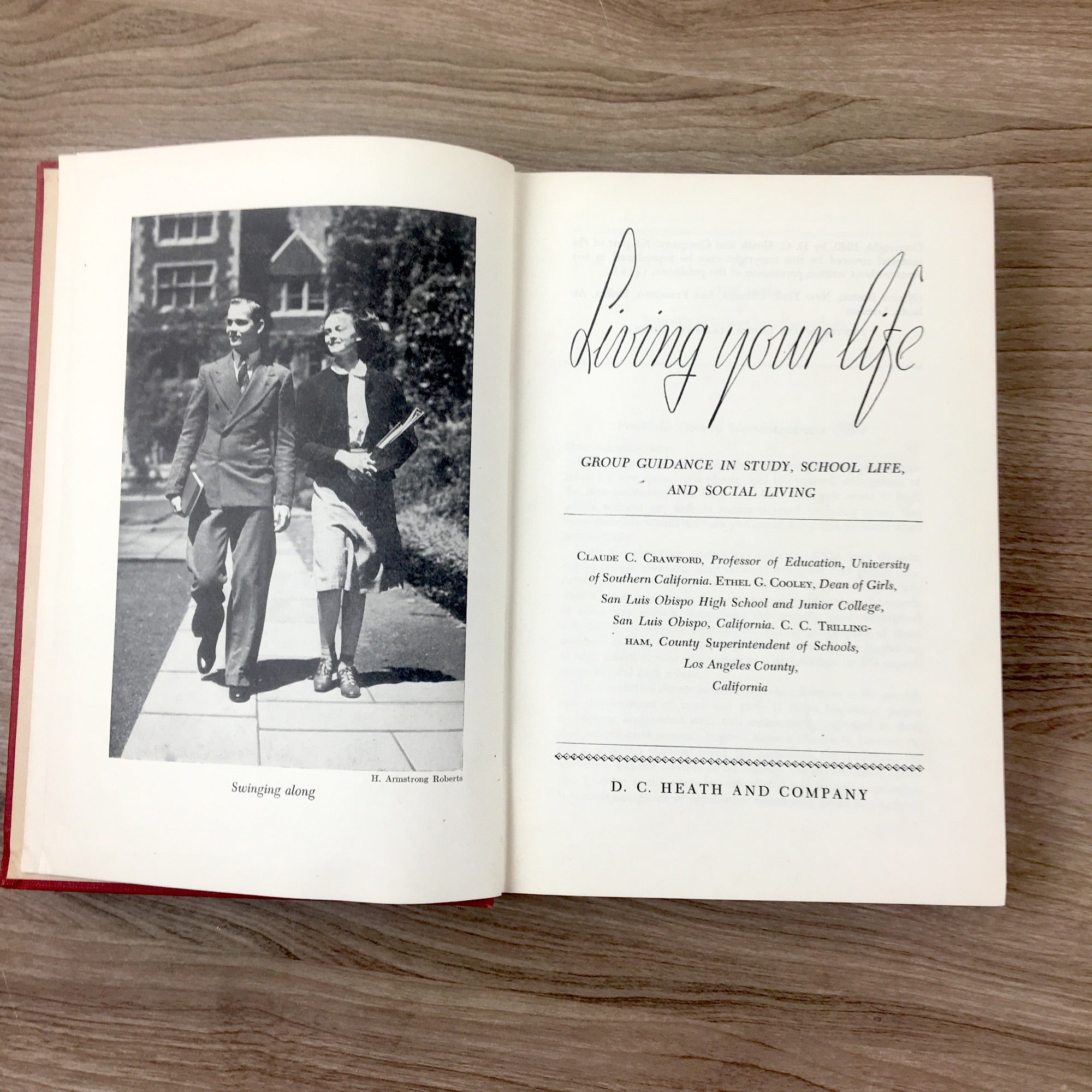 "Living Your Life: Group Guidance in Study, School Life, and Social Living" by Claude C. Crawford, Ethel G. Cooley and C. C. Trillingham. 1940 first edition. D. C. Heath and Company. Cloth hardcover. Black and white photographs and illustrations