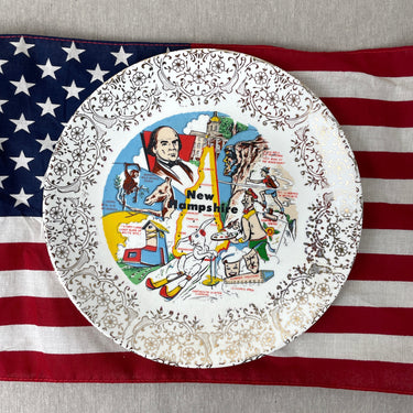Vintage 1950s New Hampshire decorative souvenir plate, likely from the 1950s.
