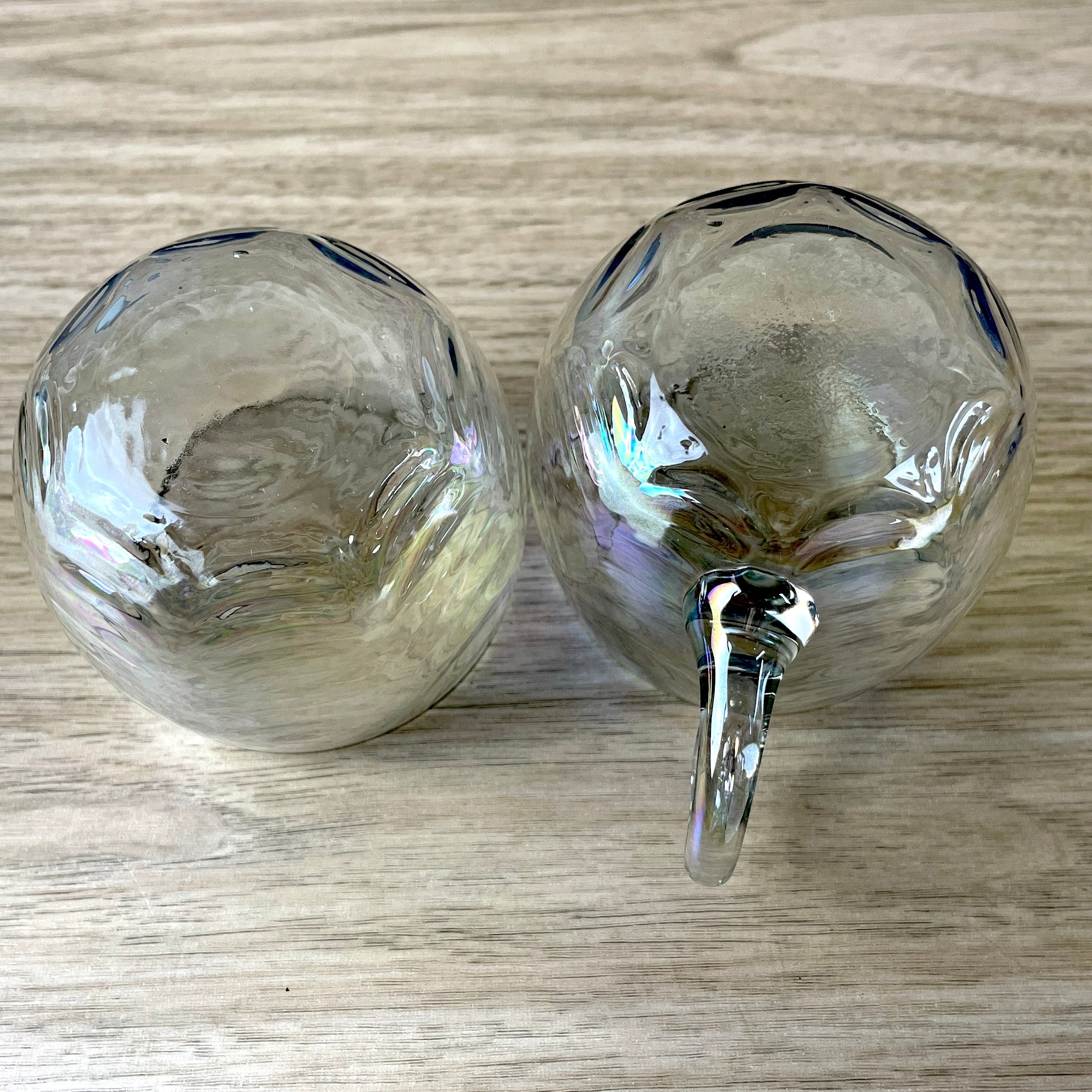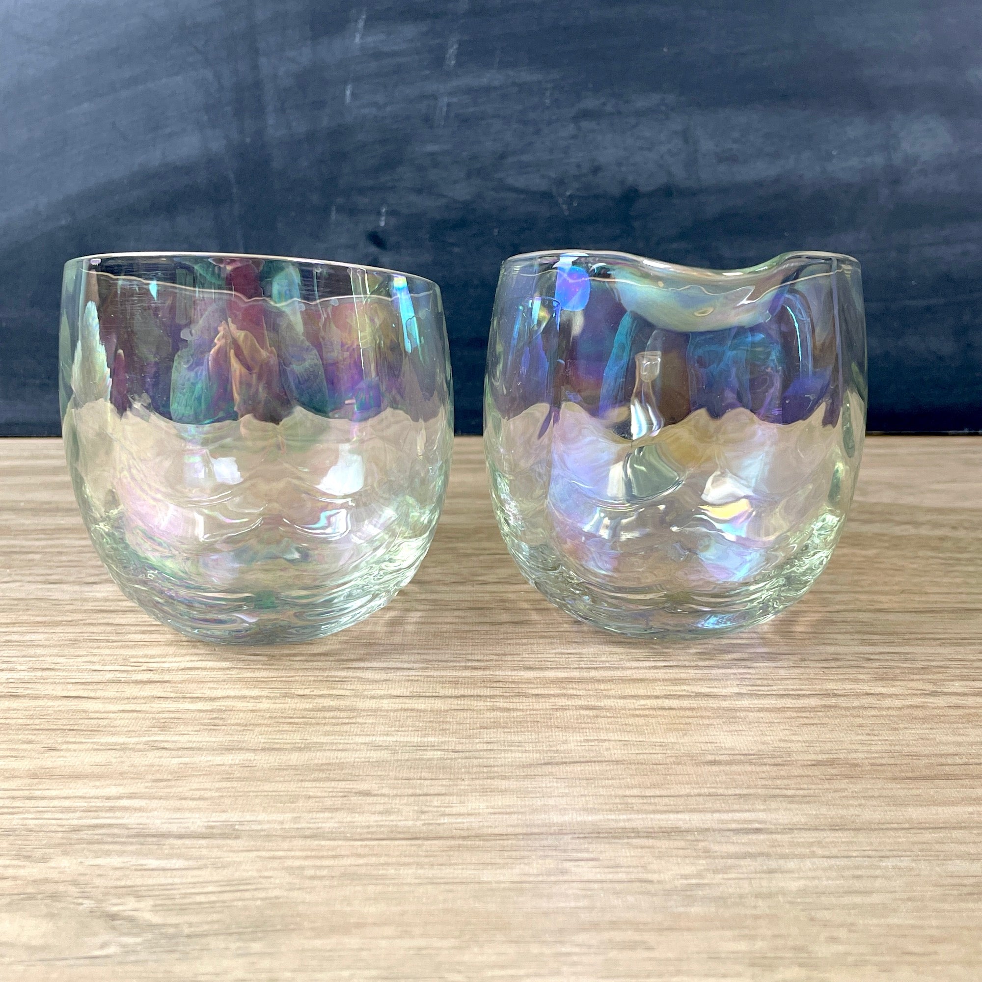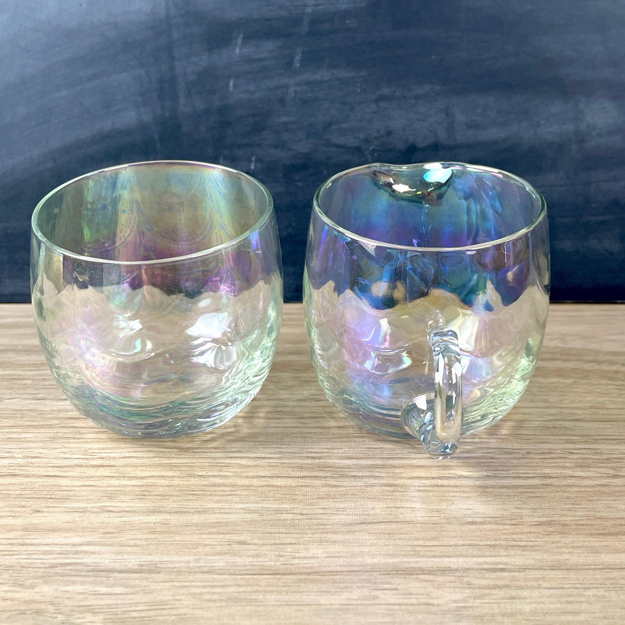 Vintage 1960s or earlier cream and sugar set of opalescent drapery glass. Angled tops. No maker's marks.